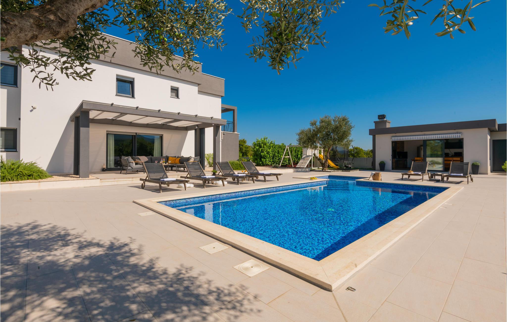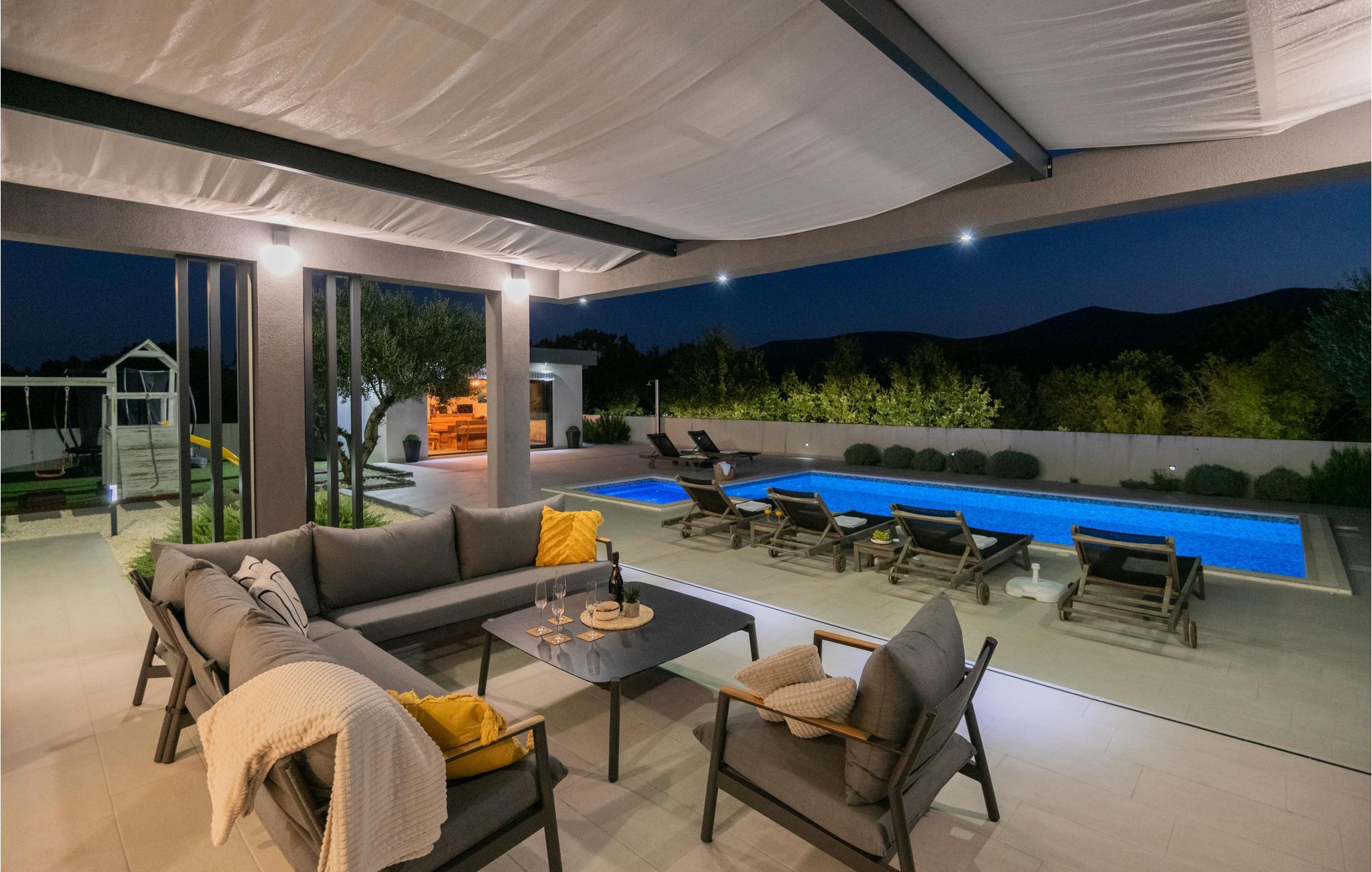 Dette moderne og fremragende udstyrede feriehus med opvarmet pool er beliggende i det indre Dalmatien, ikke langt fra Makarska Riviera.
