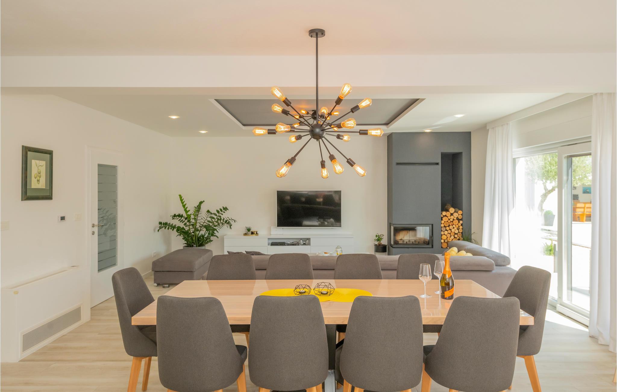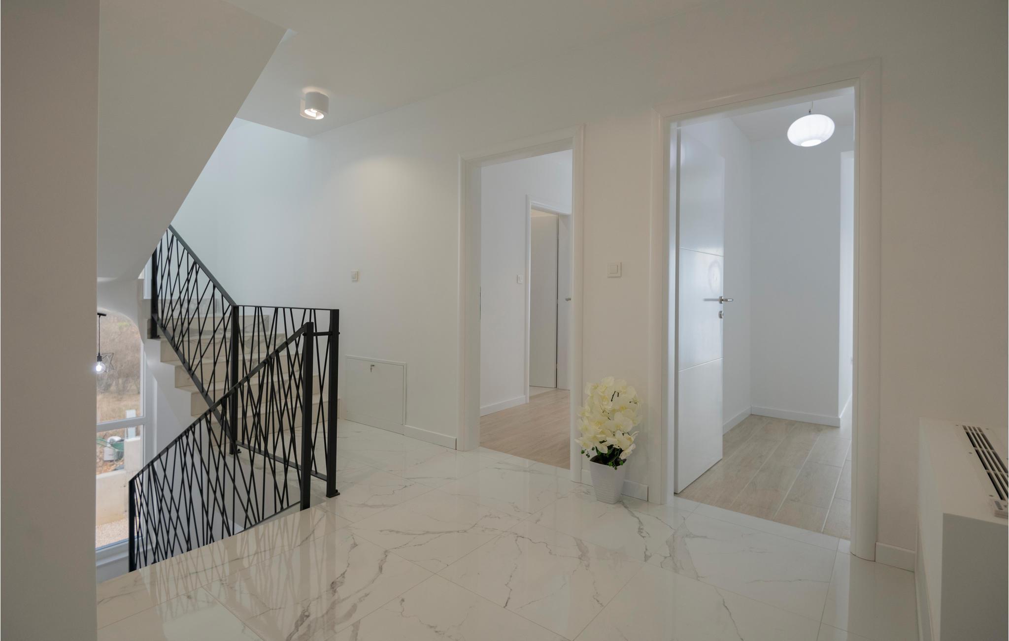 Huset har aircondition og består af en stueetage med køkken, et soveværelse, badeværelse og fritidsrum med billard, bordfodbold, bordtennis, dart, Playstation og en sauna ved siden af. En intern trappe fører til 1. sal med yderligere fire soveværelser og tre badeværelser. På 2. sal er der en rummelig terrasse med en mini-bar, et spa til afslapning og sidst men ikke mindst en uforglemmelig udsigt over byen Imotski og søerne i området.