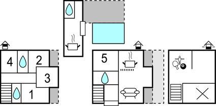 Dette veludstyrede hus byder sine gæster velkommen med stilfulde, moderne møbler og lyse værelser. På underetagen finder I billard, bordfodbold og bordtennis, mens stuen og soveværelset er i stueetagen og første sal. Etagerne er forbundet med en intern trappe.