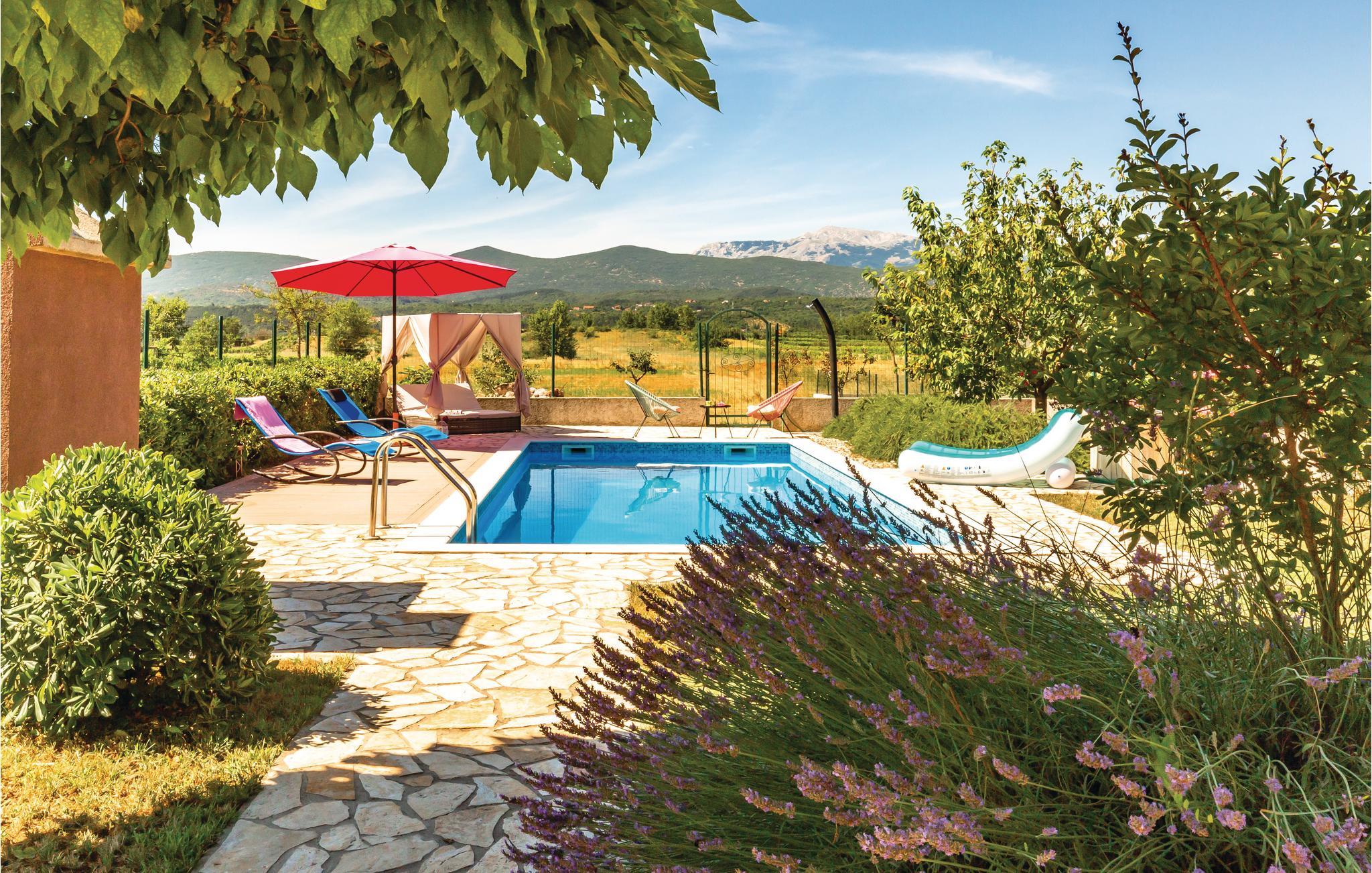 Dette smagfuldt indrettede feriehus i Prolozac Donji ligger i nærheden af Imotski, der også er kendt på grund af naturperlerne Den Røde Sø og Den Blå Sø. Foran huset har I en overdækket terrasse med gril, hvor I kan lave lækre specialiteter og tilbringe hyggelige timer. På varme sommerdage kan I tage en dukkert i poolen, der ligger på den smukt anlagte grund. Nyd udsigten over de blomstrende marker og naturparken Biokovo-Bjergene. Kør til kiselstrandene i Makarska, ca. 25 km væk. I kælderen sørger både bordtennis, bordfodbold og dart for sjov og underholdning, mens der udedørs venter fodbold, badminton og basketball.