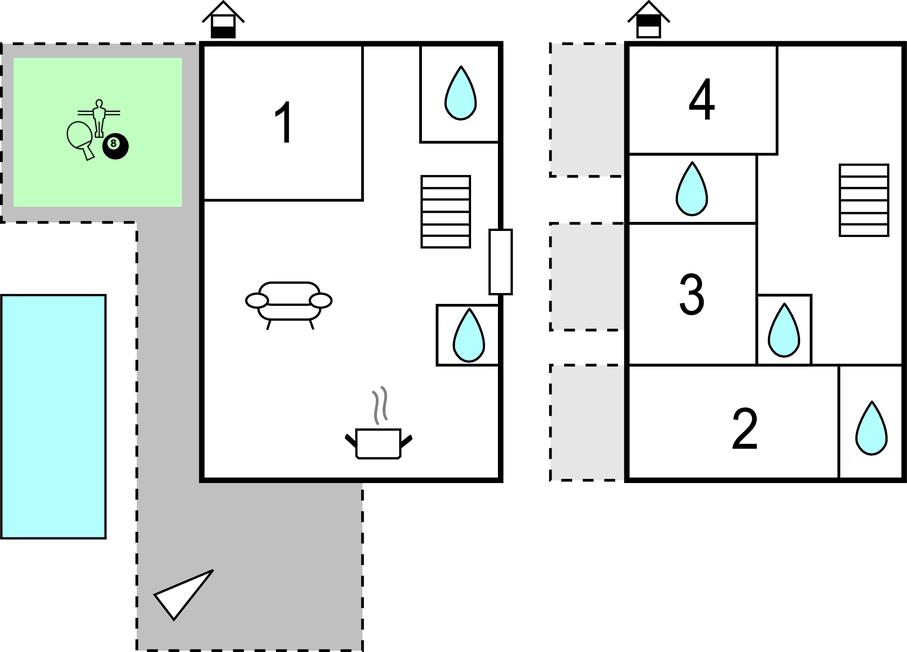 Soveværelse (nr. 2) - 1 Soveplads. (Enkeltseng(e)). 2 Sovepladser. (Dobbeltseng(e)).