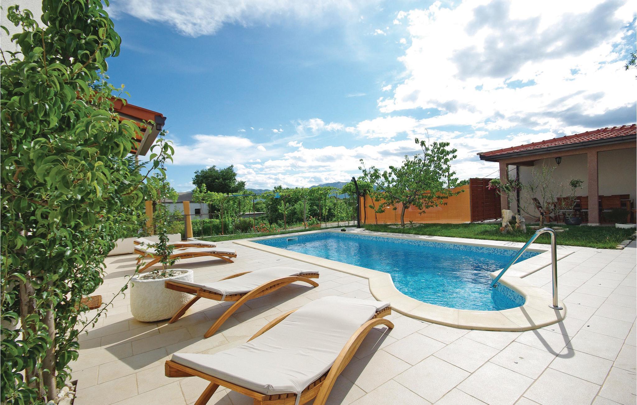 Den velholdte og pænt indrettede ferielejlighed med pool ligger i den lille by Sestanovac. Foran huset finder I den forfriskende pool til varme sommerdage og den overdækkede terrasse med grill til hyggelige grillaftener. Floden Cetinas kløft er 3 km væk, den er et af de smukkeste steder i Kroatien til aktive feriegæster og til rafting-eventyr. Kun 10 minutter skiller jer fra de skønne kiselstrande i Brela. Den lille by Sestanovac er et fremragende udgangspunkt for ture til Makarska og Omis, der er der mange seværdigheder og interessante arrangementer.