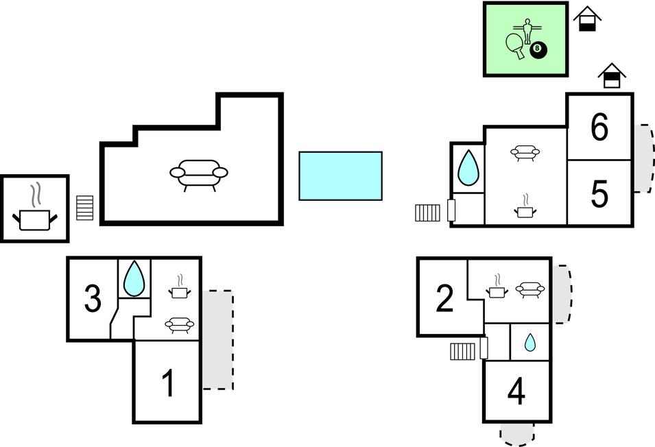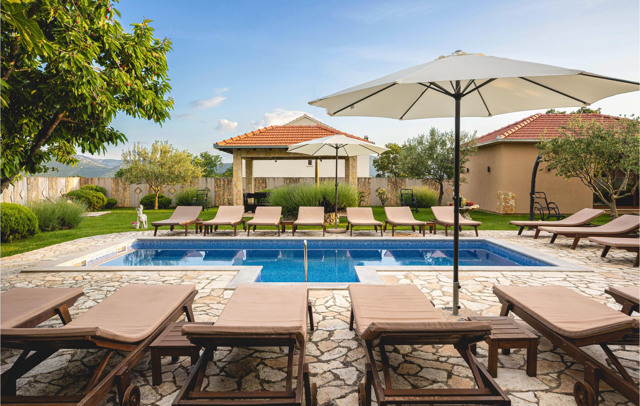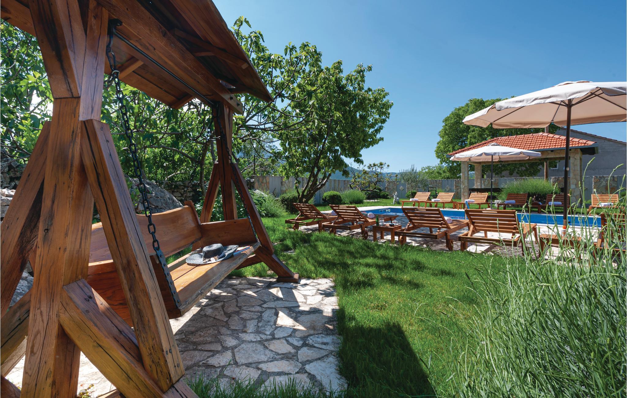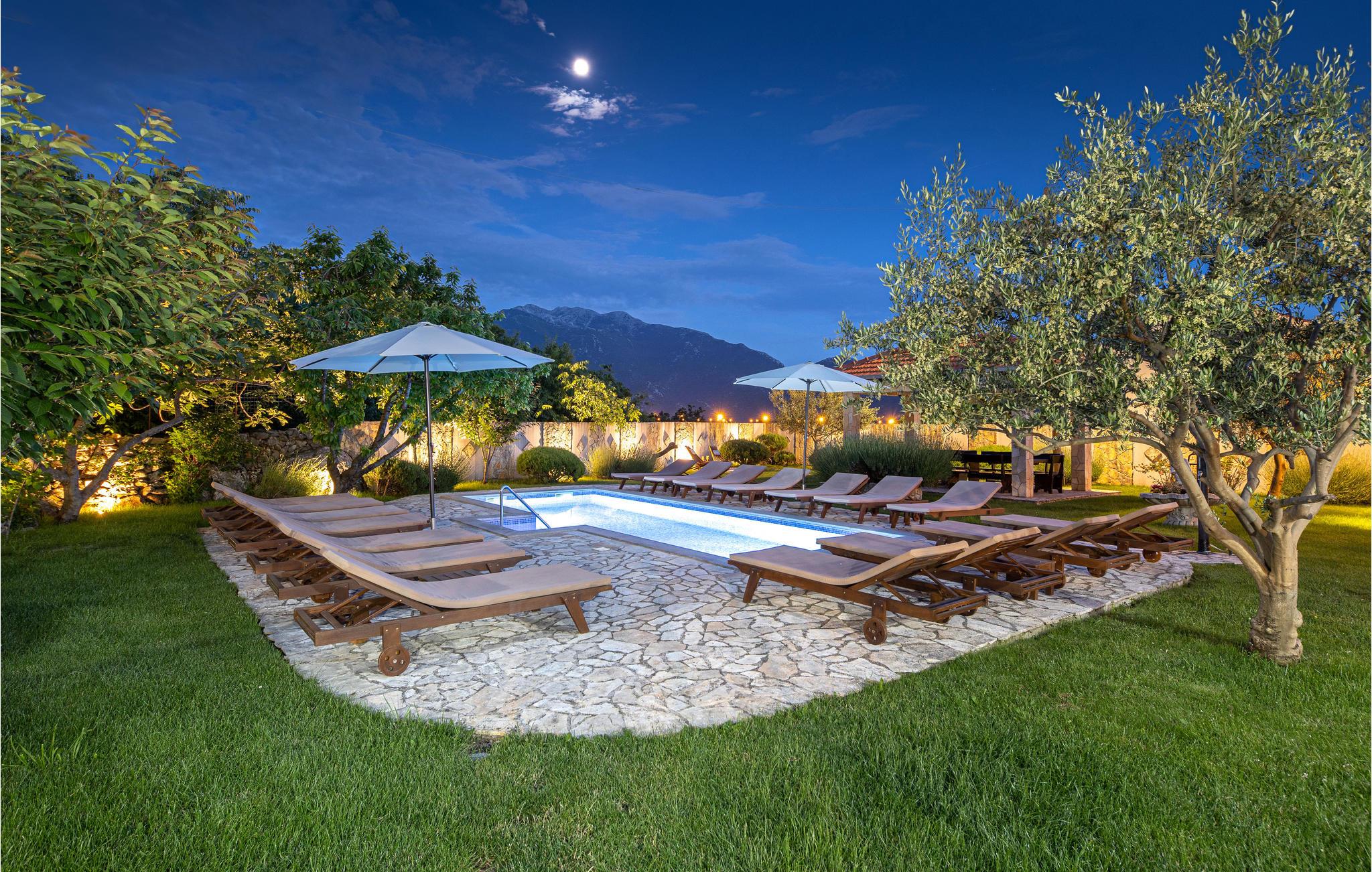 Dette indbydende feriehus ligger på ejers grund, i den lille by Sestanovac ved Markarskas riviera. Her er i alt tre feriehuse. I et hus er der to boligenheder der er forbundet med en udendørs trappe. Det andet hus har et rum til underholdning, mens der er en to værelses lejlighed på første sal. Til det tredje hus hører et sommerkøkken med en indendørs grill. Samtlige er indrettet med god smag, her er masser af plads, samt seks soveværelser, 3 badeværelser, køkken og opholdsstue, her finder I de perfekte rammer til en helt specielt vellykket ferie. Her kan I for afvekslingens skyld spille bordtennis, dart, billard, playstation 2, køre på motionscykel, til børnene er der legeplads med gynge, rutsjebane, vippe og sandkasser. Foran det andet hus ligger poolen, hvor I kan tilbringe dejlige timer i vandet på varme sommerdage. Her kan I også slappe af i de komfortable havemøbler og friske sommerkuløren op. Jeres ejer bor i et separat hus, så her er al den privatsfære I kan ønske jer. Nærmeste kiesstrande: 15 km.