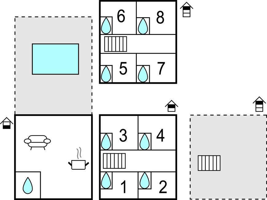 Badeværelse 8m2 (nr. 8) - WC. Varmt og koldt vand. Bruser
