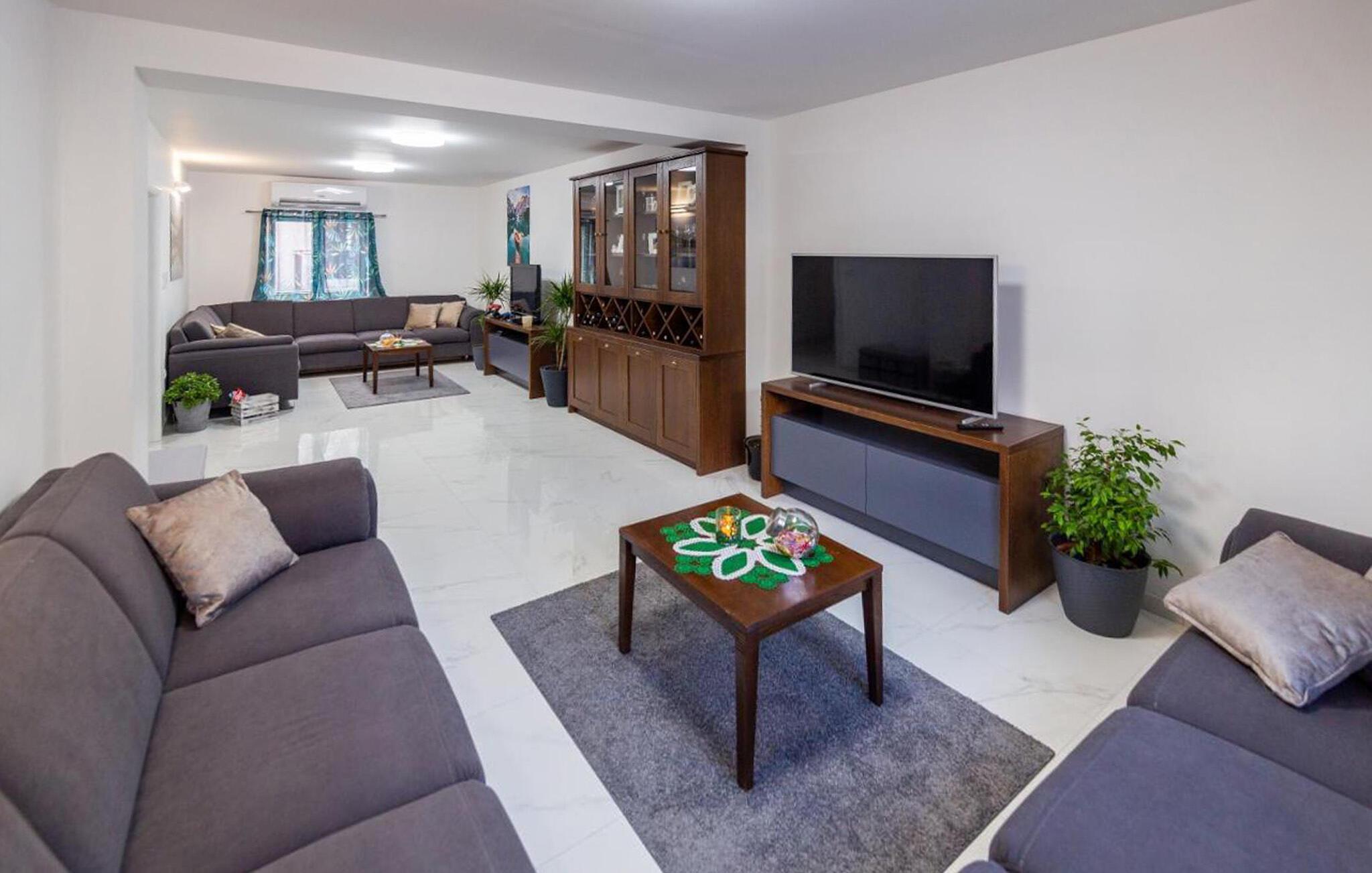 Dette rummelige feriehus er som skabt til en komfortabel ferie med venner eller den store familie. Glæd jer til hyggelige madlavningsaftener i det fuldt udstyrede køkken og fælles måltider ved det lange spisebord. I den lyse stue venter en stor sofa, hvor I kan nyde afslappende filmaftener sammen.