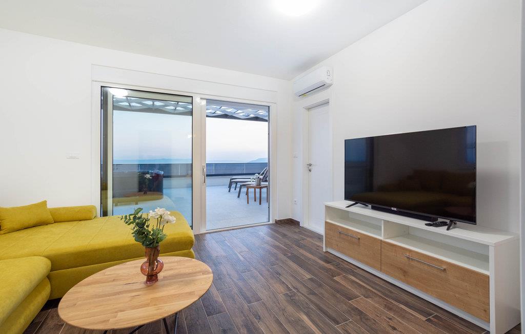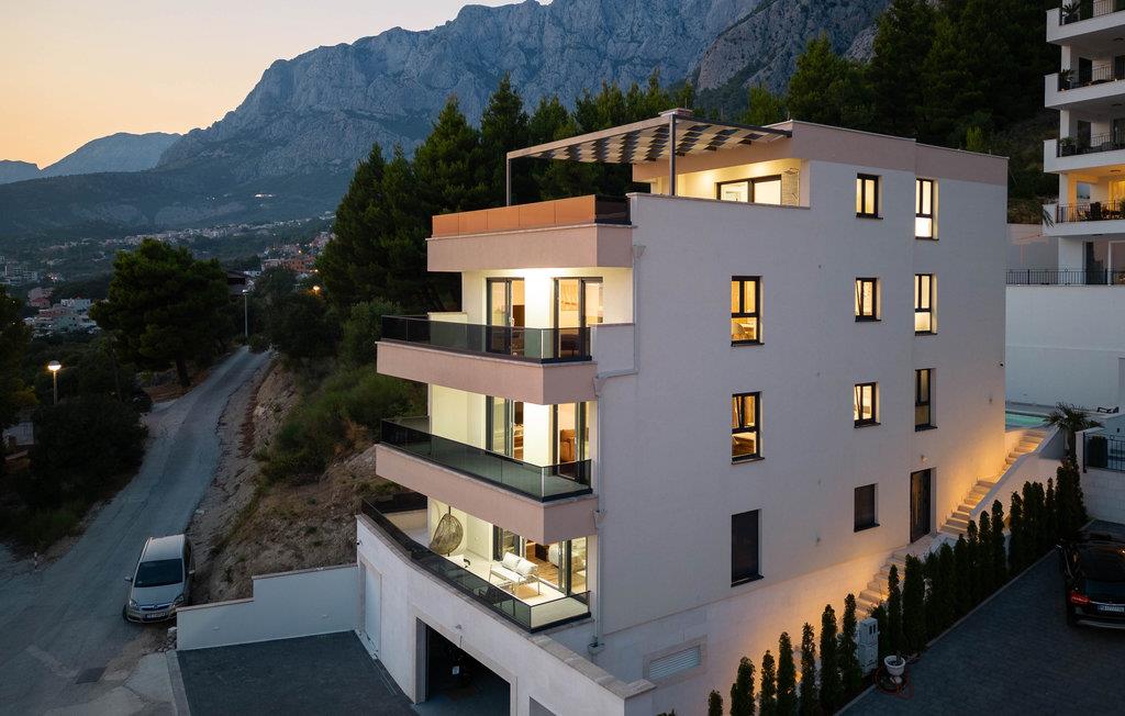 Planlægger I en ferie med familien? Så har I fundet jeres drømmebolig her. Denne stilfulde lejlighed i et moderne hus troner over centrum af Makarska. I kan næsten se det som jeres private hotel. Antallet af soveværelser, badeværelser og toiletter sørger for afslapning og privatliv. Den smarte indretning emmer af hygge, og den smagfuldt indrettede stue giver jer også mulighed for at lave noget i huset sammen med familien. Faciliteterne i huset fuldendes af et fitnessrum og et fritidsrum.