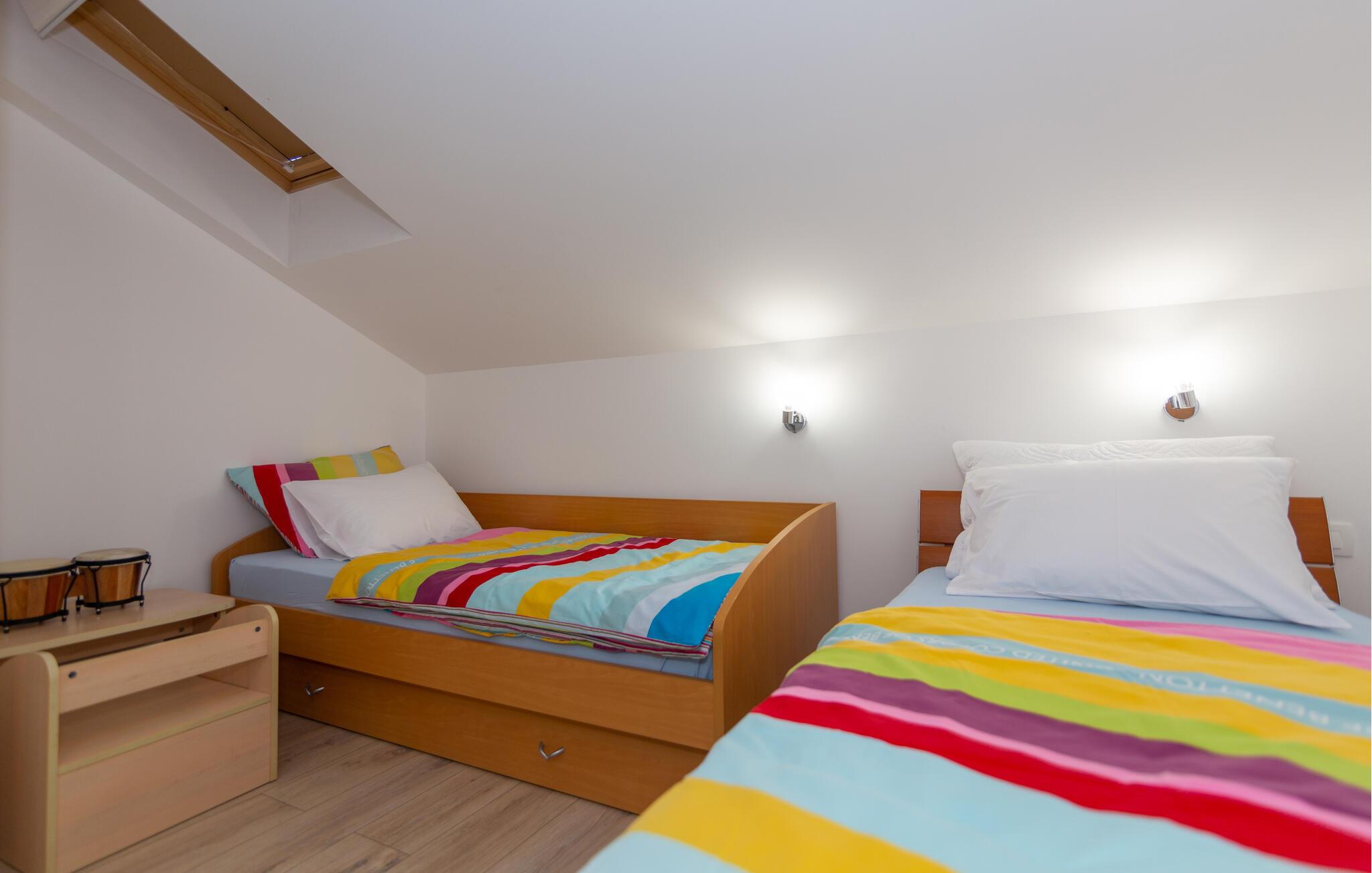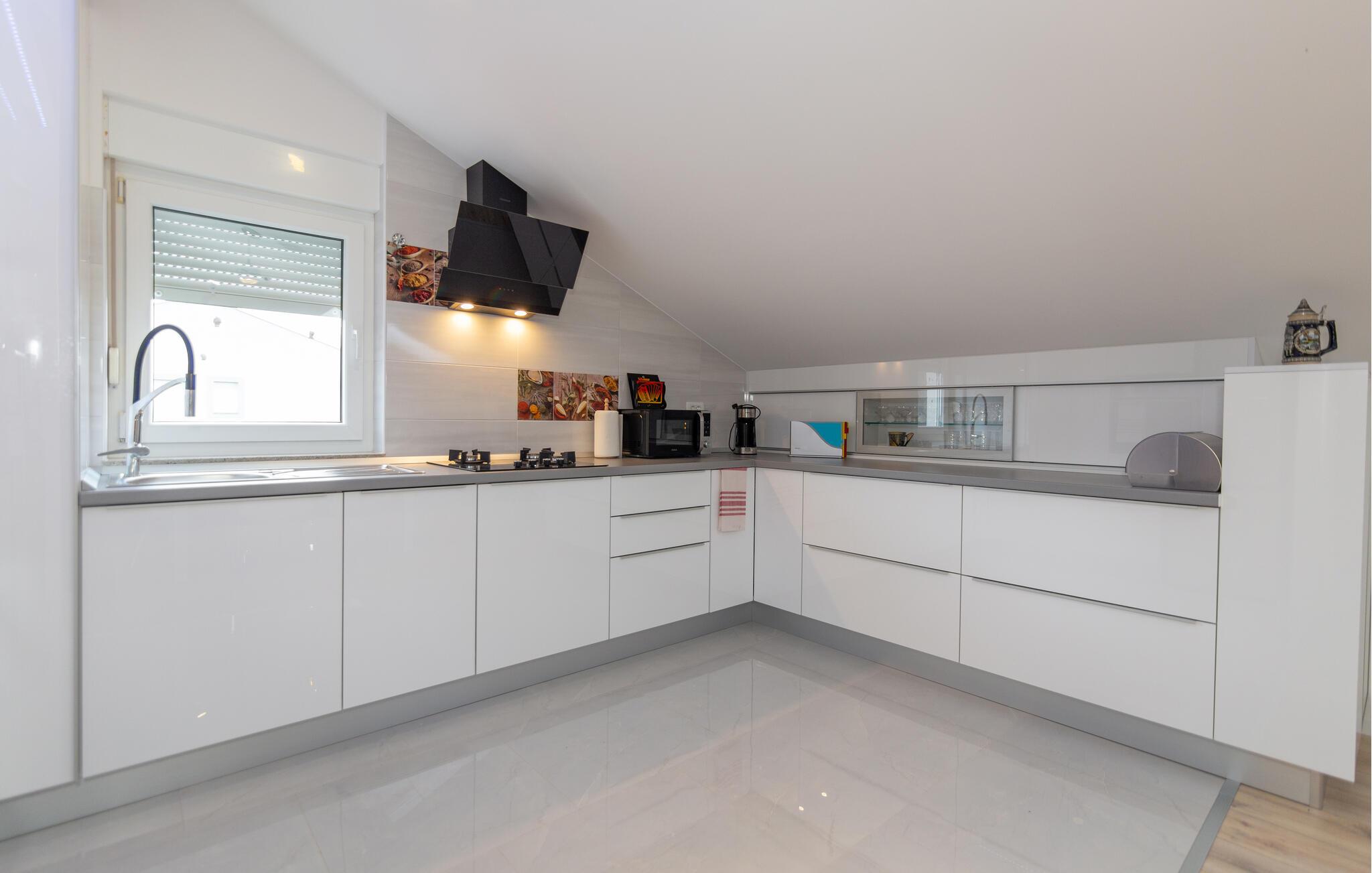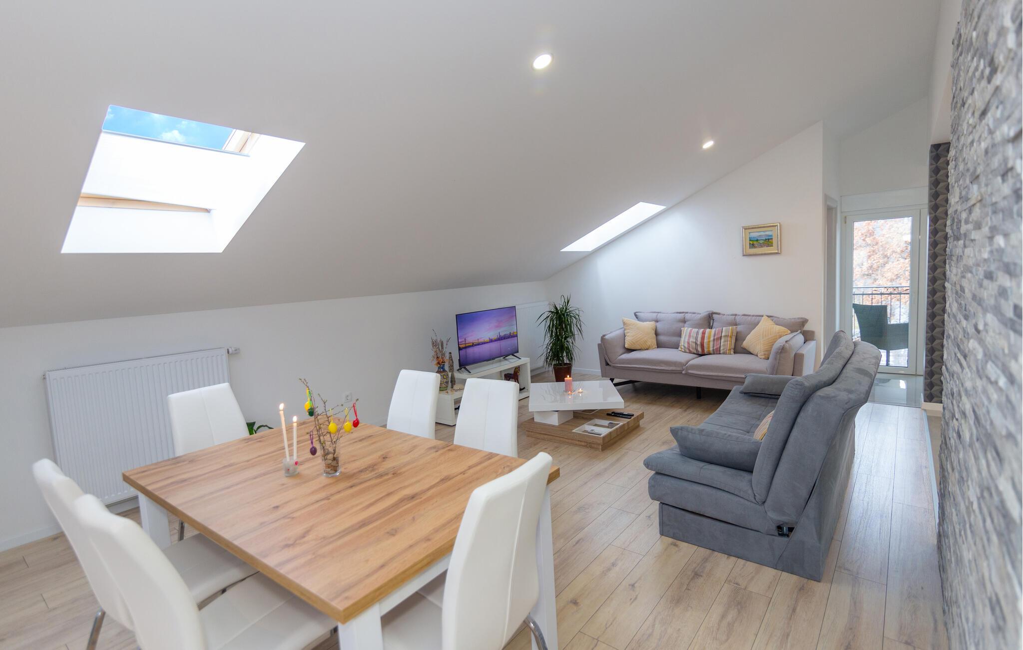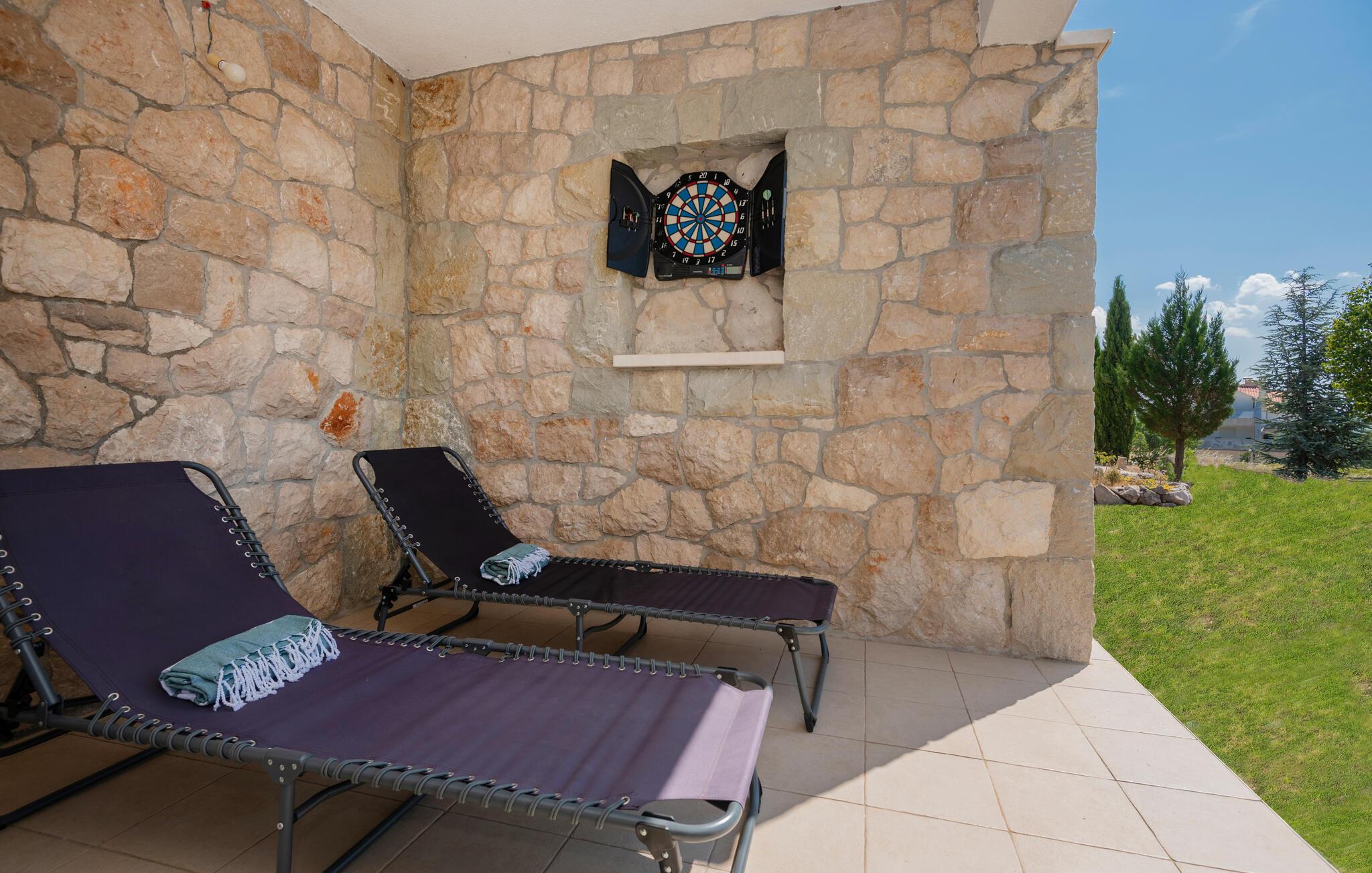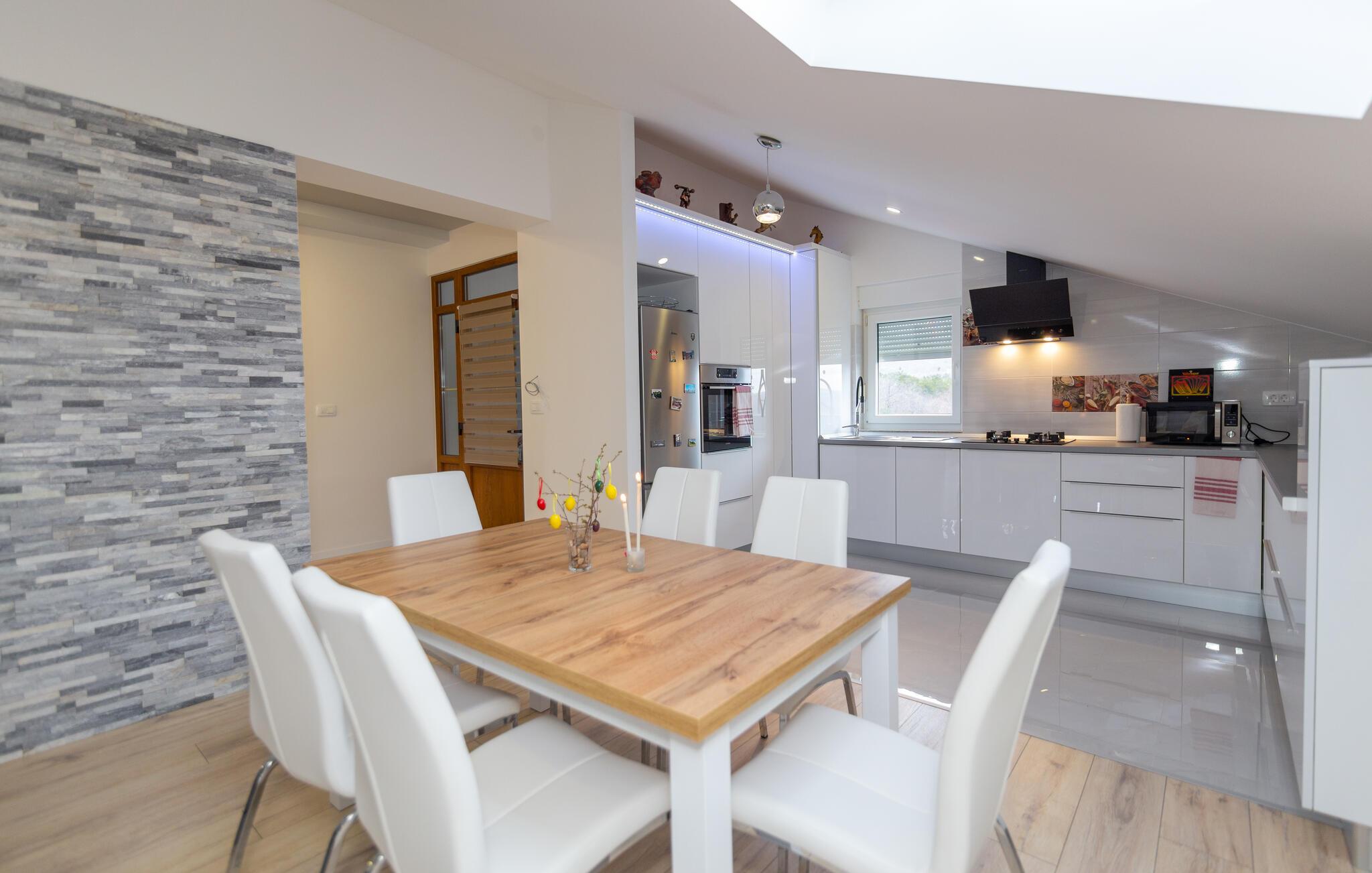 Lad turen gå til det centrale Dalmatien med familien og glæd jer til en herlig base i dette indbydende hus. Her får I den perfekte base, hvis I ønsker en ferie med masser af socialt samvær uden at give køb på privatlivets fred. De to fuldt udstyrede etager er forbundet via en trappe og sikrer god komfort til hele flokken. Indretningen fremtræder lyst, luftigt og lækkert og skaber en atmosfære, som gør det muligt for jer at komme helt ned i tempo. Afhængigt af årstiden kan I fyre op i brændeovnen eller finde jer godt til rette i solen på husets terrasser og altaner.