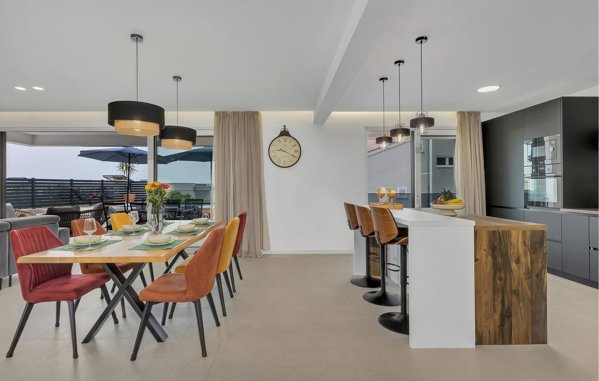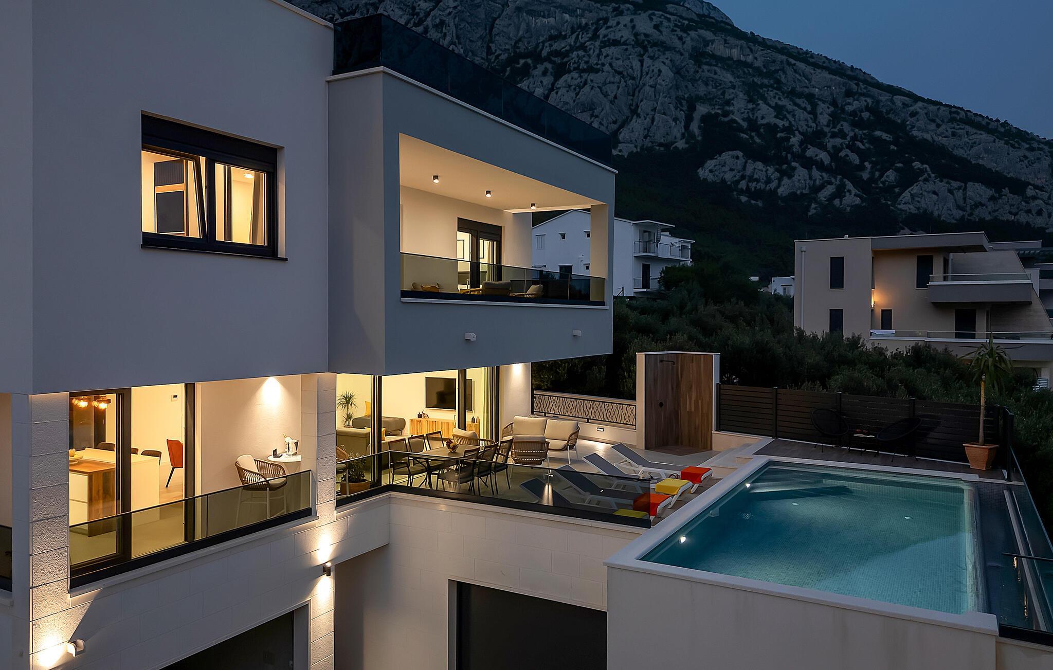 Dette rummelige og moderne feriehus byder velkommen i fantastiske omgivelser med havudsigt og bjergpanorama. Hvad kunne være dejligere end at tilbringe afslappende dage ved havet med dine kære. Dette store hus tilbyder dig de perfekte rammer for dette. På tre etager kan I slappe af, lave mad sammen og udforske de store rum. De smagfulde værelser i stueetagen tilbyder dig masser af plads til socialt samvær og privatliv i soveværelserne. Du kan også glæde dig til den store tagterrasse, hvor du kan solbade og nyde den fantastiske udsigt hele vejen rundt. Men du kan også træde ud på terrassen fra stuen og svømme i den private pool og nyde omgivelserne. Veliko Brdo er ikke langt væk fra Makarska. I den populære badeby Makarska vil du finde masser af variation, hvad enten det er på de smukke stenstrande eller gåture langs promenaden, hvor der er mange barer og fremragende restauranter. Du kan også nyde byens talrige sommerarrangementer og købe en souvenir i en af de talrige souvenirbutikker. Tag på badeture og udforsk de omkringliggende øer og smukke bugter på en sejltur. Saml store indtryk og oplevelser i Dalmatien!