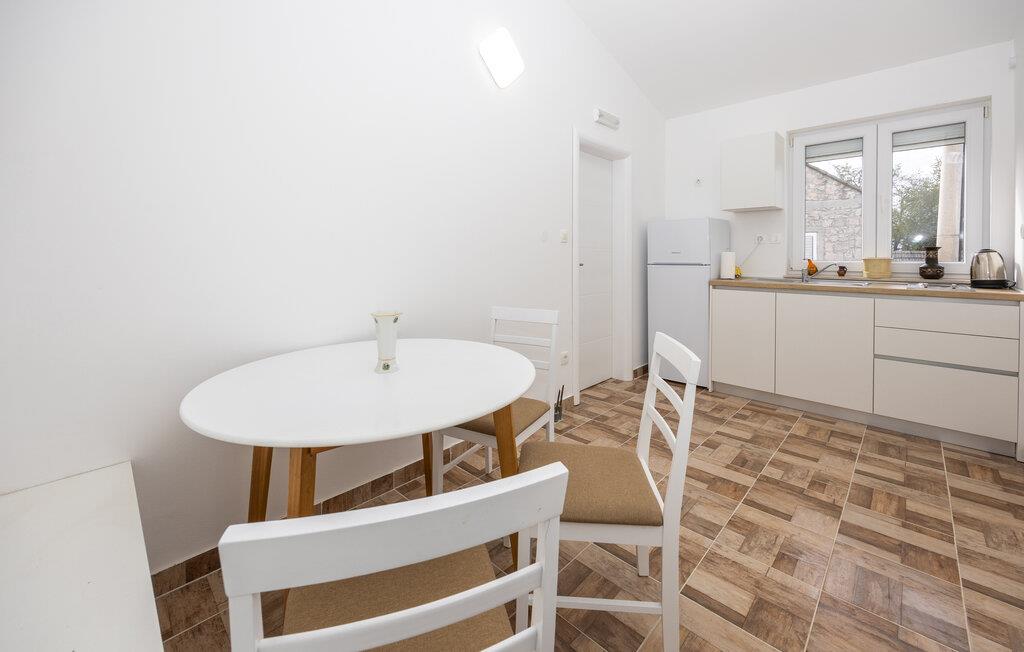 Denne ferielejlighed tilbyder jer en særlig pause på en idyllisk grund omgivet af smuk natur. Den lyse og praktiske indretning samt det lysfyldte miljø skaber et behageligt fristed, hvor I kan nyde roen og slappe helt af. Balkonen med indgangsområde inviterer til afslappende stunder med et glas vin – prøv de lækre vine og lokale produkter direkte fra Rebic-vingården og oplev regionens autentiske charme.
