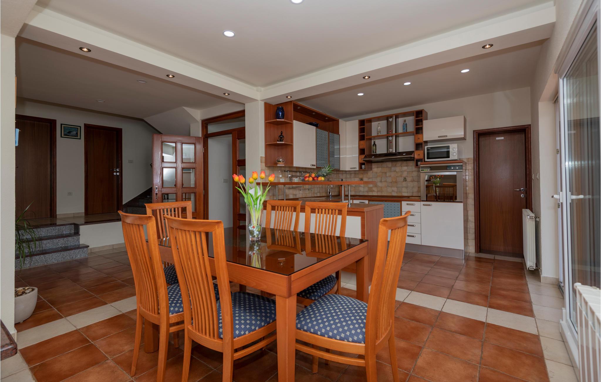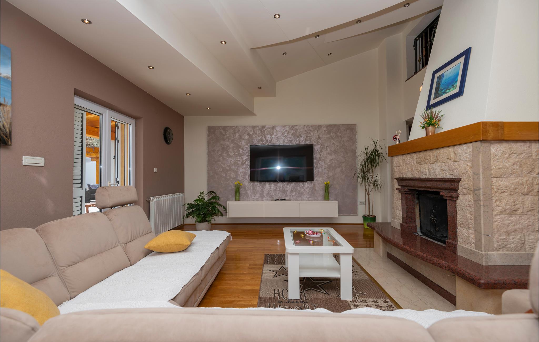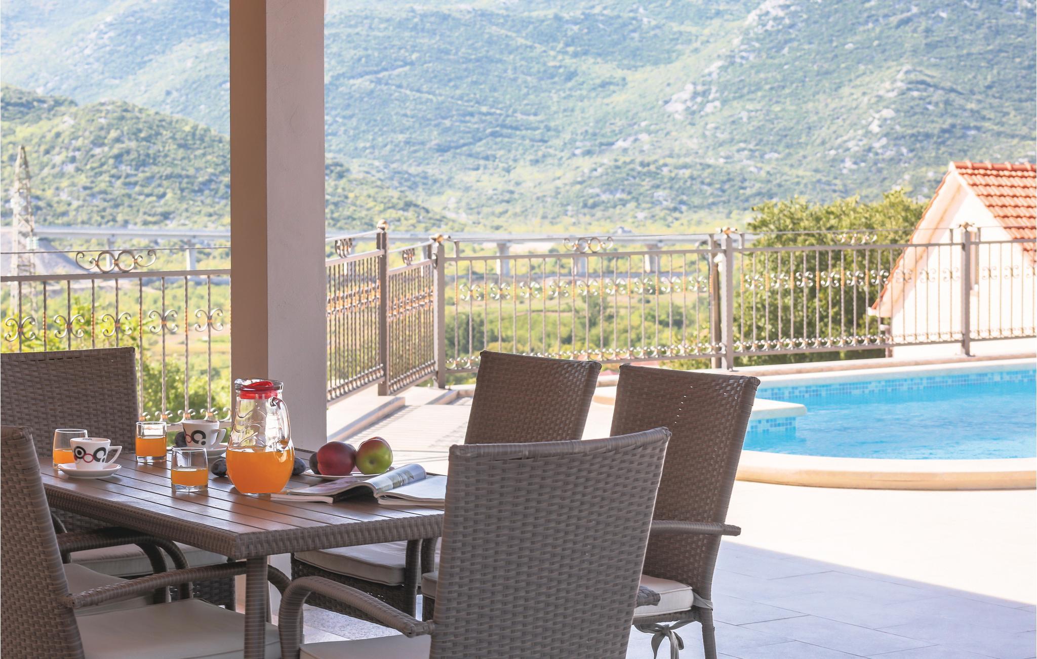 Dette skønne feriehus ligger i det dalmatiske bagland, i nærheden af byen Vrgorac. Huset er fint udstyret til en afslappet ferie. Det strækker sig over tre etager og er forbundet med indre trapper. I stueplan er der et fritidsrum. På første sal er der soveværelse og et køkken der er i praktisk åben forbindelse med stuen, mens resten af soveværelserne ligger på anden sal. På den store indhegnede grund er der en pool, som indbyder til vandsjov og motion. Ved siden af poolen står det udendørs køkken. De lange markerede vandrestier er dejlige at opleve landskabet fra. Besøg den hyggelig lille by Vrgorac og slap af på de pragtfulde kiesstrande ved Makarskas riviera.