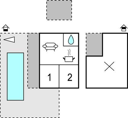 Opholdsstue/køkken 44m2 - 1 Soveplads. (Sofa, madras eller lignende).