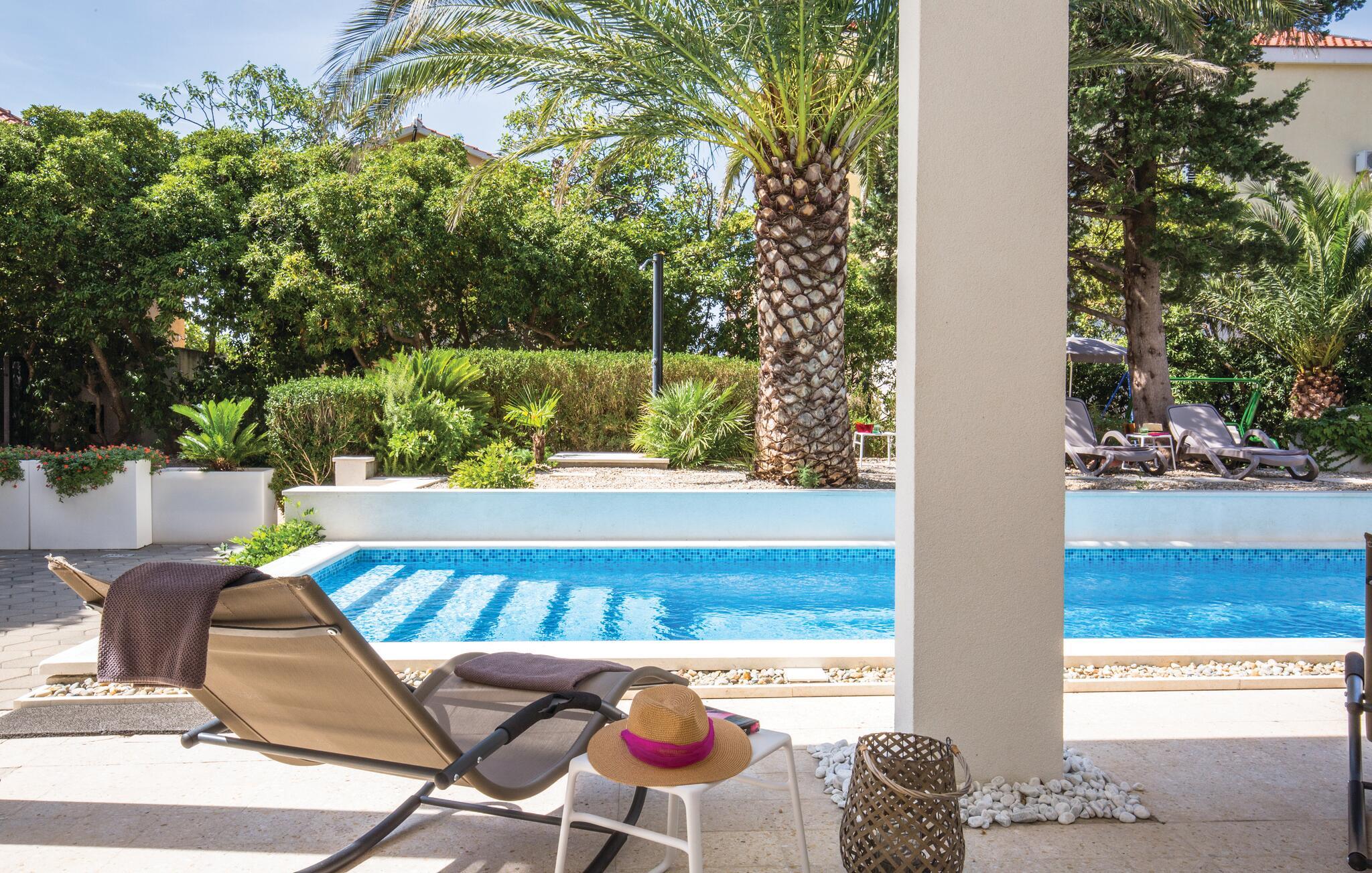 Disse komfortable lejligheder ligger i centrum af det populære turiststed Makarska. I den indhegnede gårdsplads byder den fælles opvarmede udendørs swimmingpool på en forfriskende dukkert i de grønne, frodige omgivelser. Den rummelige ferielejlighed CDE530 er komfortabelt indrettet, og ligger på første sal. CDC221 er en mindre ferielejlighed beliggende i stueetagen. CDE722 ligger på anden sal. En grill og en legeplads står til fælles rådighed for lejlighederne. Centrum ligger ca. 200 m væk, og stranden kan nås på få minutter til fods.