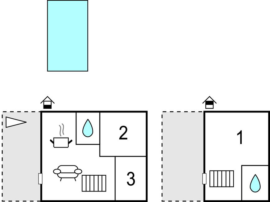 Badeværelse 3m2 (nr. 2) - WC. Varmt og koldt vand. Bruser