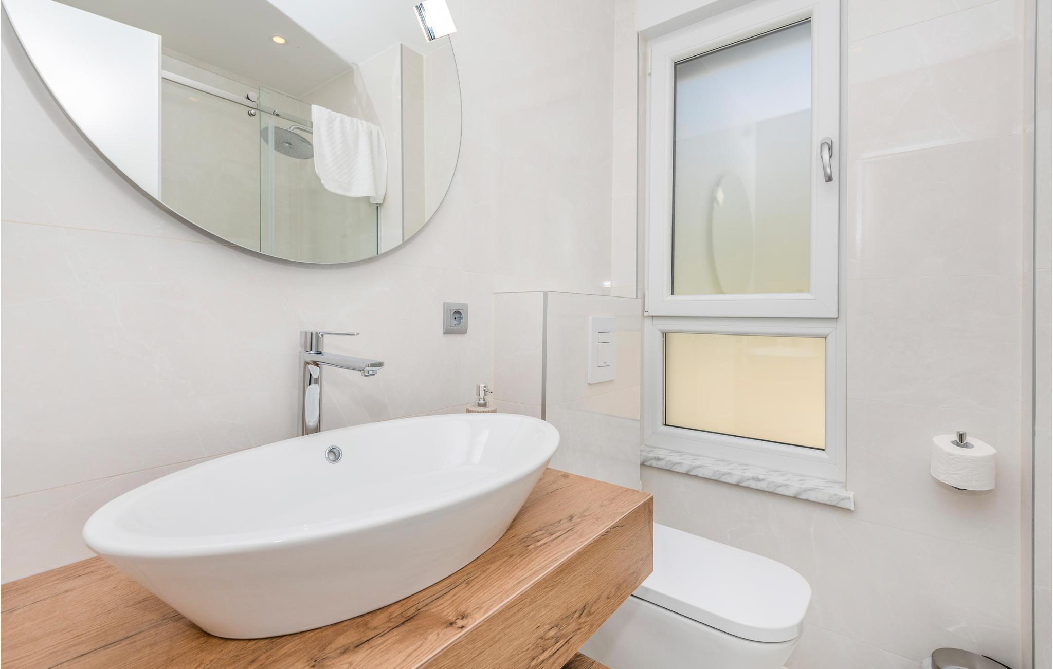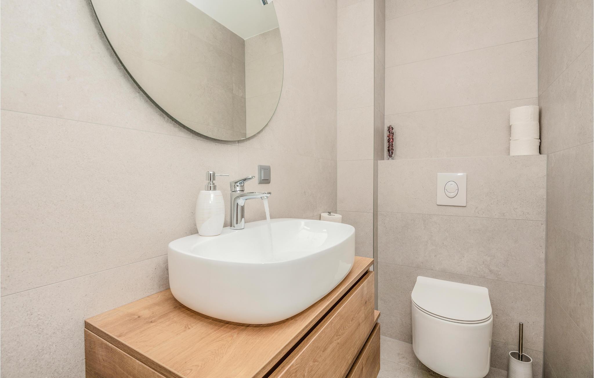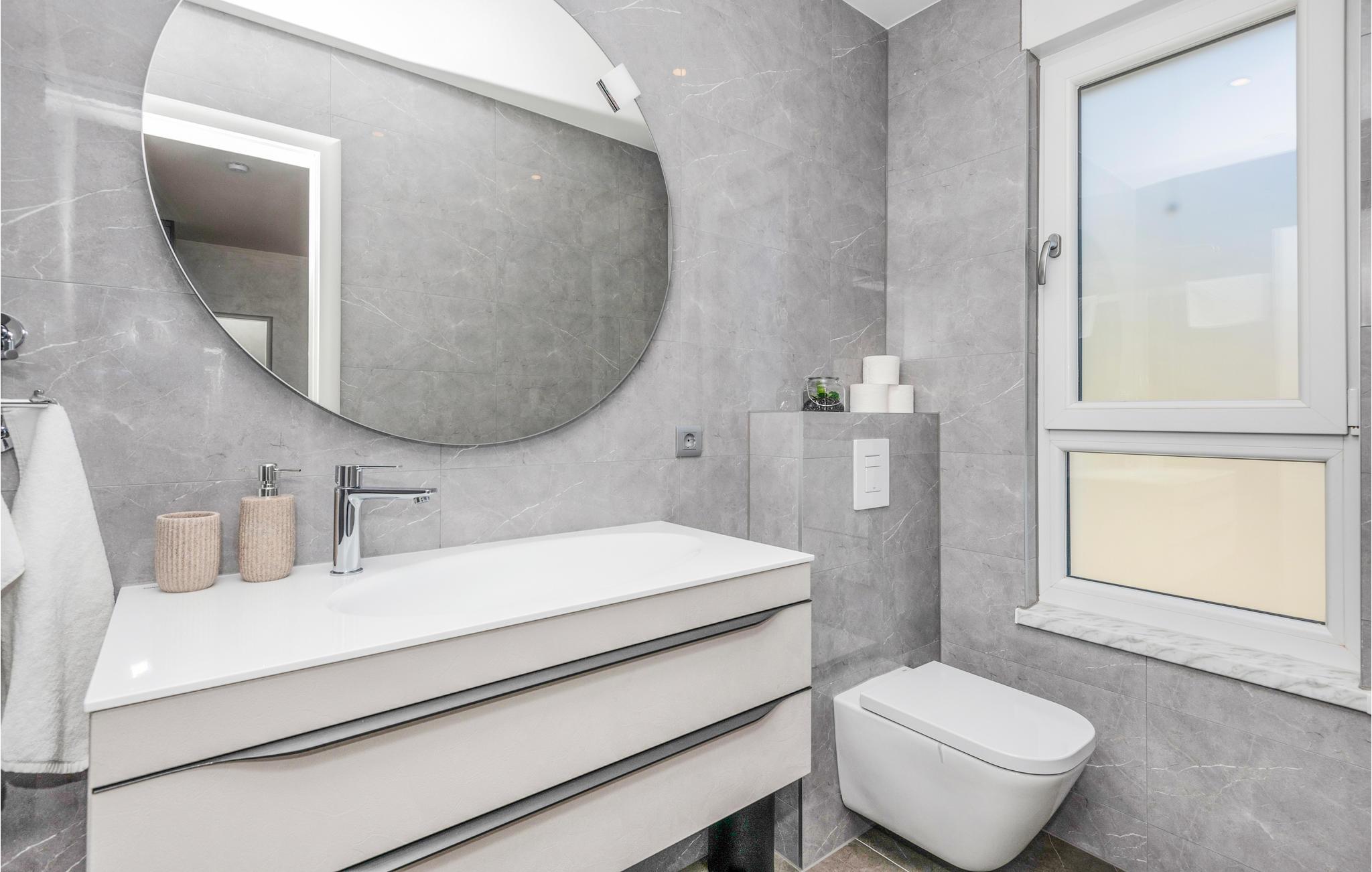 Dette dejlige og veludstyrede feriehus med pool blev bygget i 2021 og ligger i Makarska. Huset har aircondition og er i tre etager. I stueetagen er der fitnesscenter og underholdningsrum med billard, bordfodbold og dart. På 1. sal er der stue, køkken og spisestue. På anden sal er der 3 soveværelser med badeværelser. Alle etager er forbundne med trappe.