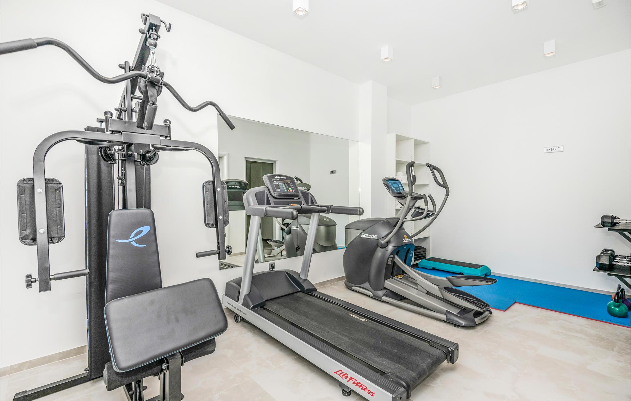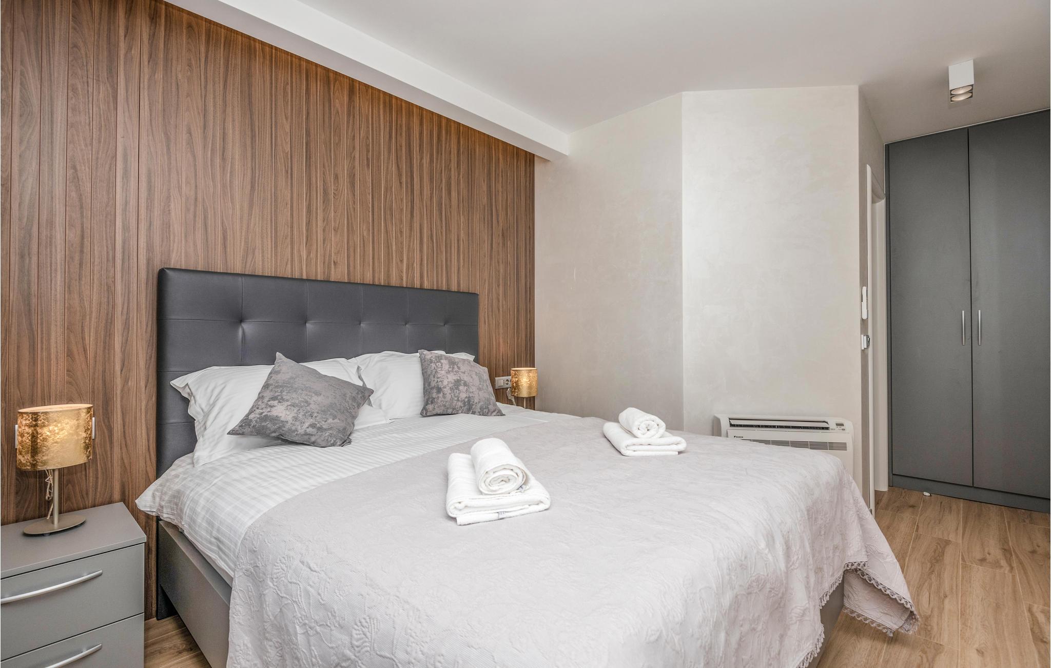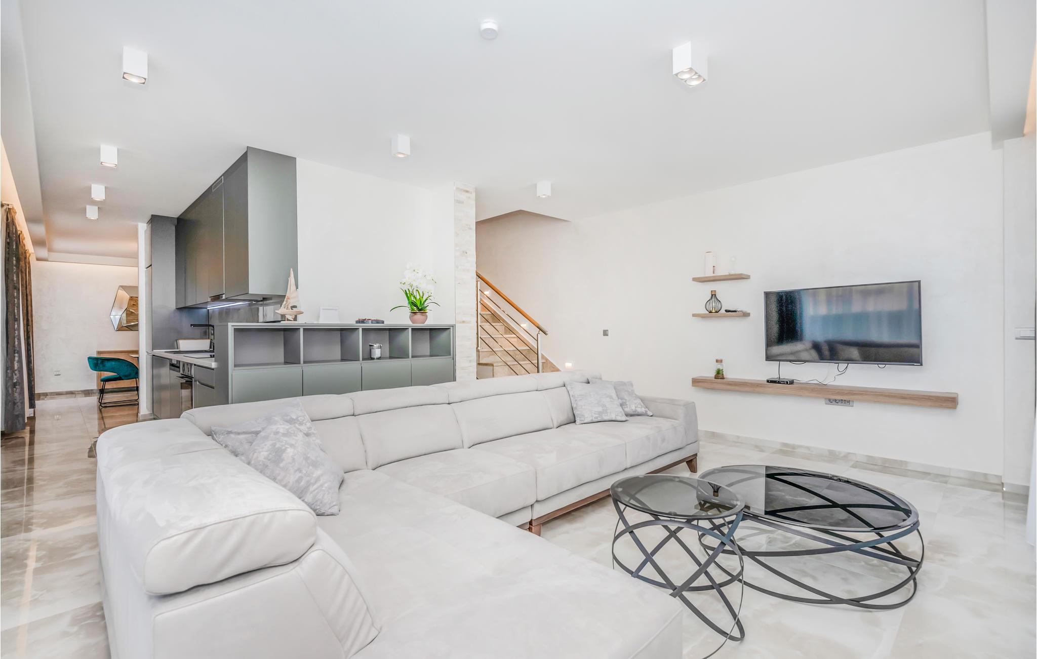 Dette dejlige og veludstyrede feriehus med pool blev bygget i 2021 og ligger i Makarska. Huset har aircondition og er i tre etager. I stueetagen er der fitnesscenter og underholdningsrum med billard, bordfodbold og dart. På 1. sal er der stue, køkken og spisestue. På anden sal er der 3 soveværelser med badeværelser. Alle etager er forbundne med trappe.