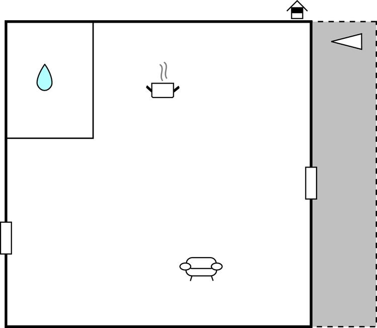 Opholdsstue/køkken 25m2 - 2 Sovepladser. (Sofa, madras eller lignende).