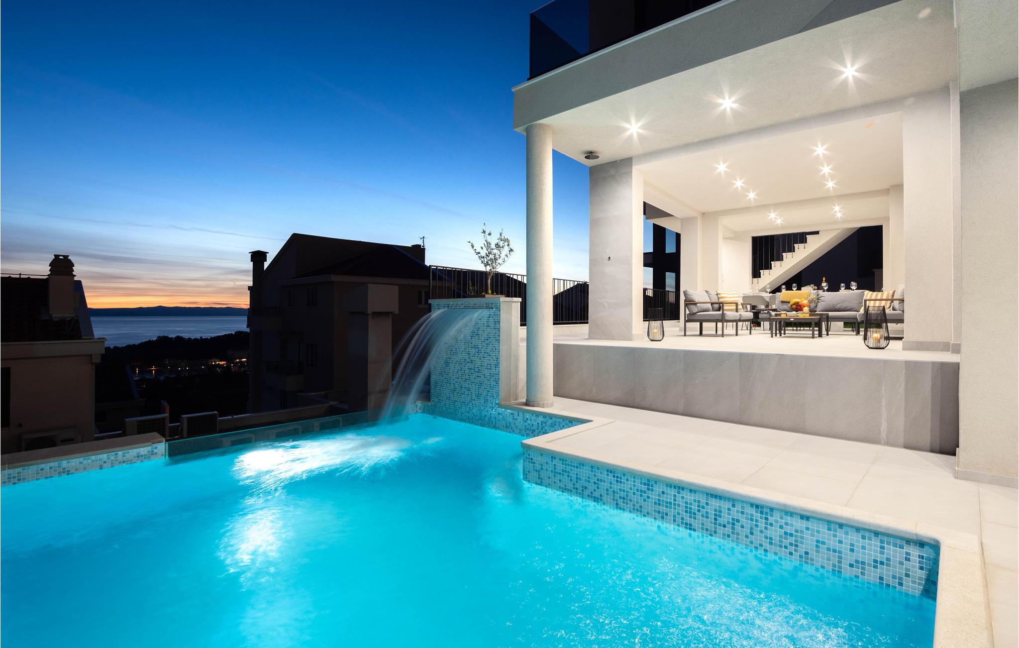 Topmoderne villa i Makarska med pool, spa og panoramaudsigt.