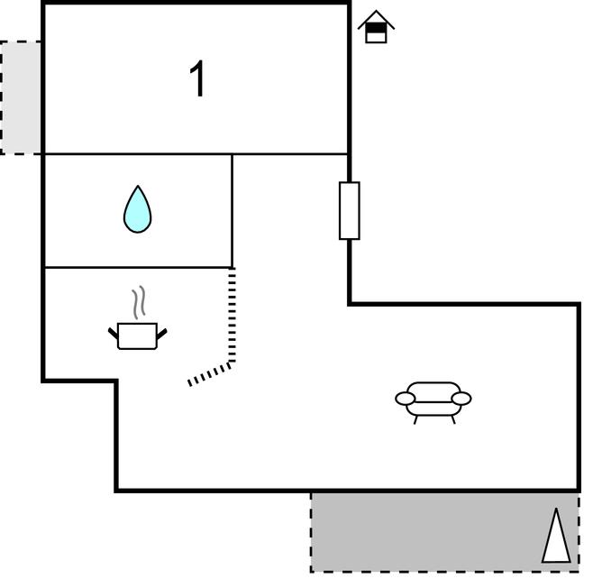 Opholdsstue/køkken - 2 Sovepladser. (Sofa, madras eller lignende).
