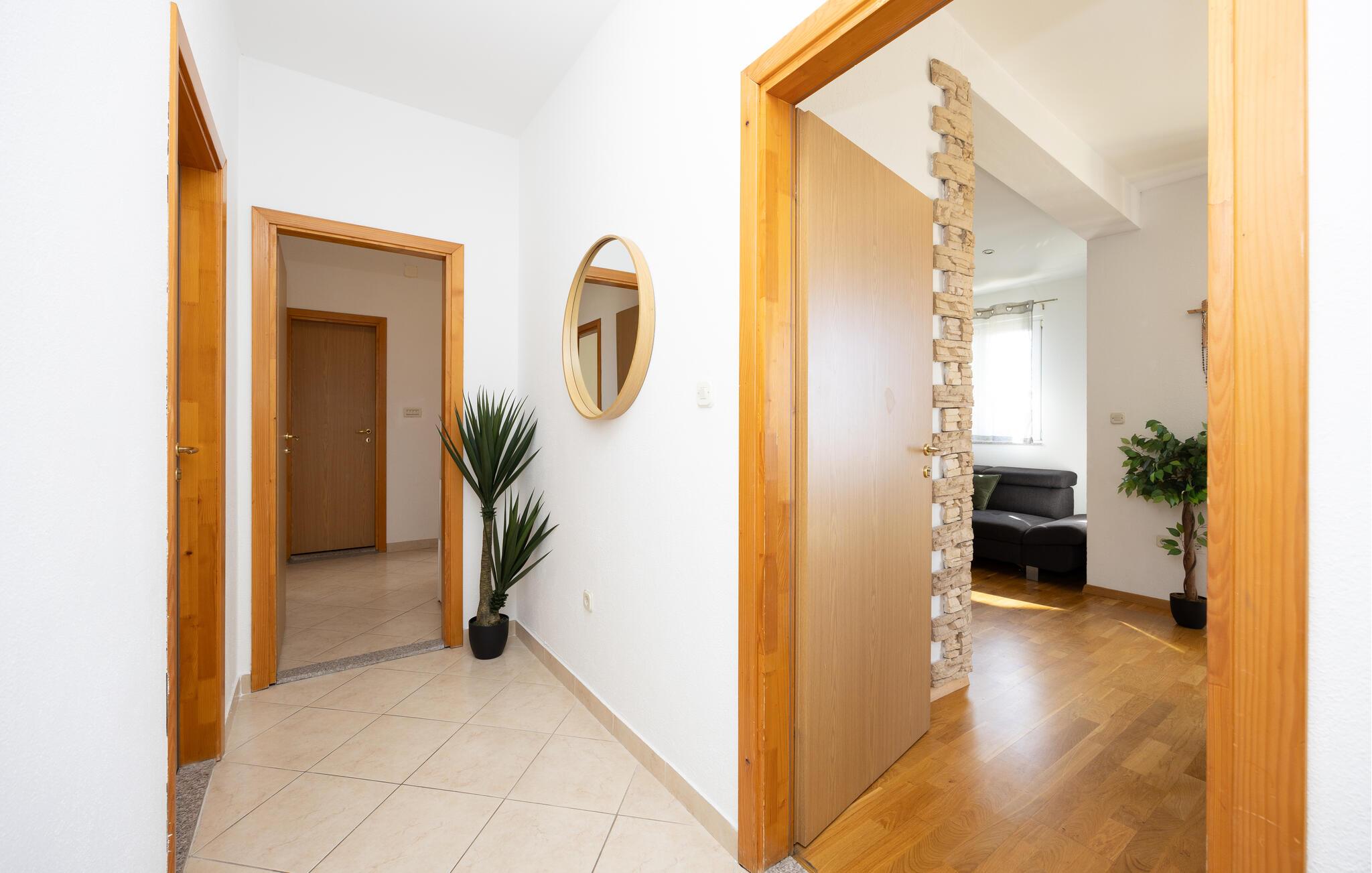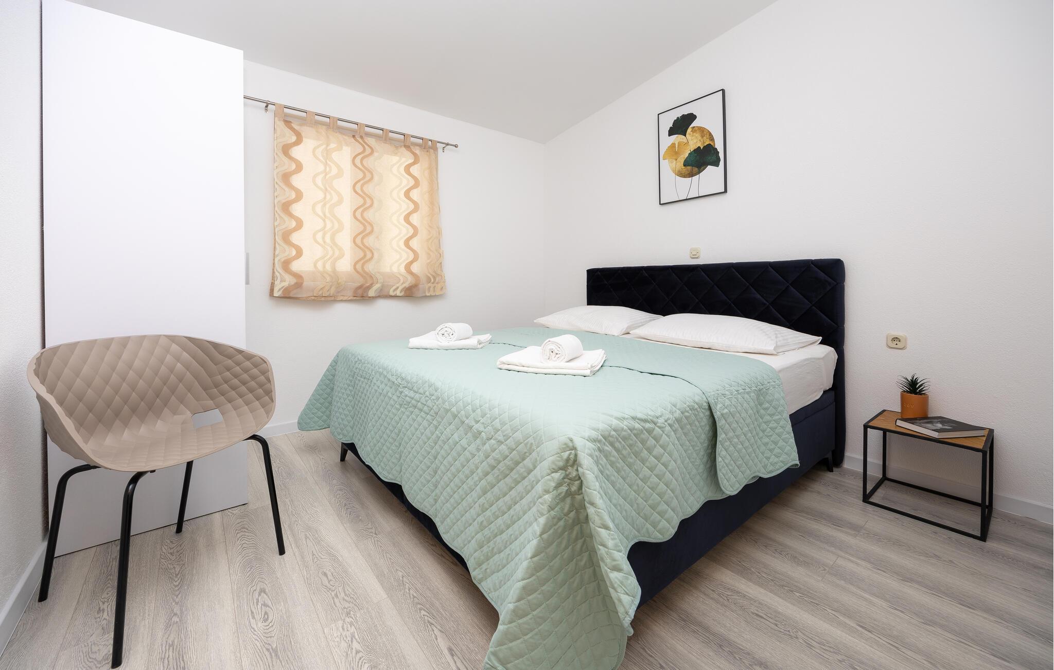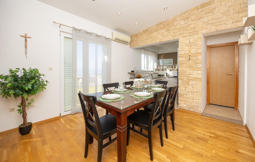 Velkommen til jeres stilfulde ferielejlighed i maleriske Makarska. Denne rummelige lejlighed på anden sal er ideel til en afslappende ferie på den kroatiske kyst. Smagfuldt møbleret og udstyret med alt hvad I behøver, lejligheden tilbyder en behagelig base for jeres pause fra hverdagen. Det moderne køkken er veludstyret og lægger op til at tilberede lækre måltider, som I kan nyde i den åbne stue eller på en af ??de to altaner. En fantastisk havudsigt venter jer her.