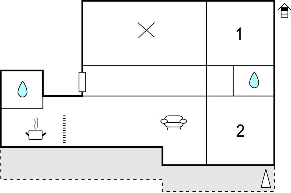 Opholdsstue/køkken - 2 Sovepladser. (Sofa, madras eller lignende).