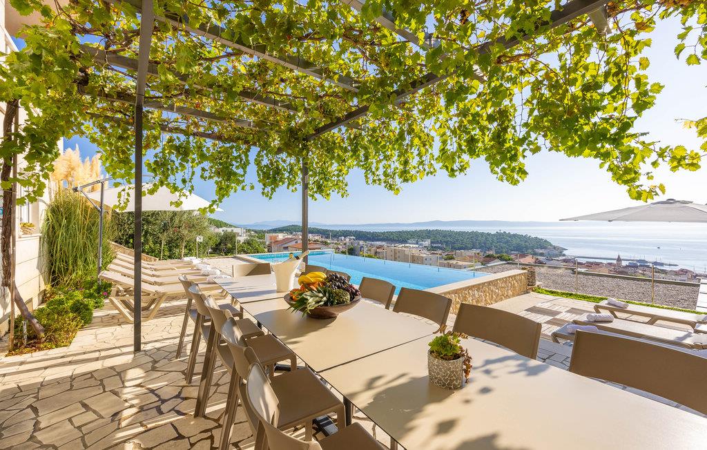 I denne fantastiske ferieby venter der jer en vidunderlig udsigt fra dette dobbelthus til Biokovo-Bjergmassivet samt over havet. Huset er så stort og rummeligt, at her sagtens er plads til to familier. Fra den store poolterrasse og swimmingpoolen, som I har helt for jer selv, kan I nemt komme til stueetagens konoba med en velassorteret vinreol. Her er der plads nok til jer alle, og her kan I lave herlige lækkerier på grillen og nyde dem, måske med et glas lokal vin til. I stueetagen findes et soveværelse. Hvis I gerne vil holde formen ved lige, mens I er på ferie, kan I benytte det skønne fitnessrum på 1. sal. De resterende soveværelser finder I ligeledes på 1. sal, som I kommer til ad en udendørs trappe. Fra terrassen har I en vidunderlig udsigt, som I med garanti vil nyde. Tagetagen er ikke tilgængelig! Feriehuset ligger i et roligt område på en bakke og byder på en vidunderlig panoramaudsigt til Makarska og havet. Besøg byens centrum, der byder på mange arrangementer og masser af underholdning for alle aldre. Gå en tur på strandpromenaden, der bugner af hyggelige caféer, restauranter og souvenierbutikker. Prøv de lokale specialiteter som grillet fisk og kød samt de skønne vine fra denne region. Det kan også anbefales at tage på en dagstur med båd til øerne Brac og Hvar, der begge har masser af kulturelle tilbud samt helt utroligt smukke strande. For aktive feriegæster er der mange muligheder - prøv kræfter med cykling, vandreture, tennis, basketball, fodbold, surfing m.m. Opdag også de små steder med skønne, lange kiselstrande - Tucepi, Brela og Baska Voda. Den venlige husejer bor i nabohuset.