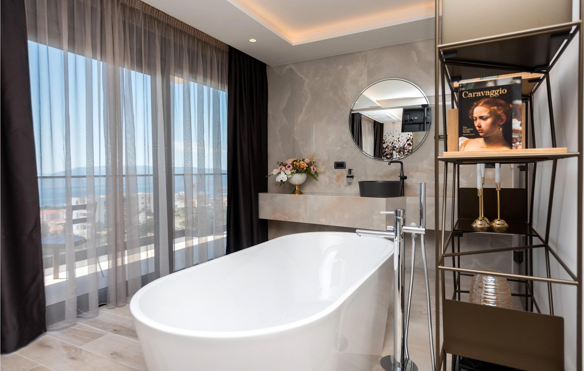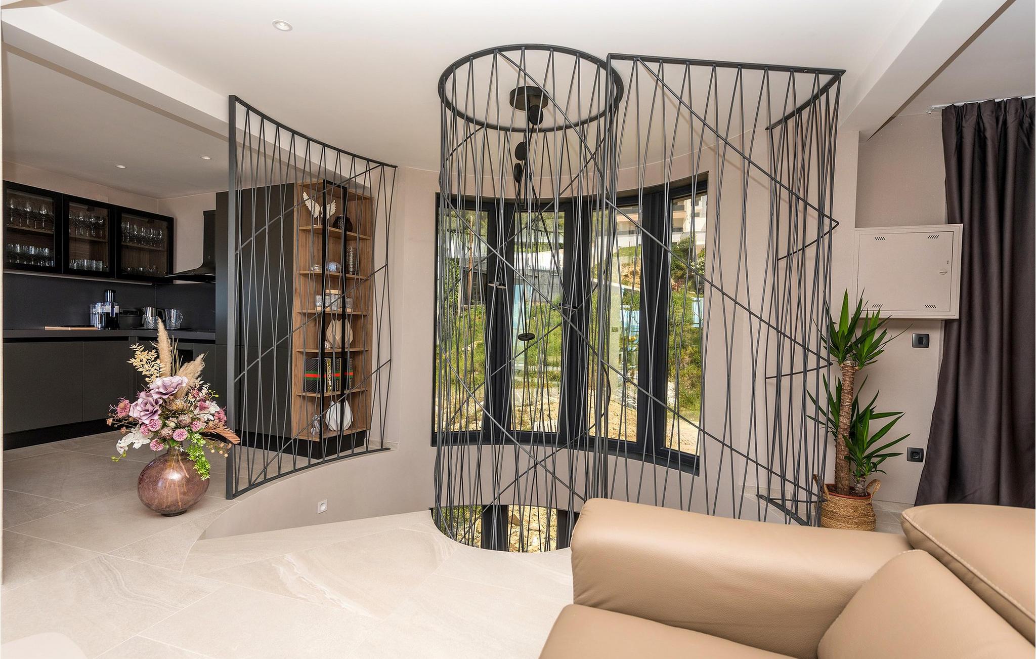 Den luksuriøse Villa Rhapsody 2 er noget særligts elegante, moderne atmosfære. Rene linjer, varme materialer og stilfulde detaljer skaber en atmosfære af tidløs harmoni. Her kan I lave mad i elegante omgivelser, afslutte dagen med et glas vin eller blot nyde freden og roen. Den problemfri forbindelse mellem indendørs og udendørs områder lægger op til timer i afslappet selskab og middelhavsro.