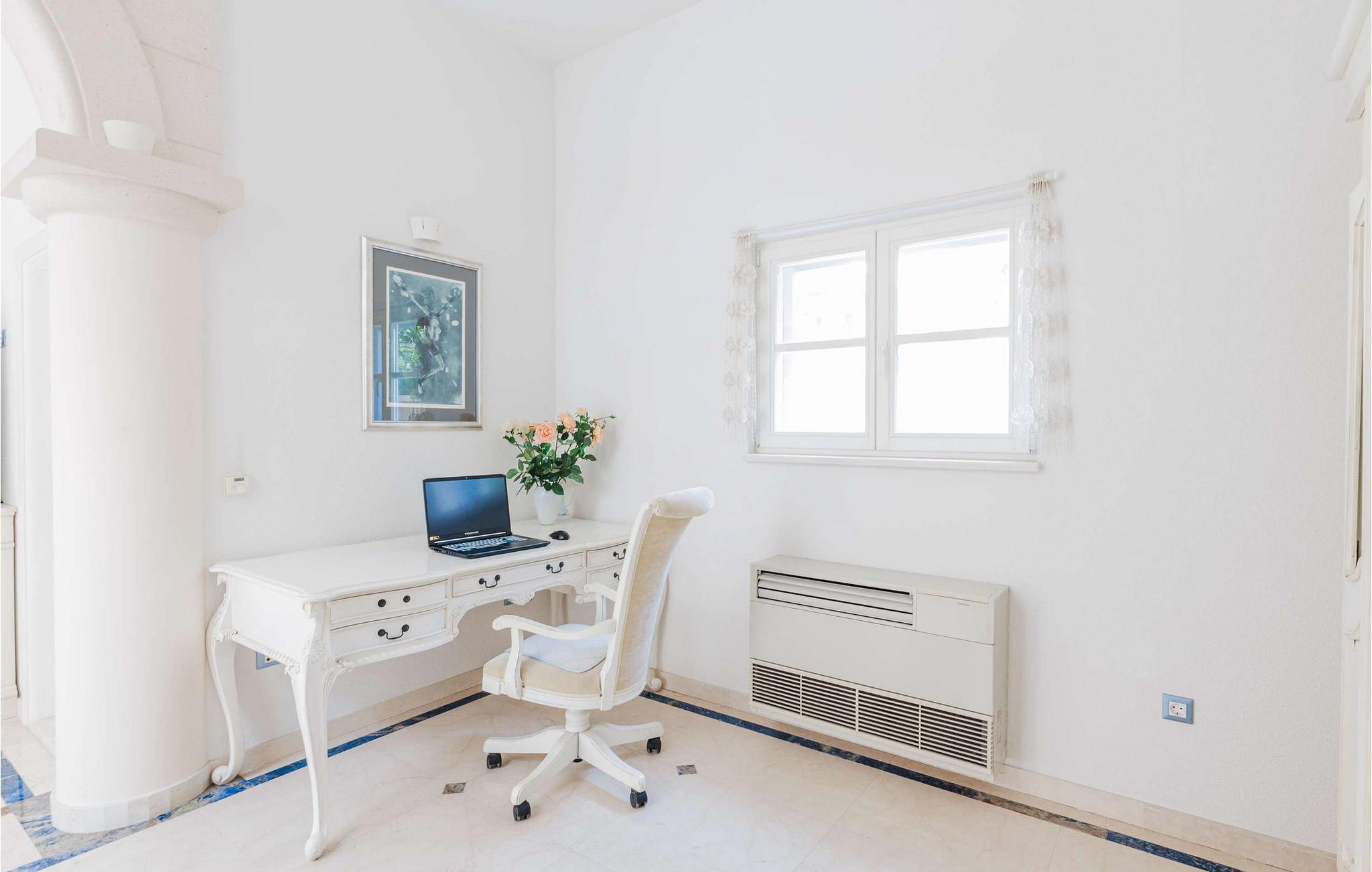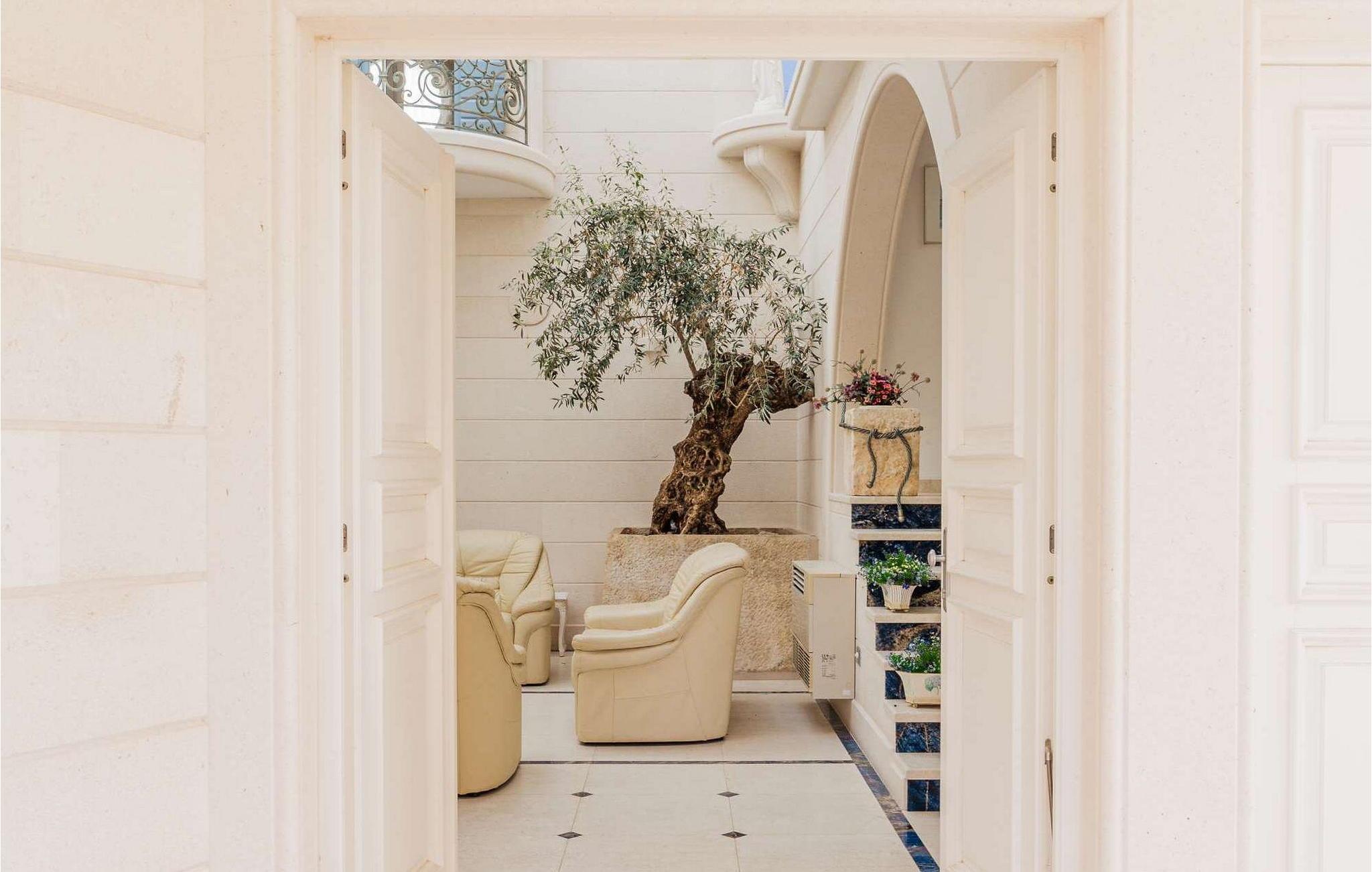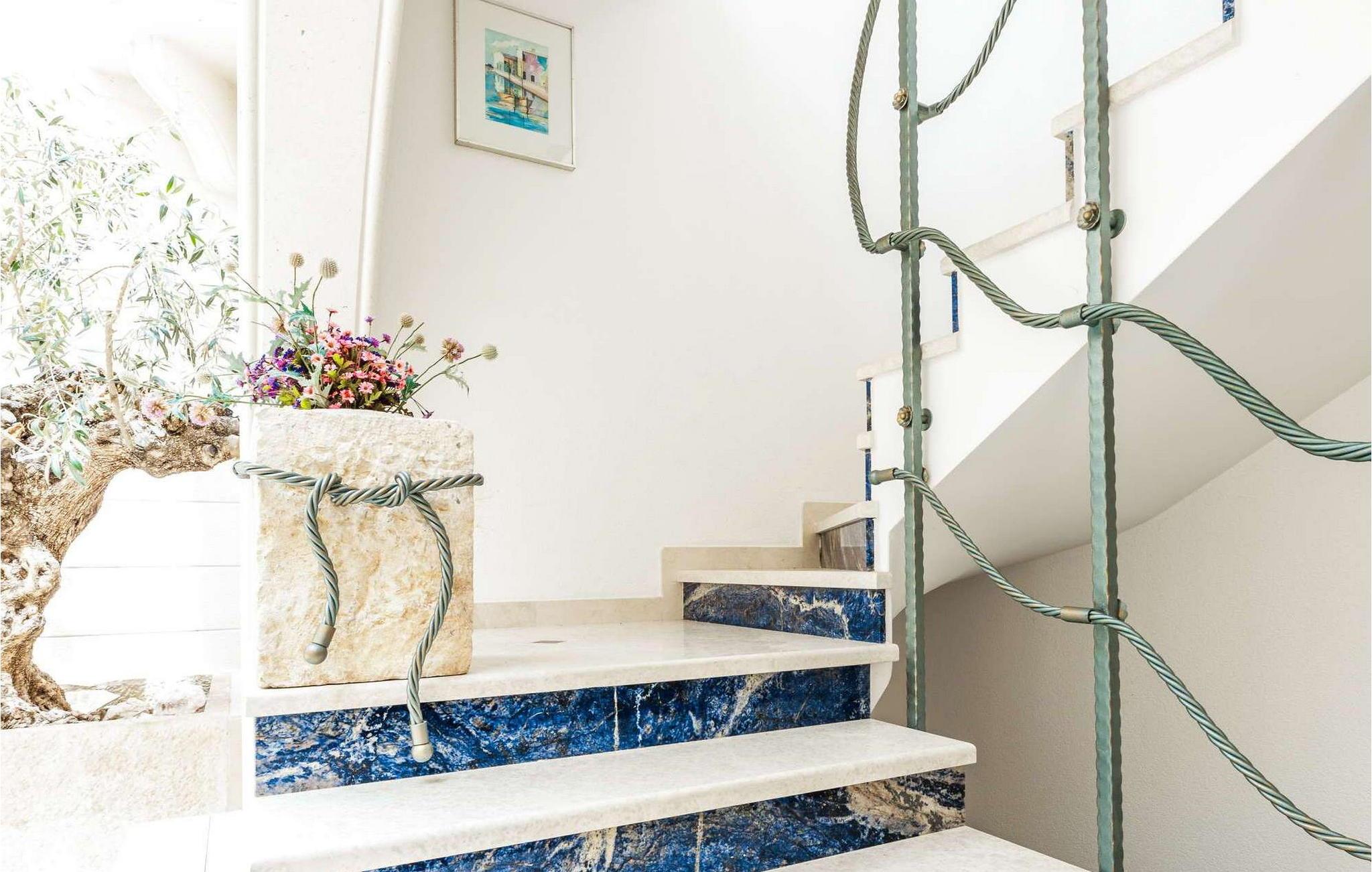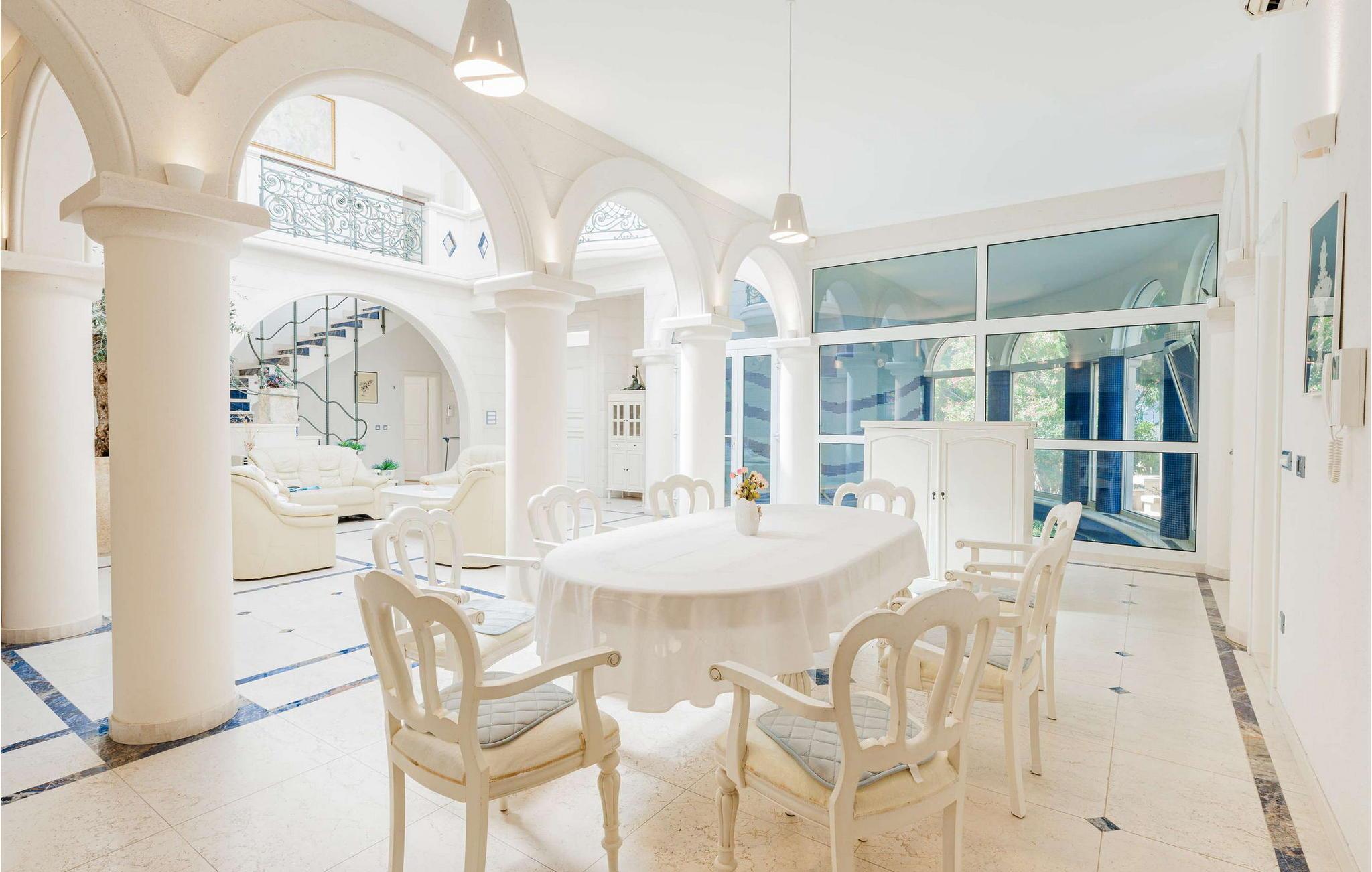 Denne storslåede villa udstråler en atmosfære af tidløs elegance og middelhavscharme. Lette stenvægge, fejende buer og udsmykkede rækværk skaber en atmosfære, der er både sofistikeret og indbydende. Tilbring afslappende timer i de stilfulde opholdsrum eller læn jer tilbage i den rustikke vinkælder med et glas lokal vin og en god samtale. Takket være den lyse veranda med udsigt over de omkringliggende bjerge kan I nyde en følelse af fred og ro når som helst på dagen.