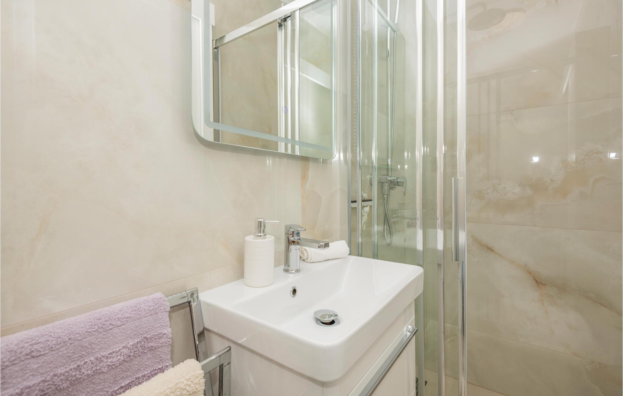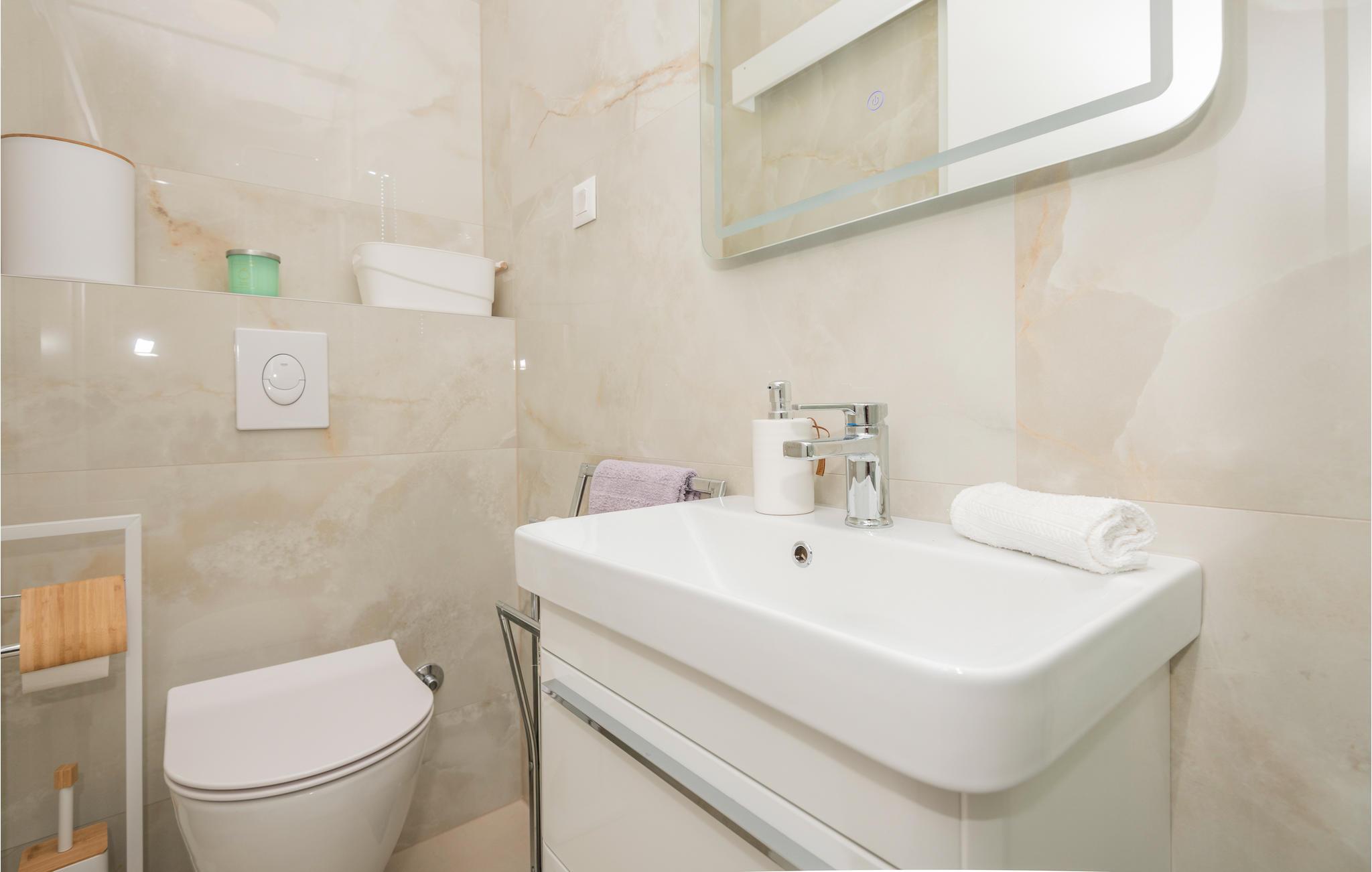 I et moderne lejlighedskompleks finder I denne skønne ferielejlighed med moderne atmosfære og lyst design. Boligen er ideel til to par eller en lille familie, der sætter pris på komfort og hygge. Den velmøblerede stue kombinerer madlavning, spisning og afslapning, så ingen skal stå alene i køkkenet. Træd ud på den vidunderlige balkon og slæng jer i lounge-sofaen, hvorfra I ikke kan få nok af udsigten.