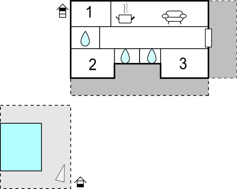 Badeværelse 4m2 (nr. 3) - WC. Varmt og koldt vand. Bruser