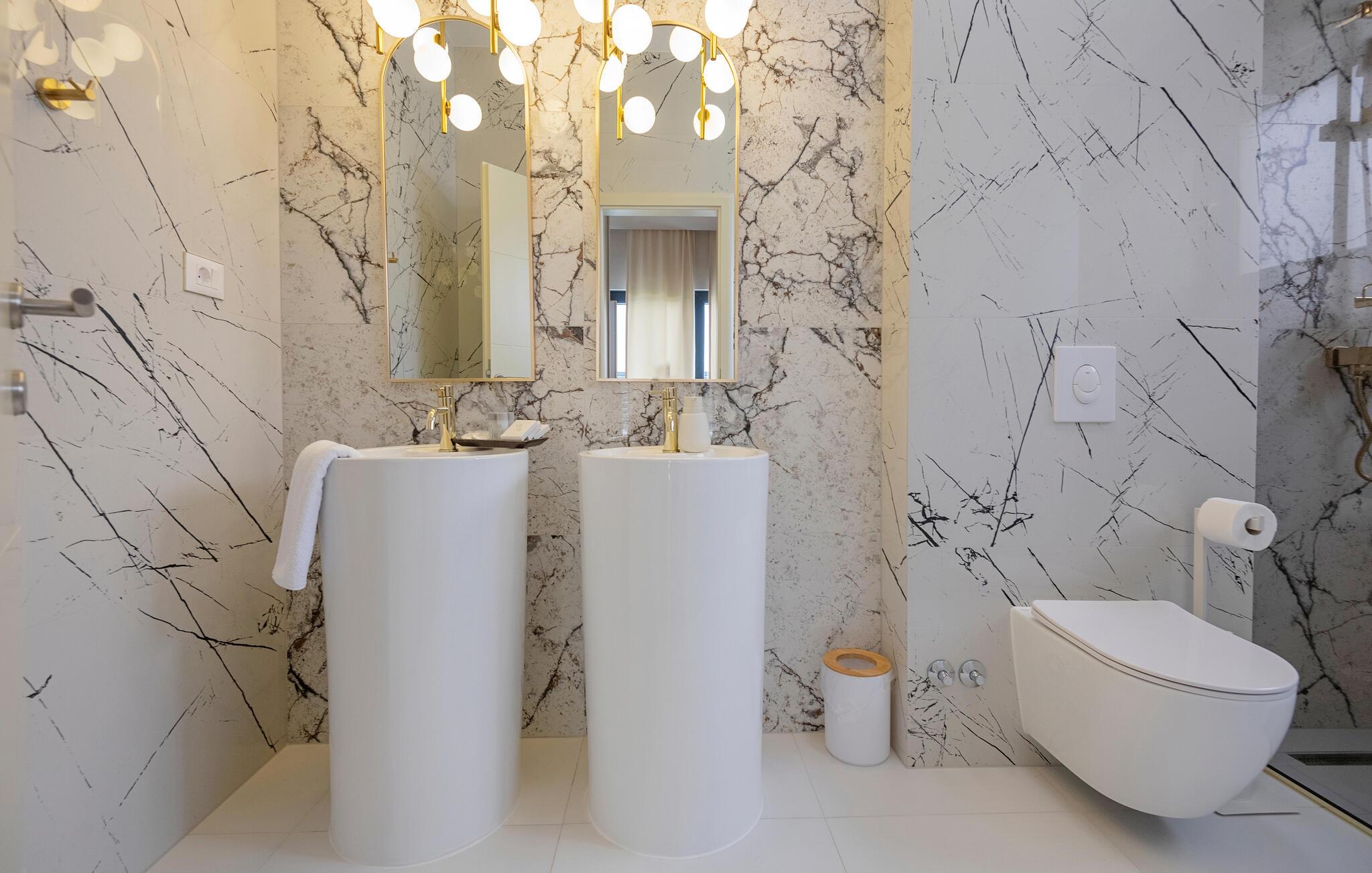 Er I en stor familie, kan I også booke det tilstødende dobbelthus og nyde den dobbelte komfort. Den høje kvalitet af indretning og møbler gør huset til et slags drømmeland, og madlavning i det fuldt udstyrede køkken bliver her til en særlig oplevelse. Fra altanen og terrassen har I en fremragende udsigt over havet, og I kan svømme baner i poolen, slappe af i spabadets bobler og bare tillade jer at nyde dette fantastiske hus til fulde.