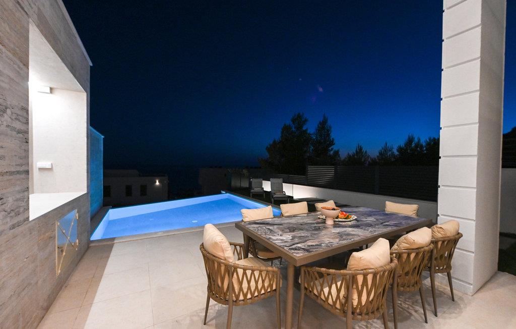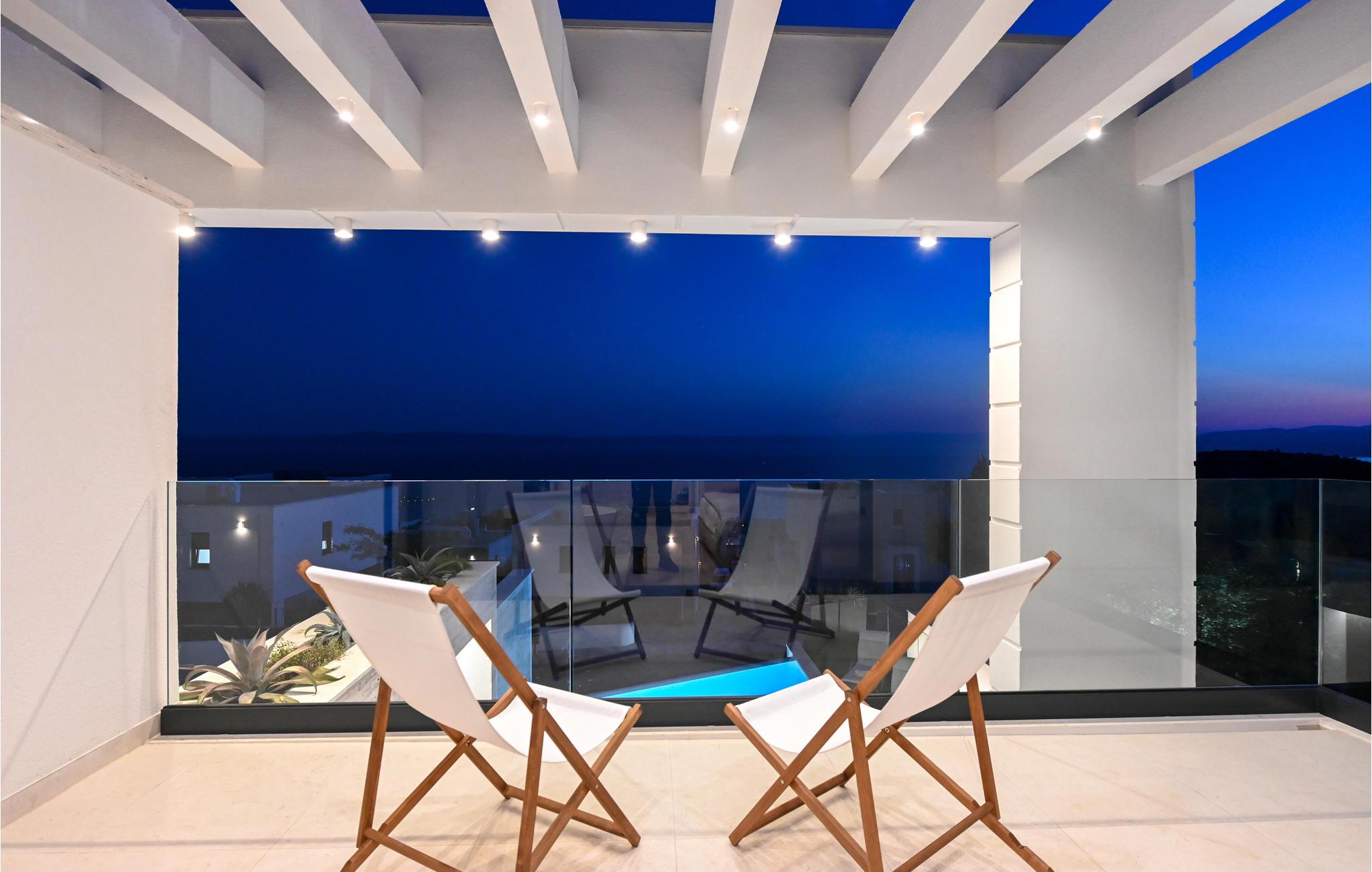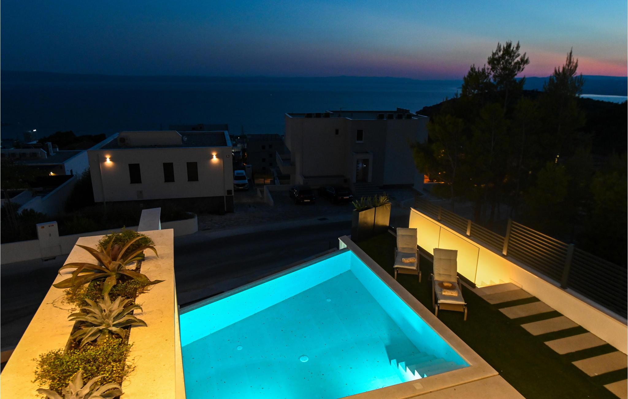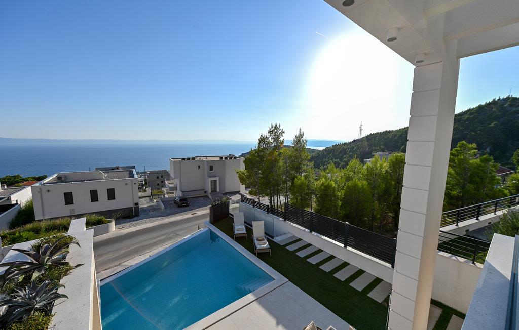 Glæd jer til dette moderne og storslåede feriehus med pool, hvor I har Sveti Jure-bjergene lige bag jer og havet lige foran næsen.