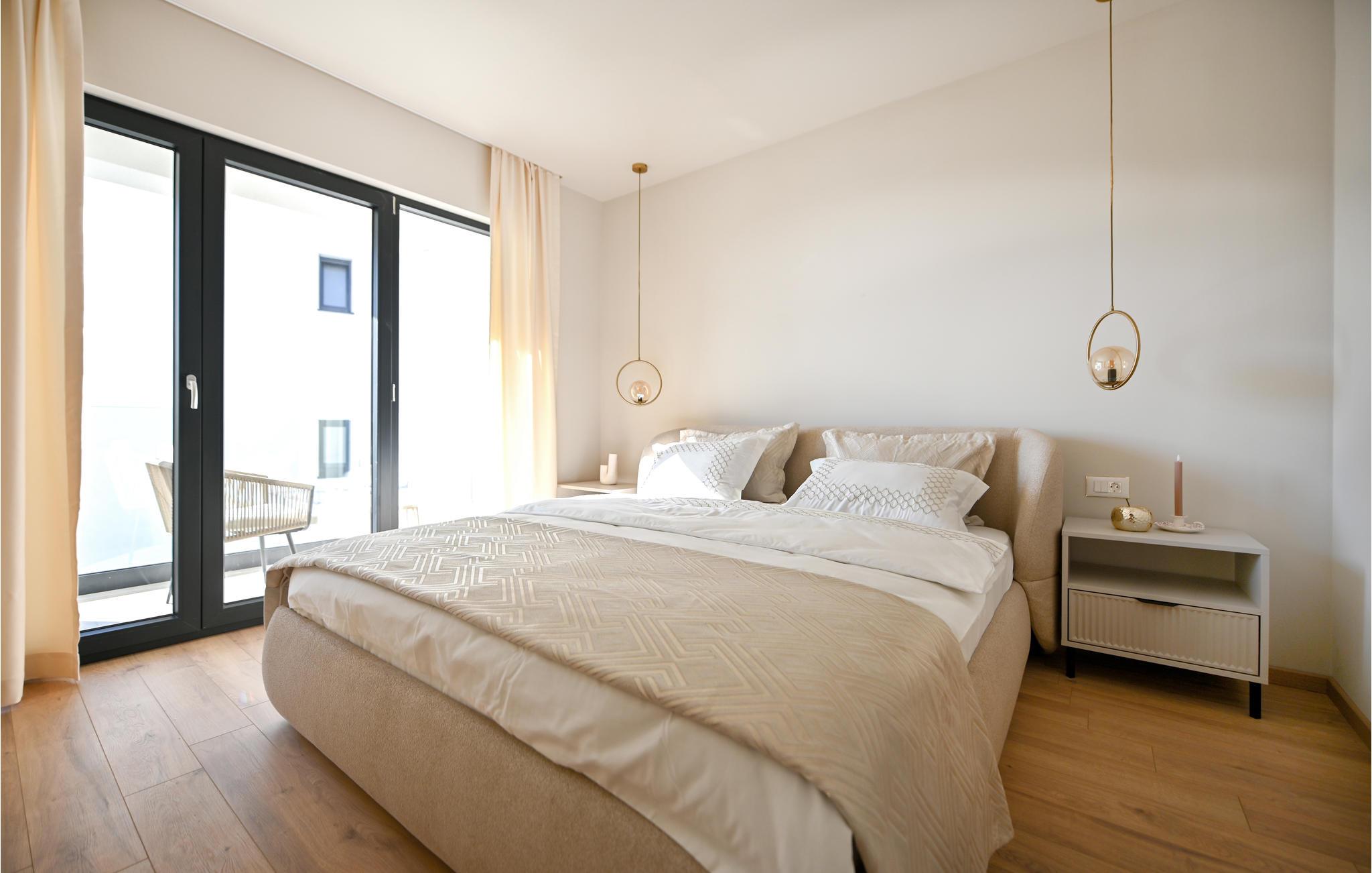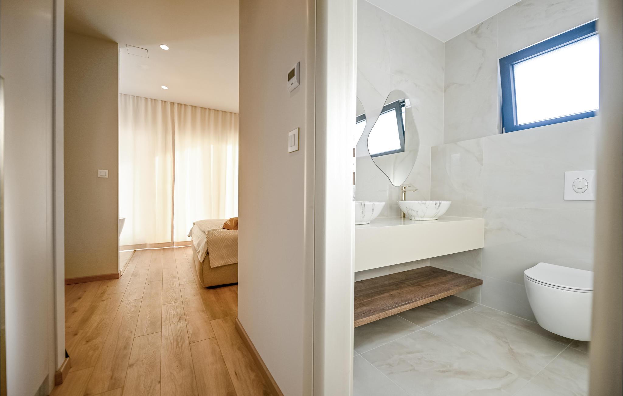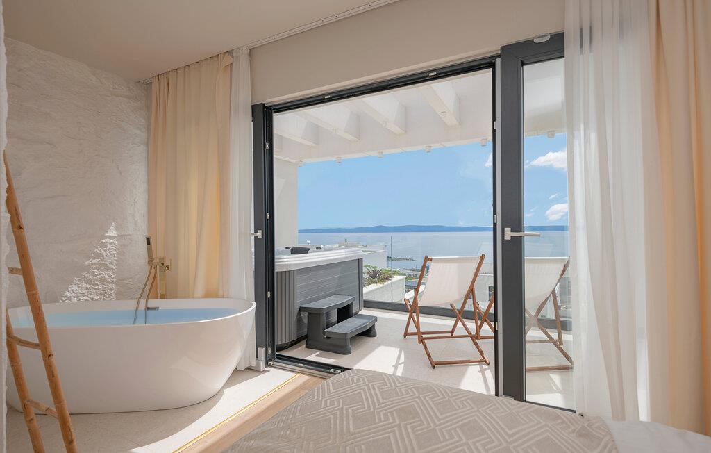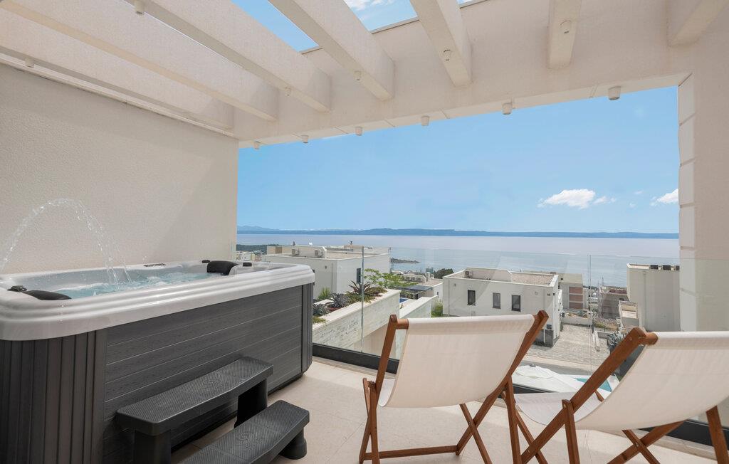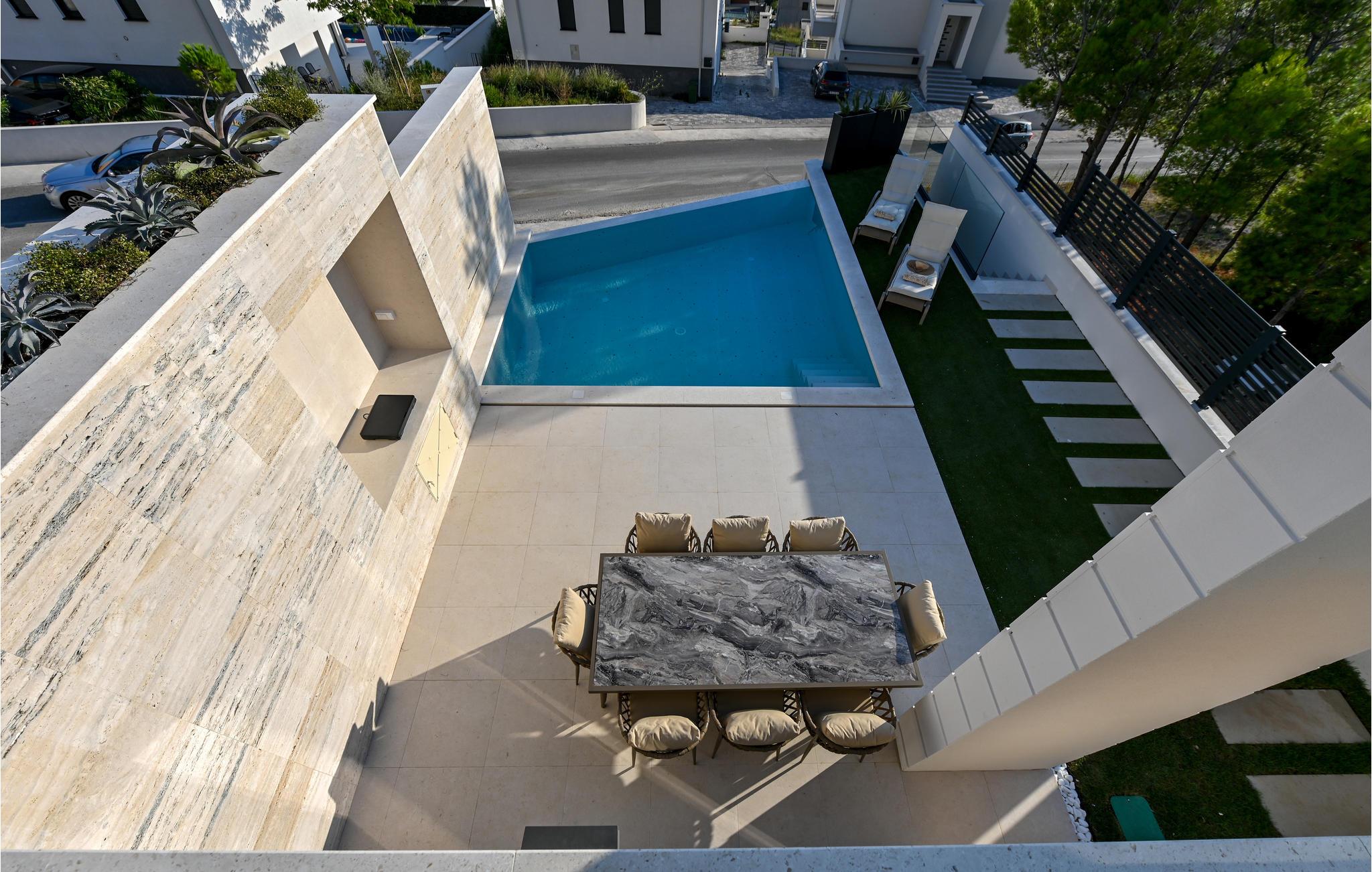Glæd jer til dette moderne og storslåede feriehus med pool, hvor I har Sveti Jure-bjergene lige bag jer og havet lige foran næsen.