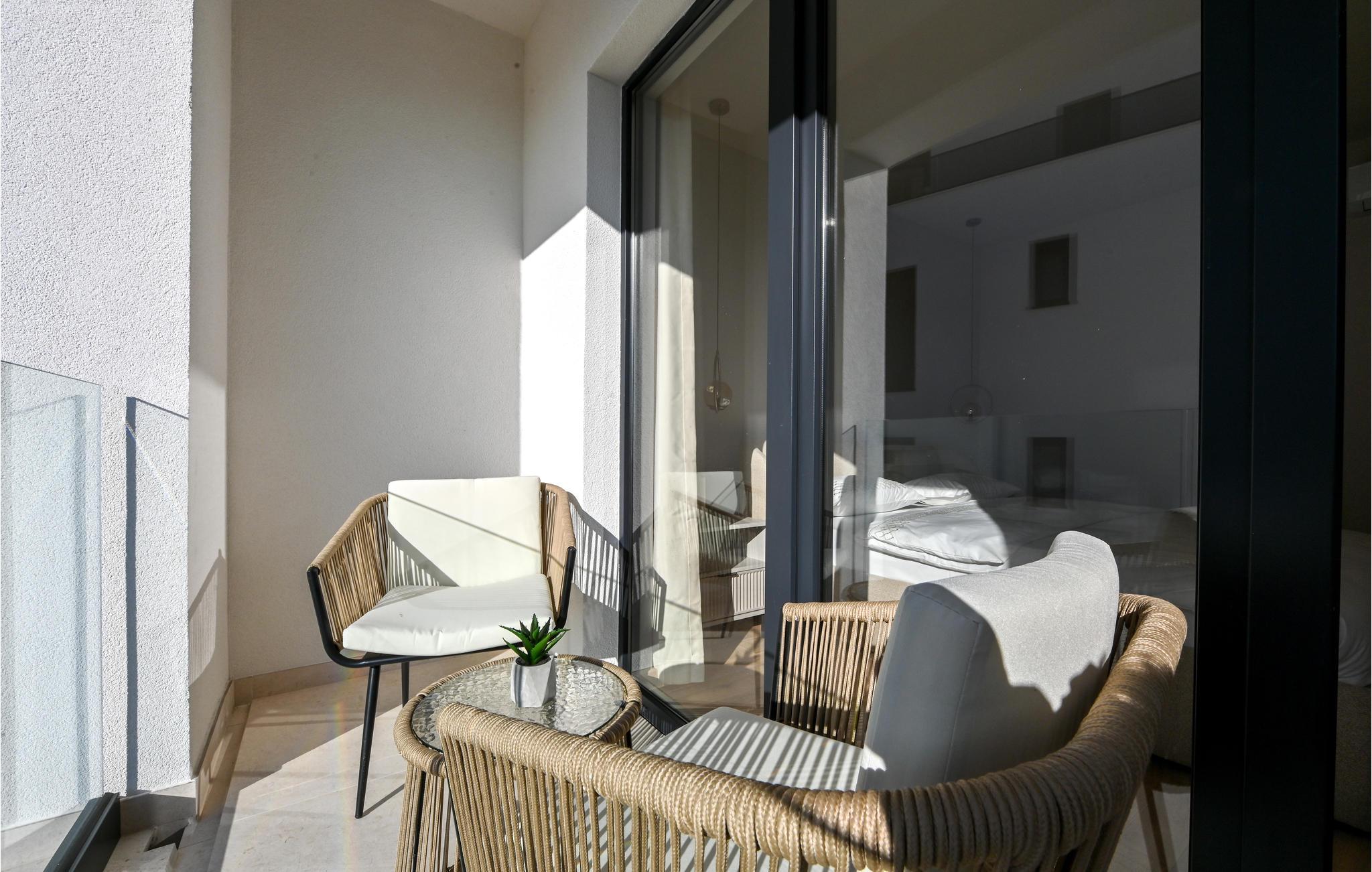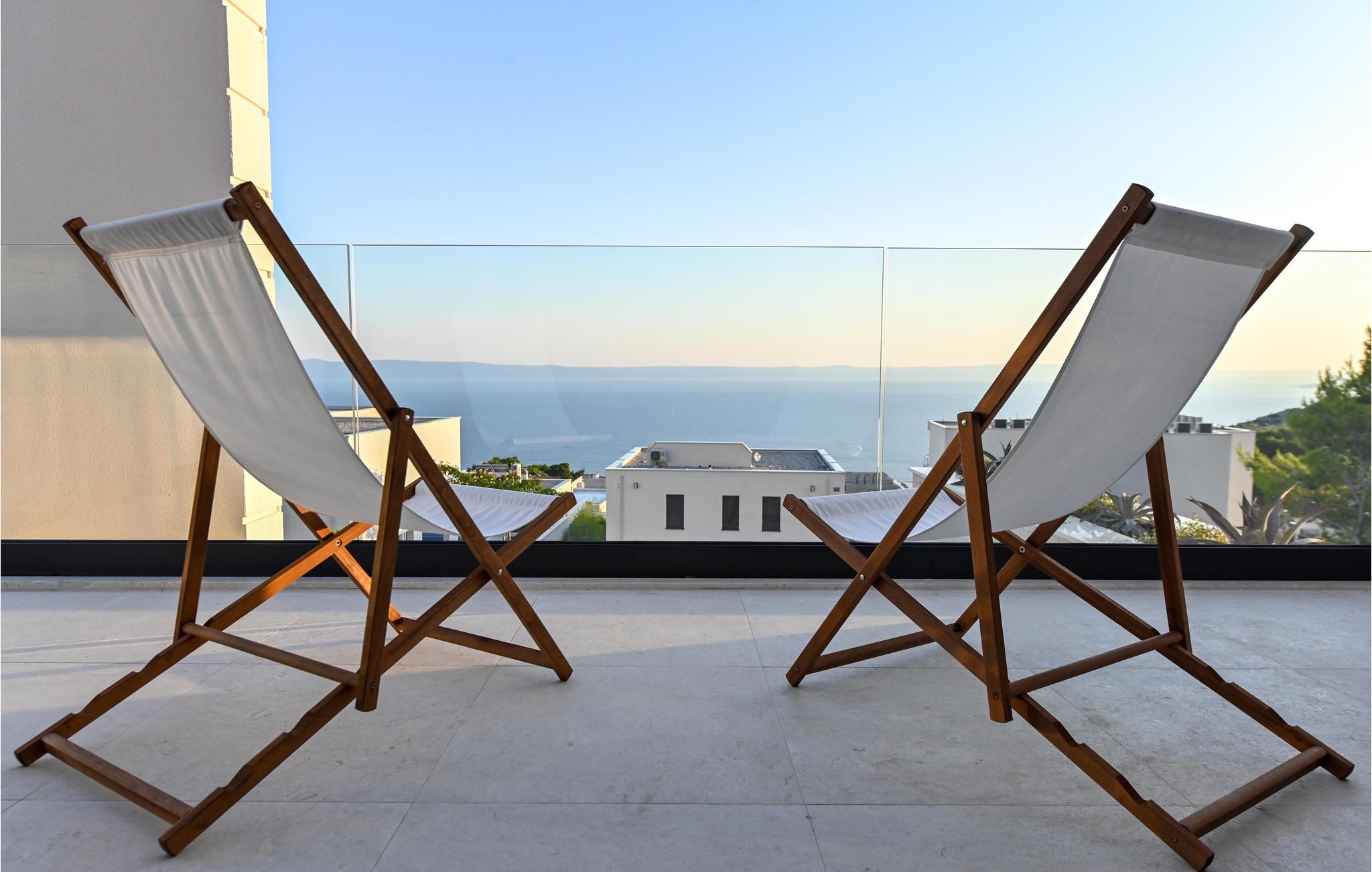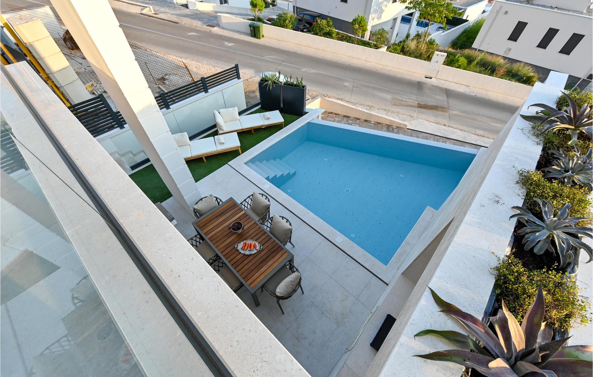 Glæd jer til dette moderne og storslåede feriehus med pool, hvor I har Sveti Jure-bjergene lige bag jer og havet lige foran næsen.