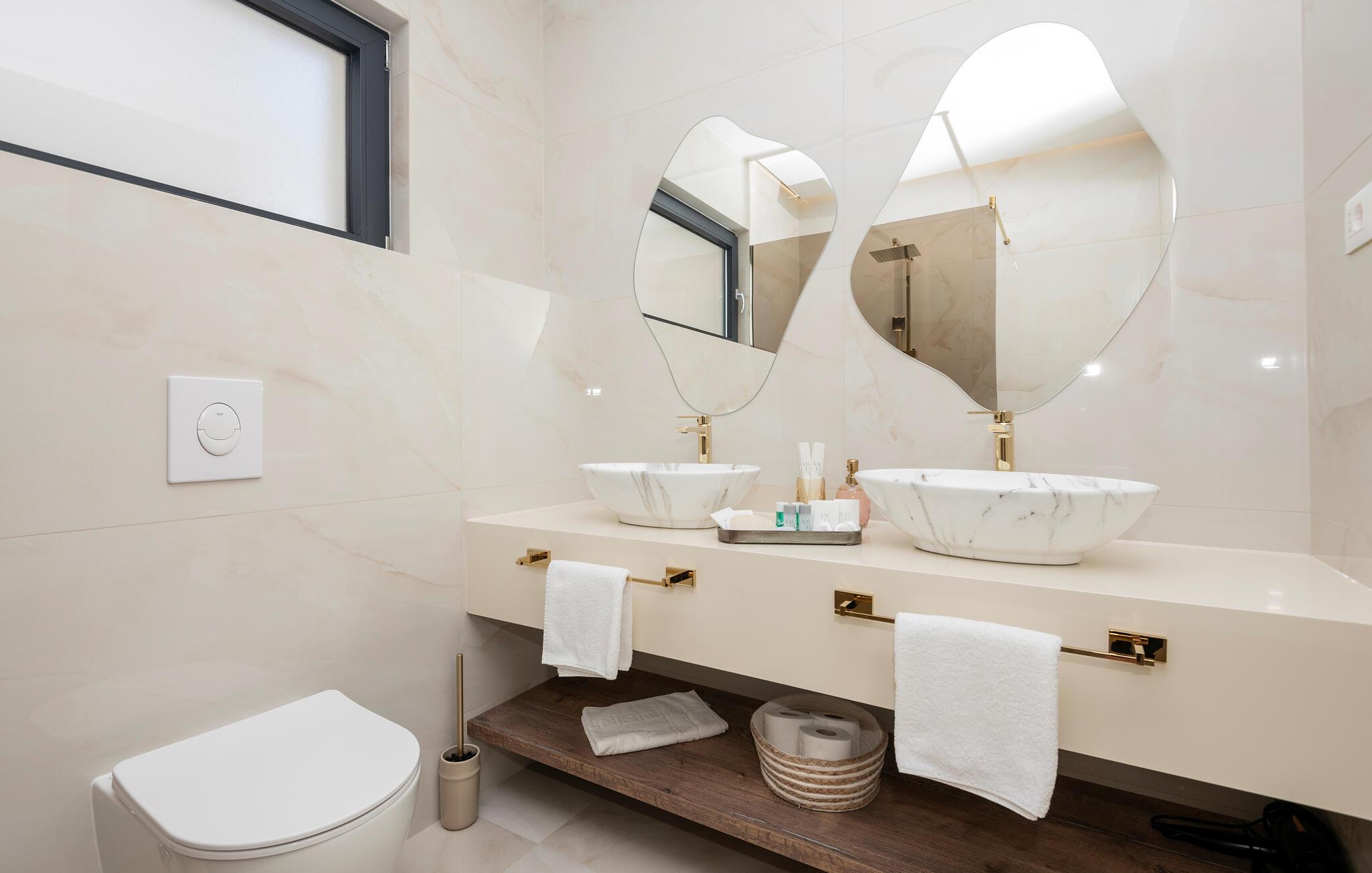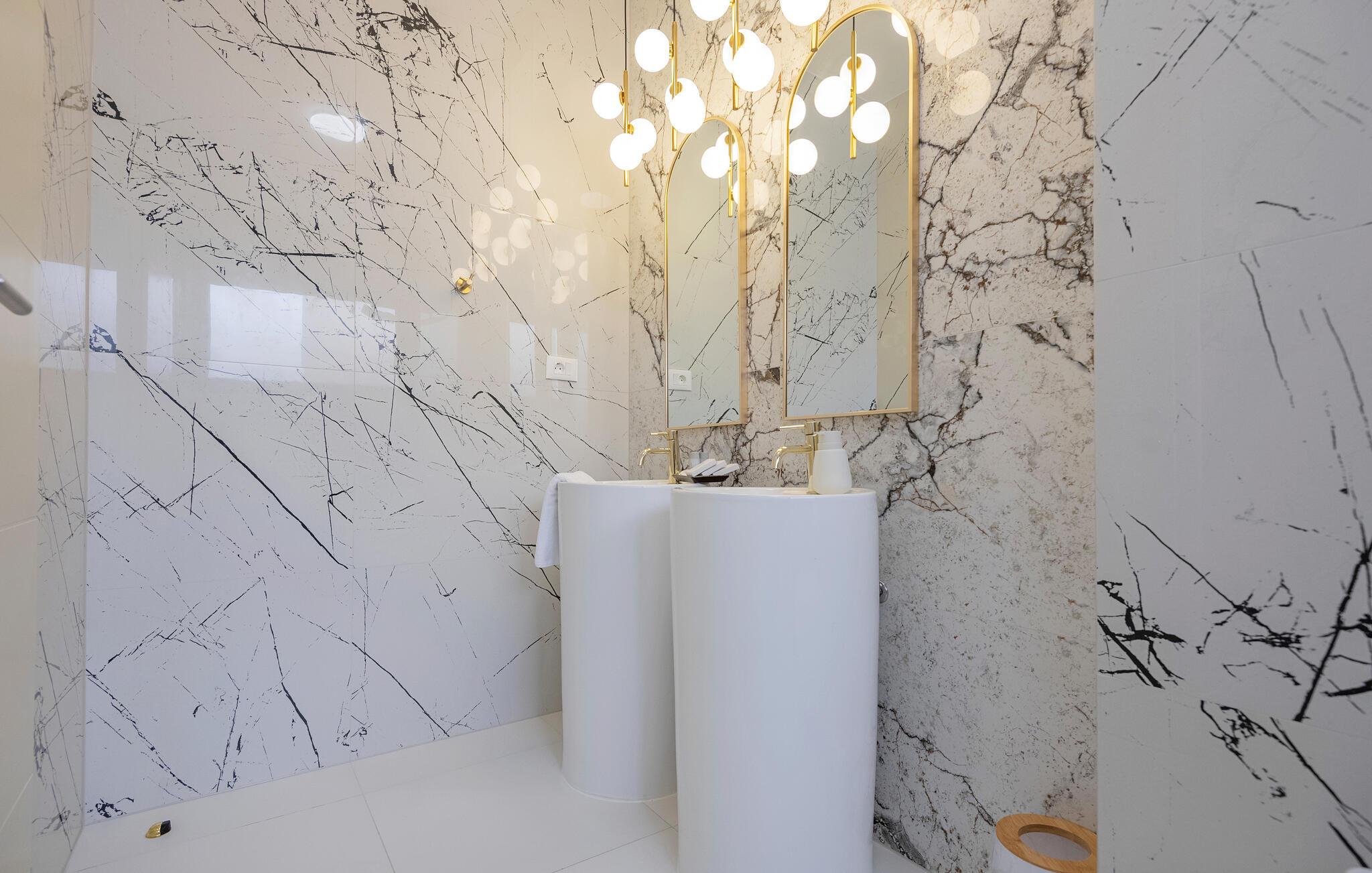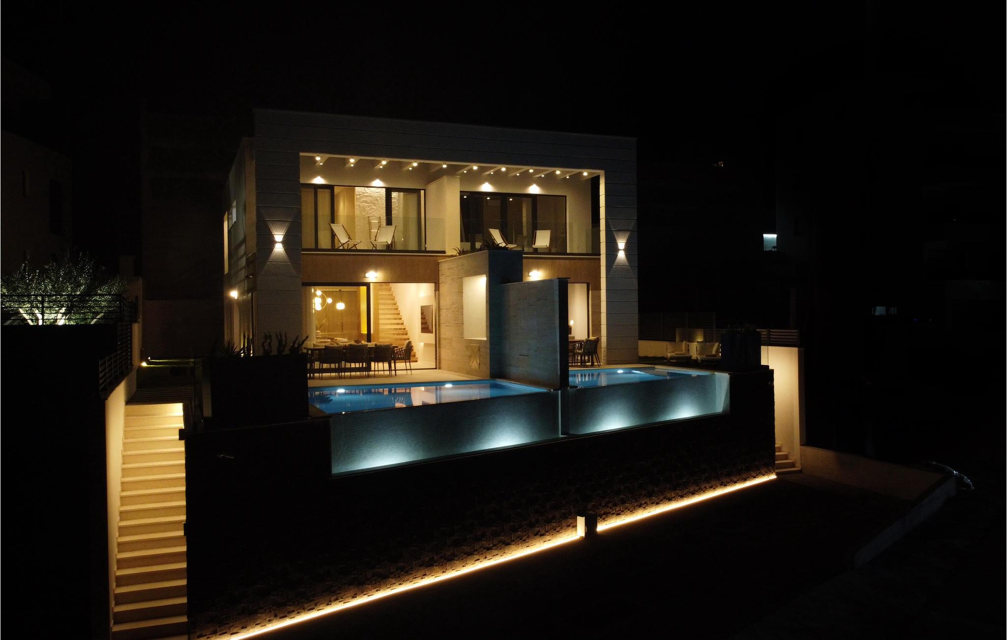 Er I en stor familie, kan I også booke det tilstødende dobbelthus og nyde den dobbelte komfort. Den høje kvalitet af indretning og møbler gør huset til et slags drømmeland, og madlavning i det fuldt udstyrede køkken bliver her til en særlig oplevelse. Fra altanen og terrassen har I en fremragende udsigt over havet, og I kan svømme baner i poolen, slappe af i spabadets bobler og bare tillade jer at nyde dette fantastiske hus til fulde.