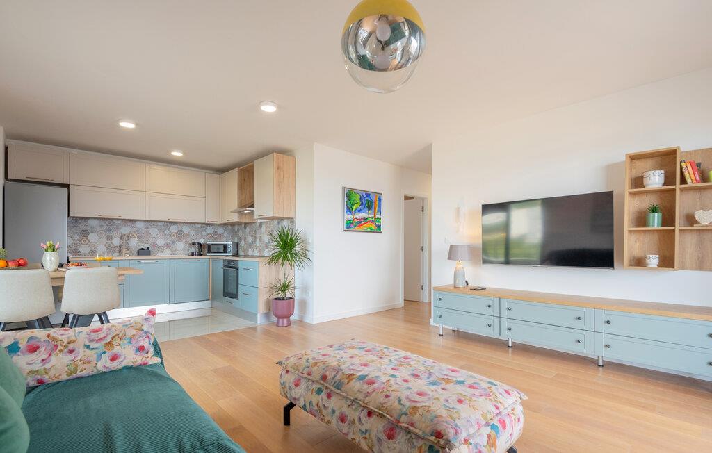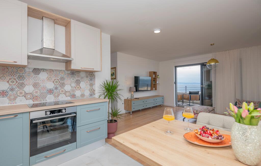 Glæd jer til en dejlig ferie i Kroatien i denne ferielejlighed med havudsigt. Jeres stilfuldt designede ferielejlighed giver jer den optimale mulighed for at flygte fra hverdagen og lade batterierne op. Fra de første solstråler om morgenen til de milde aftentimer kan I her opleve ren afslapning. Vågn op i jeres komfortable soveværelse og nyd freden og den elegante atmosfære. Begynd jeres dage med en lækker morgenmad tilberedt i det praktisk udstyrede køkken. Nyd jeres måltid ved det tilstødende spisebord eller sæt jer på den solrige balkon, hvor I kan se ud over det glitrende hav. Bagefter inviterer den komfortable sofa til en pause. Fordyb jer i en god bog eller se en god film. Udforsk den livlige by Makarska, som er noget særligt med sin charmerende gamle bydel og smukke strande. Pak jeres badetøj og tilbring ubekymrede timer ved det krystalklare vand. Om aftenen venter en bred vifte af kulinariske og kulturelle oplevelser på jer. Gå en tur gennem de historiske gader, besøg den imponerende co-katedral eller det maleriske franciskanerkloster og lad jer fortrylle af den unikke atmosfære i denne kystby.