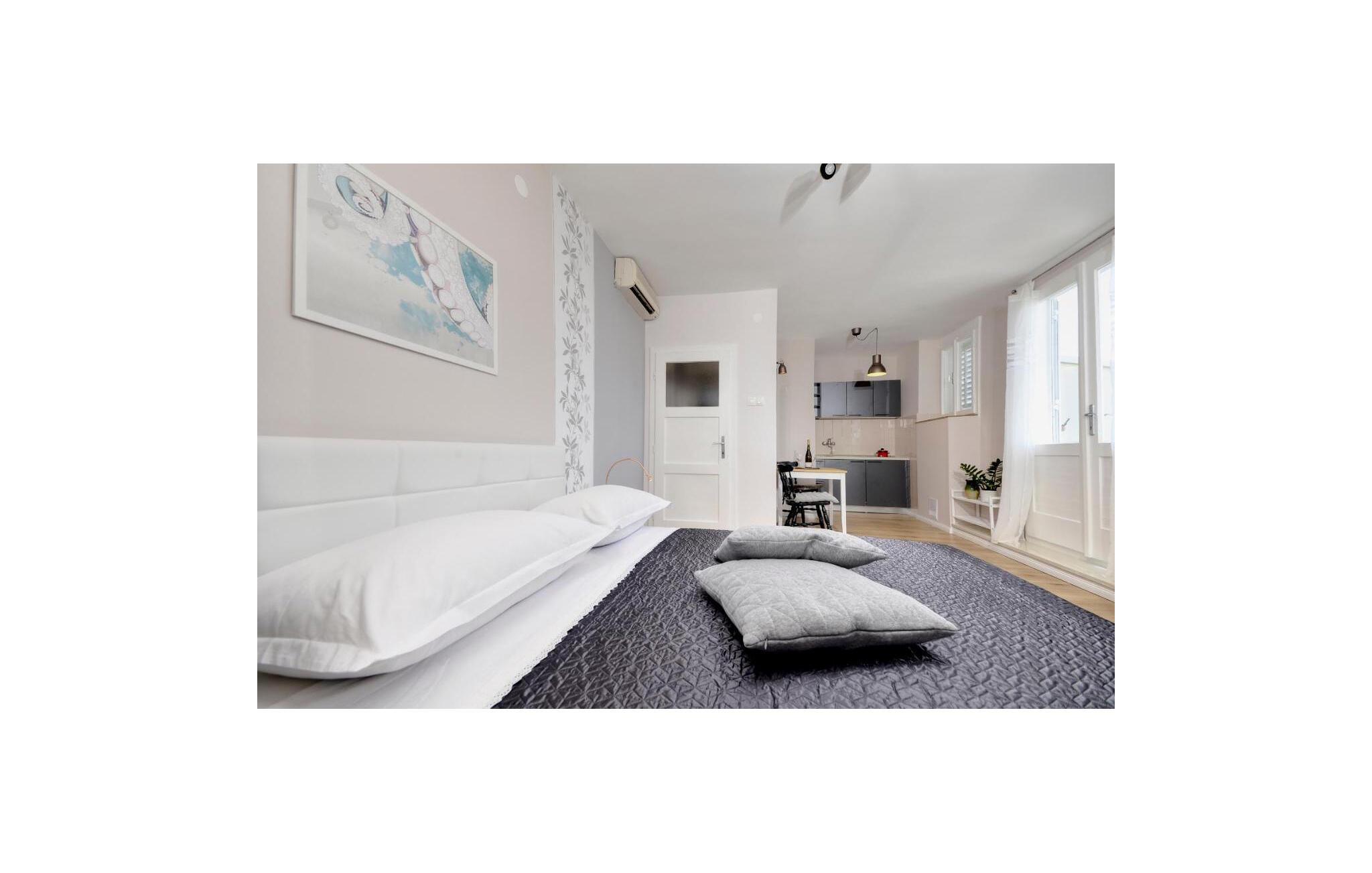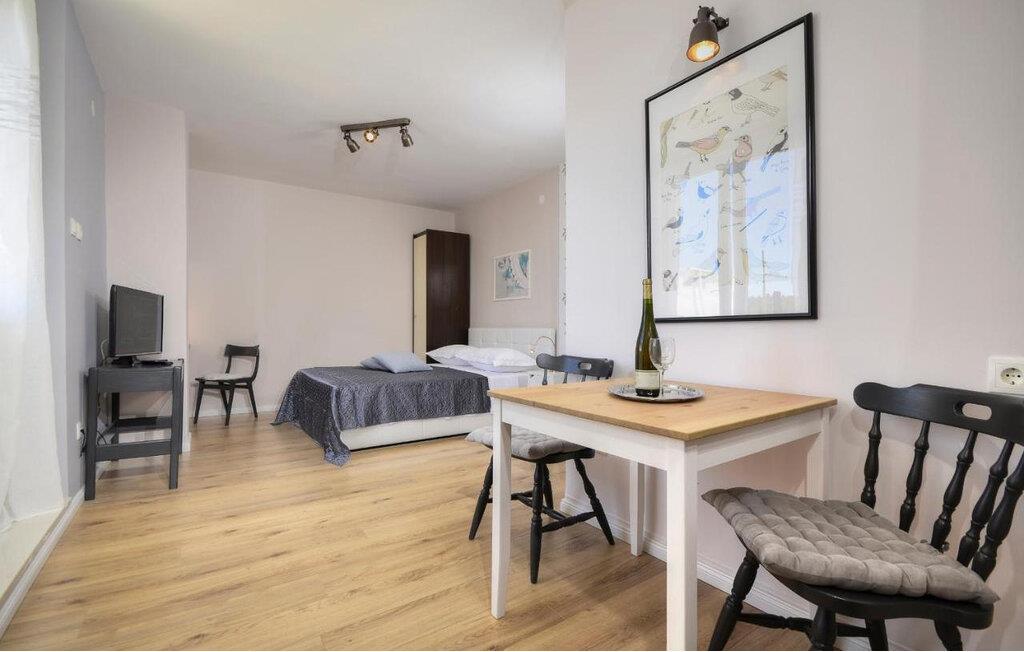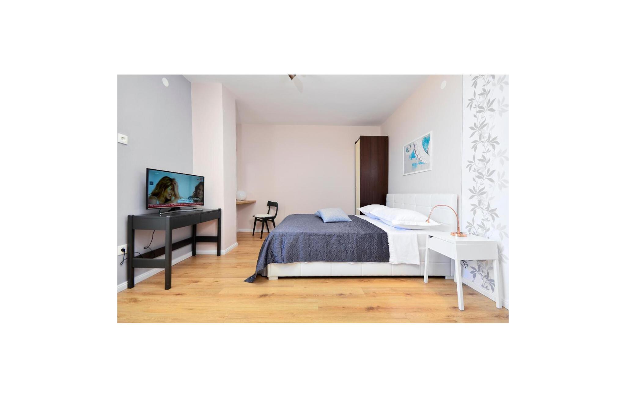 Denne moderne etværelseslejlighed ligger lige ud til strandpromenaden, hvor I kan tilbringe romantiske dage ved Adriaterhavet. Tilbered dagens måltider i det åbne køkken og nyd dem ved det indbydende spisebord. Planlæg jeres næste aktiviteter her og slap af efter en begivenhedsrig dag med jeres yndlingsserie eller en god film.