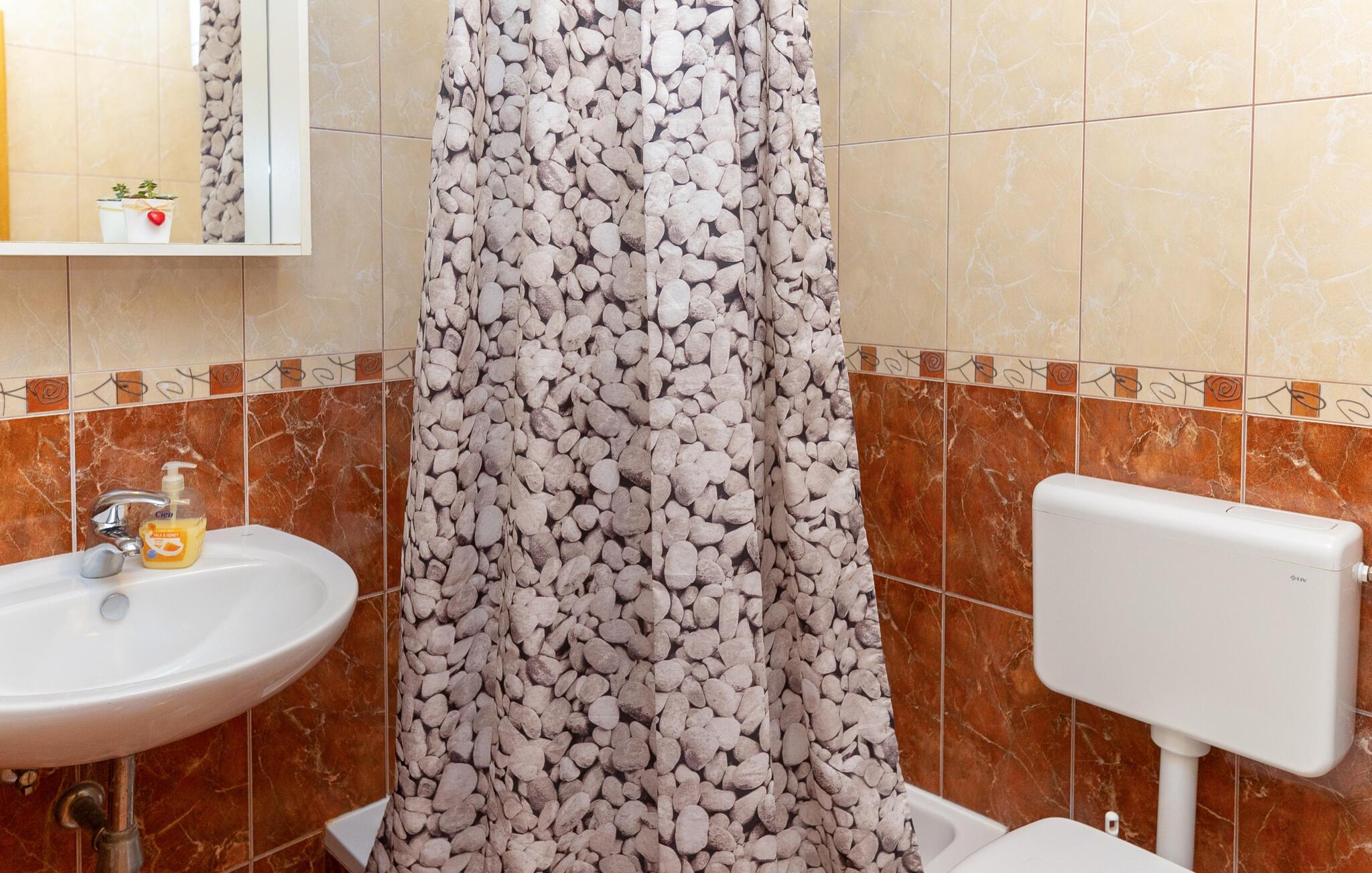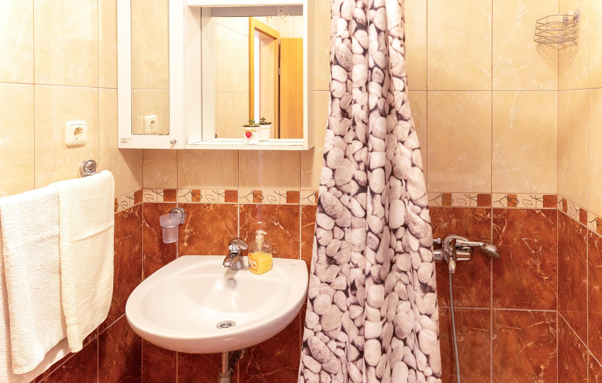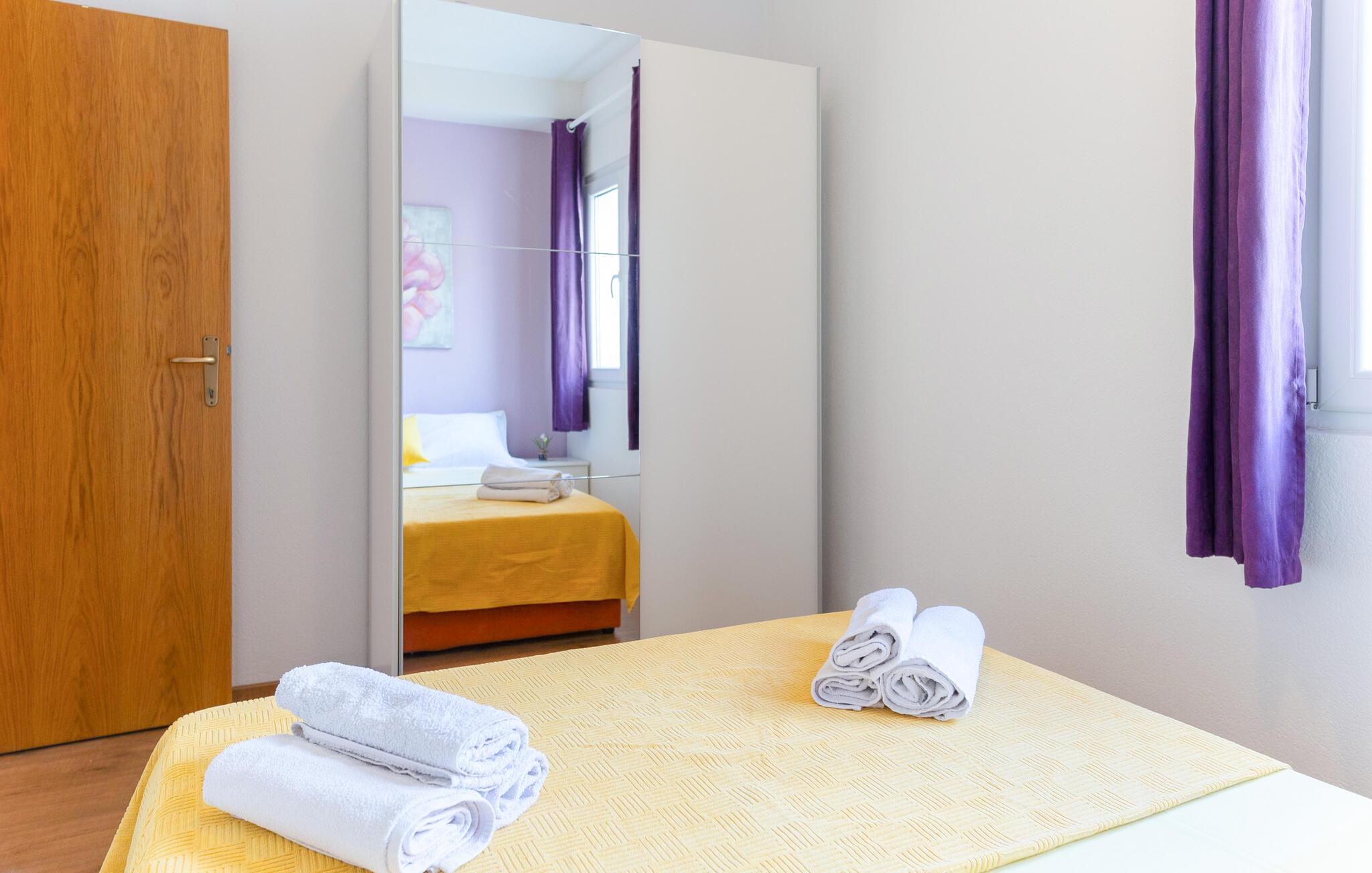 Slap af i denne hyggelige ferielejlighed nær havet. Denne lejlighed er perfekt til en afslappende pause fra hverdagen. Hyggelige, lyse værelser, et sofahjørne med tv og gennemtænkte detaljer skaber en hyggelig atmosfære, hvor I hurtigt kan slappe af og komme i ferietilstand. Lav et lækkert måltid i det moderne køkken og tilbring en hyggelig aften med et glas vin på sofaen. Start dagen med en let morgenmad og en duftende kaffe på den store altan. Derefter kan I kigge i jeres feriebøger eller lave planer for den næste dag. Om aftenen kan I vende tilbage til altanen og reflektere over jeres oplevelser. Tag en kort gåtur til stenstranden og nyd Adriaterhavets krystalklare vand. Udforsk den livlige by Makarska med dens smukke havnepromenade, hyggelige caféer og farverige marked. Tag en bådtur til de nærliggende øer Brac og Hvar. Vandr i de imponerende Biokovo-bjerge og nyd en betagende udsigt over kysten.