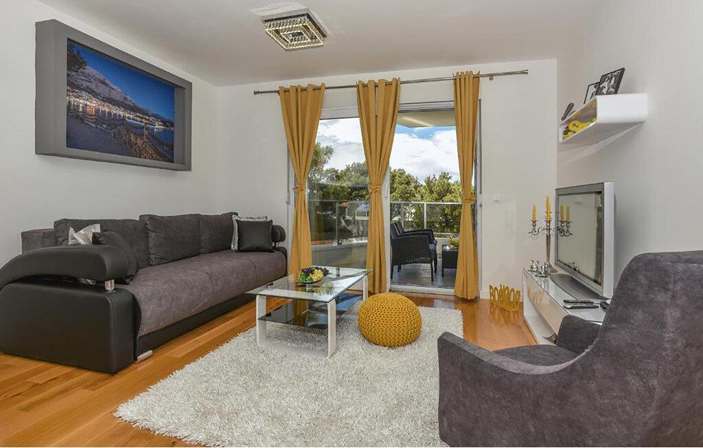 Denne smagfulde lejlighed ligger kun en kort gåtur fra stranden og lægger op til at tilbringe afslappende og varierede dage ved Adriaterhavskysten. Skab kulinariske lækkerier, nyd harmoniske måltider ved det stilfulde spisebord og planlæg jeres aktiviteter i ro og mag. Efter en begivenhedsrig dag kan I slappe af i sofaen, streame en film eller fordybe jer i jeres ferielæsning.