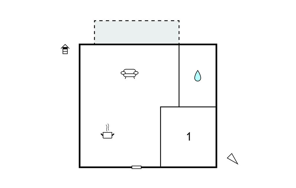 Opholdsstue 30m2 - 1 Soveplads. (Enkeltseng(e)).