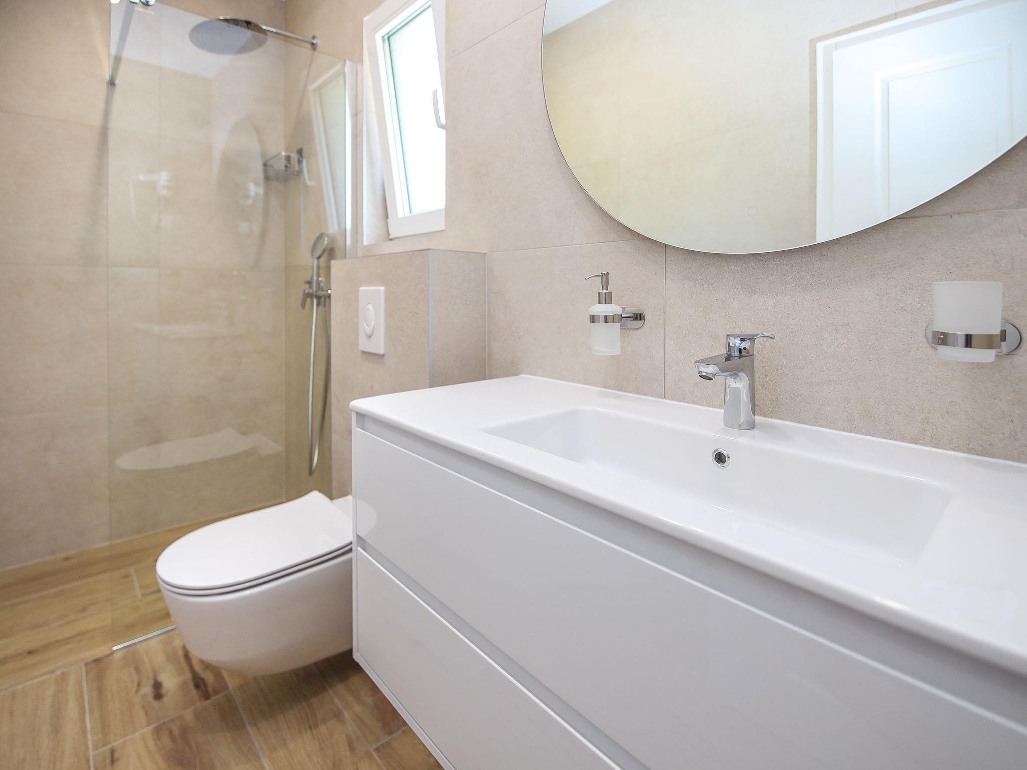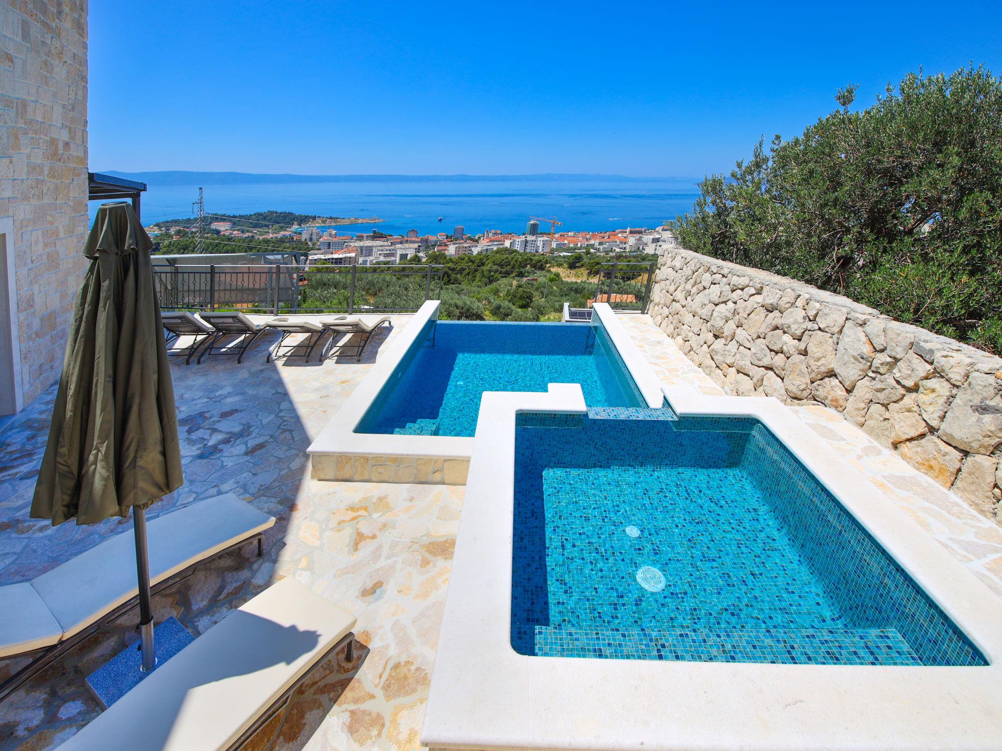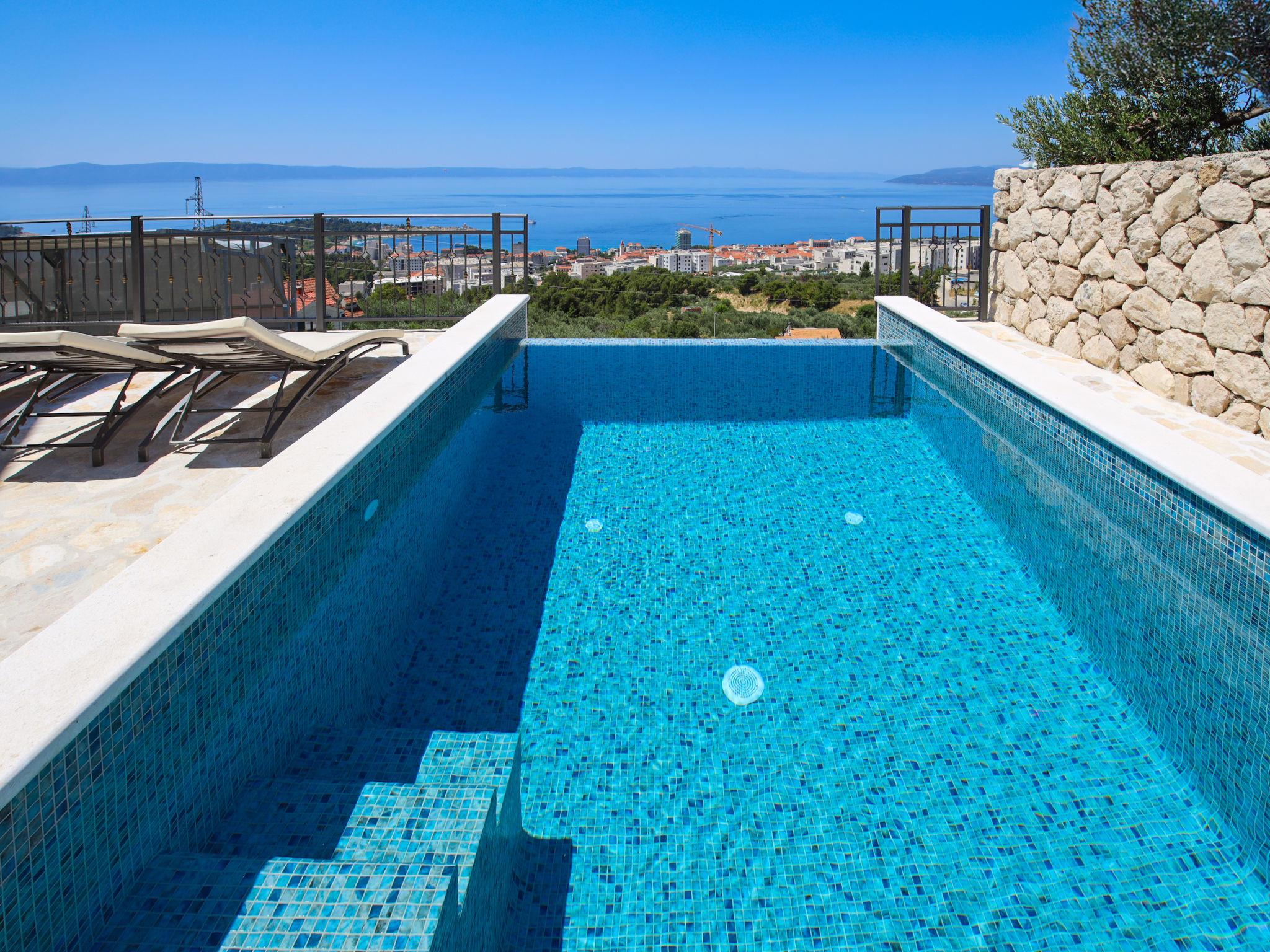 Single-family house "Bellevue", 2 storeys. Above Makarska, in the hamlet Puharici 1.5 km from the centre of Makarska, in a quiet, sunny position on a slope, 1.5 km from the sea, 1.5 km from the beach. Private: property 400 m2, swimming pool angular, heated (4 x 3 m, depth 150 cm, seasonal availability: 01.Apr. - 31.Oct.) with internal staircase. Outdoor shower, hot tub, terrace (50 m2), garden furniture, barbecue, pool maintenance by the owner/gardener. In the house: internet access, washing machine. Parking (for 2 cars) at the house on the premises. Shop, restaurant 800 m, bus stop 3.6 km, pebble beach 1.5 km. Neighbourhood highly sensitive to noise. Quietness and good behaviour expected. Heating of the water in the swimming pool (extra). It is necessary to announce 7 days in advance if the pool heating is required.