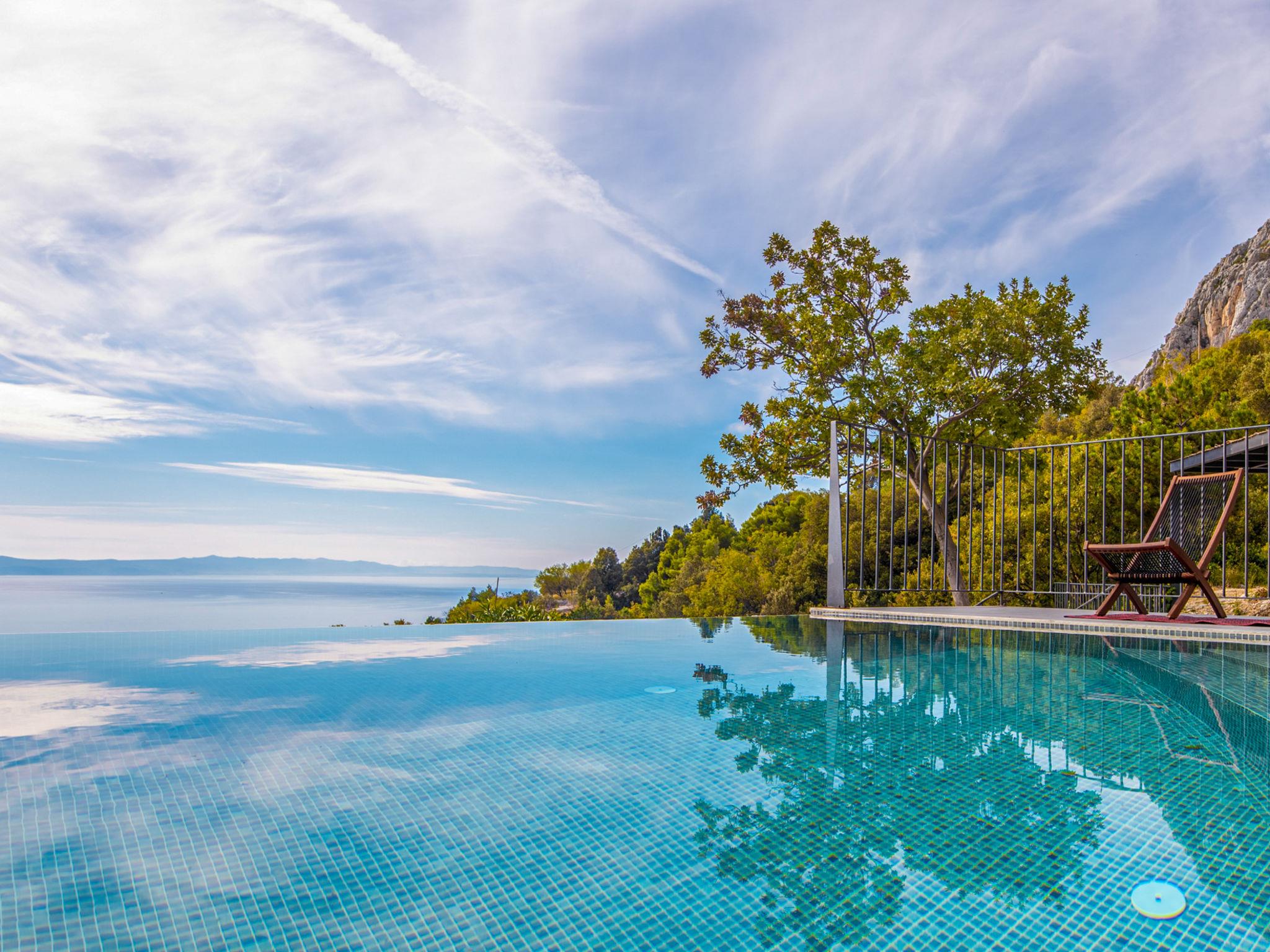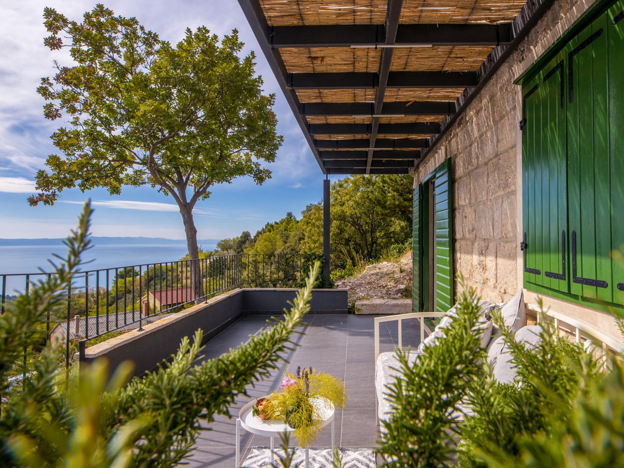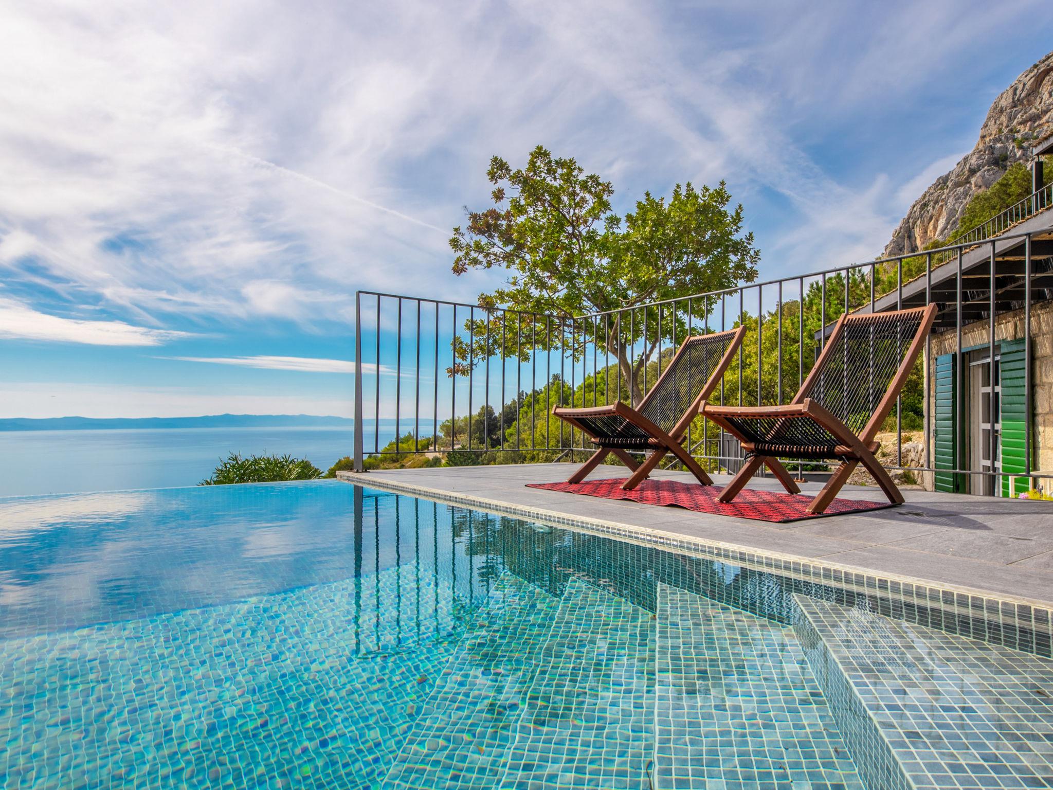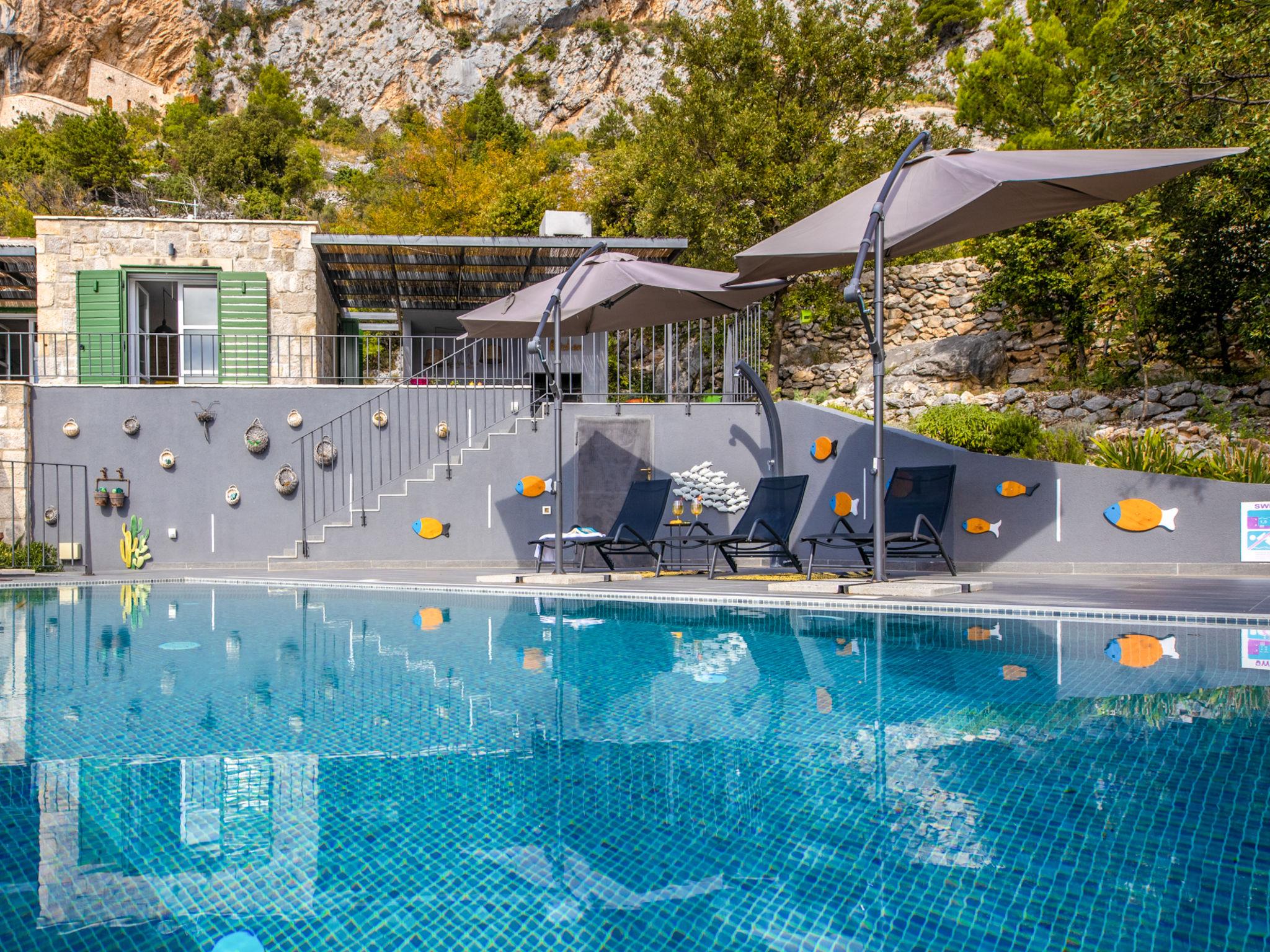 Villa 2M is a true synonym for a relaxing holiday, inviting you to discover it's charms and enjoy it's own dimension of pleasant isolation in nature with a beautiful sea view and wonderful views. Villa "2M", 2 storeys. Above Makarska, in the hamlet Kotišina 2.5 km from the centre of Makarska, in a quiet, sunny, elevated position, 3 km from the sea, 3 km from the beach, in the countryside. Private: property 2'000 m2, swimming pool angular (8 x 4 m, depth 150 cm, seasonal availability: 06.Apr. - 30.Nov.) with internal staircase. Outdoor shower, garden furniture, barbecue. In the house: internet access, washing machine, tumble dryer. Parking (for 4 cars) at the house on the premises. Shop 2 km, restaurant 2.5 km, bus stop 3.6 km, pebble beach 3 km, rocky beach 3 km. Walking paths from the house 100 m.