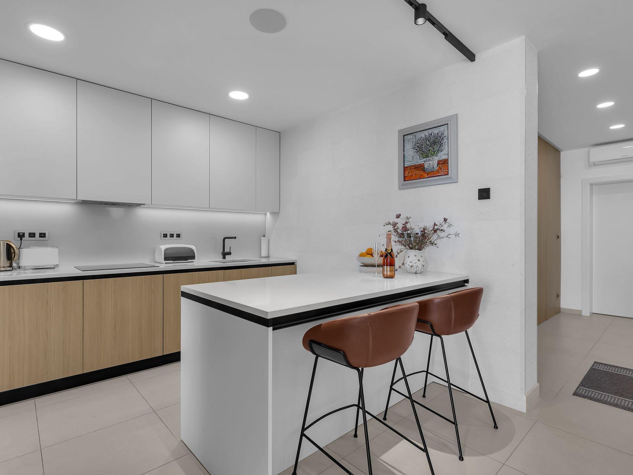 The location of the holiday home in Veliko Brdo opens up numerous opportunities for leisure activities. Just 2,000 metres separate you from the crystal-clear sea and the beach, where water sports activities are waiting to be discovered. There is a grocery shop for your daily needs just 800 metres away, while the nearest town centre is just 3,000 metres away, where you can immerse yourself in the local culture.