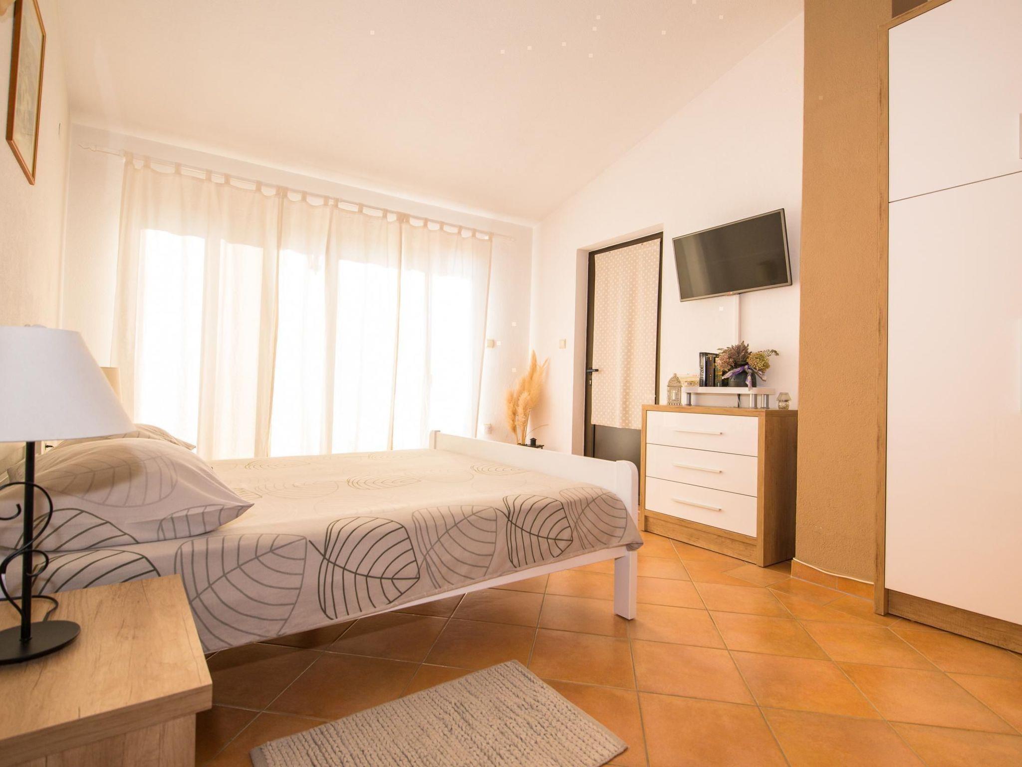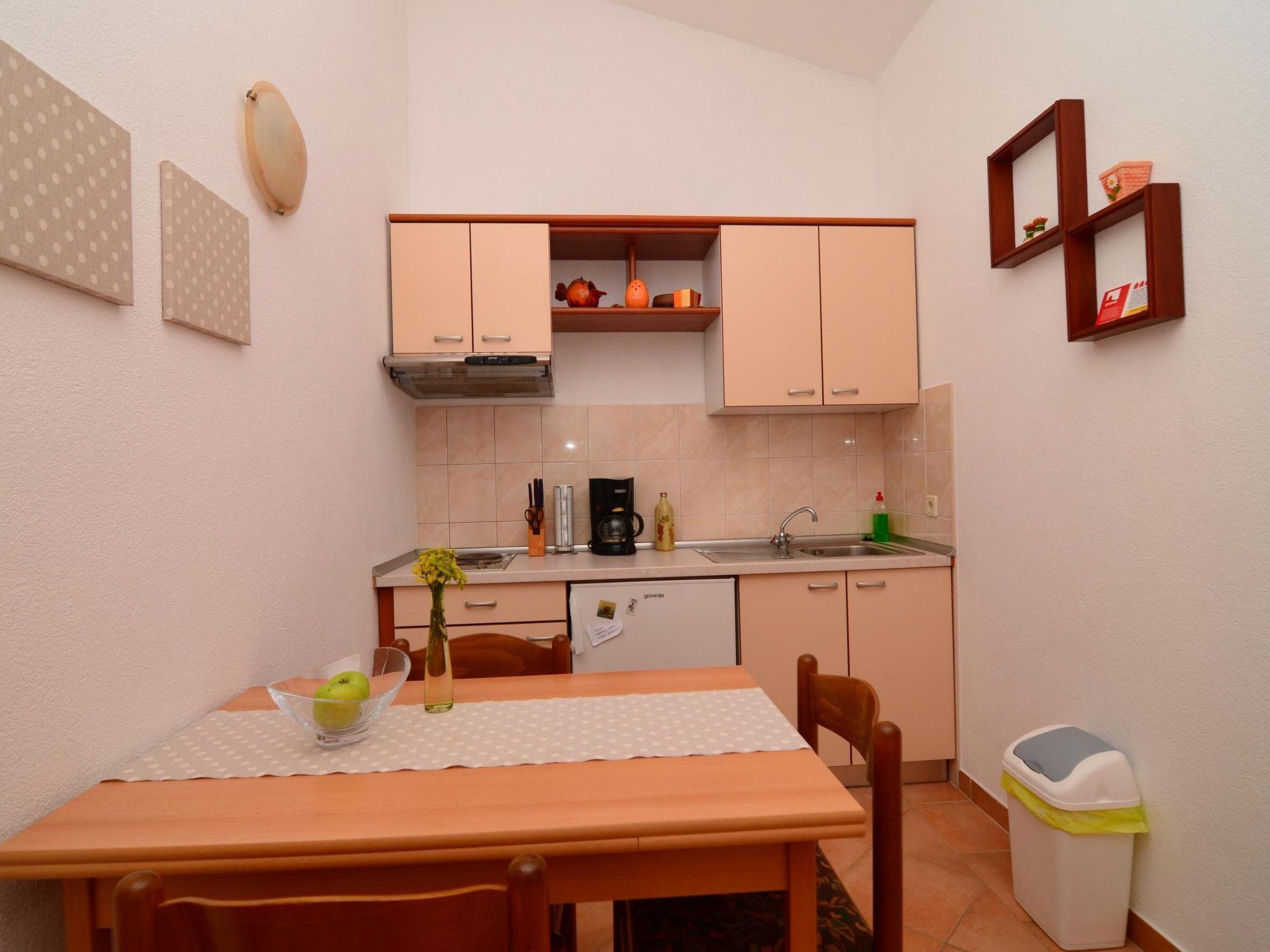 New, modern, beautiful holiday flat, above Makarska, in the district Veliko brdo, 2.5 km from the centre of Makarska, in a quiet, sunny position on a slope, 2 km from the beach, in the countryside, south facing position. In a quiet position, beautiful view of the town, the island and the sea. For shared use: property 1300 m2 (fenced), large Mediterranean garden with barbecue, outdoor shower. Garden furniture. Car park at the house on the premises. Shop 1.0 km, restaurant 200 m, pebbly beach 2 km. The house is situated on the edge of an olive grove. A warm welcome ! Accommodation: 1-room flat 28 m2, on the 2nd floor, beautifully furnished, very comfortable: /kitchen/dining room, exit to the balcony, 1 bedroom with double bed, 1 bathroom. At your disposal: Internet (wireless LAN) in the house, shared use of the garden with its own table (separate). Ideal for those who want a relaxing holiday, away from the noise and mass tourism.