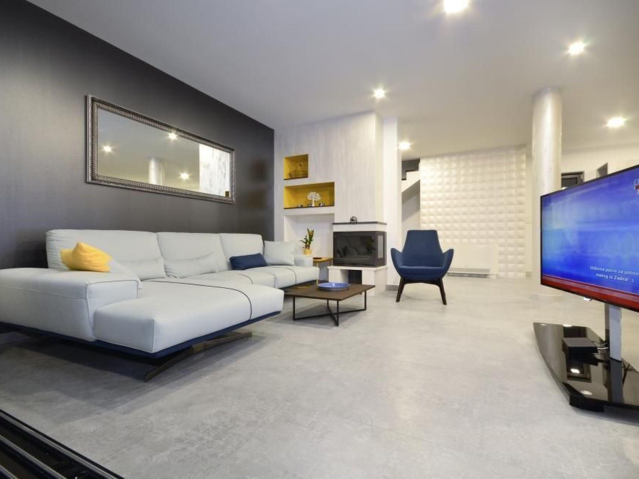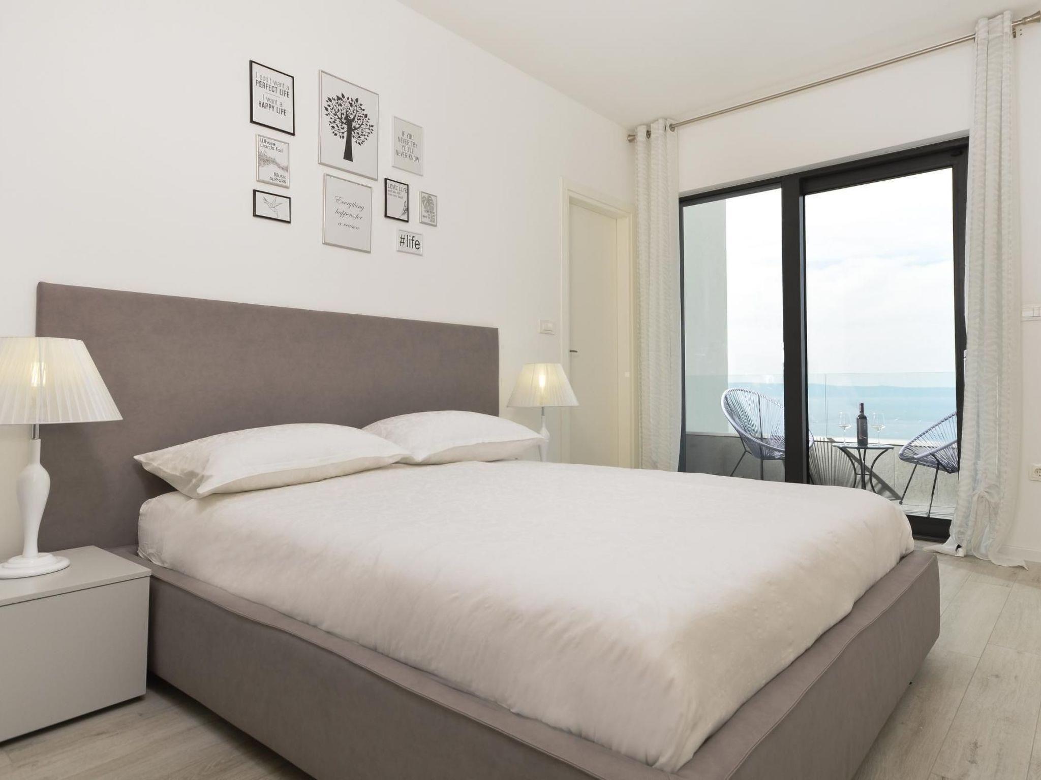 The luxurious villa is spread over several floors and can accommodate eight people comfortably. The main floor is a spacious and open-plan living space. The living and dining room provides a sofa suite, satellite TV and a big wooden dining table with eight chairs. The modern kitchen is fully-equipped with a stove, an oven, a big fridge-freezer with an ice dispenser, a microwave, kettle, toaster, coffee machine and dishwasher. This floor has two outdoor areas. There is also a separate toilet. The first floor comprises three bedrooms, two with a balcony with a view of the Adriatic and one with a view of the majestic Biokovo mountain, and each with an en-suite bathroom. Each bedroom is furnished with a queen-size double bed. Two have a wall cupboard and one has a wardrobe. The three bathrooms each consist of a luxury glass shower cubicle, a washbasin and a toilet. Internal stairs lead to the top floor, which has an outdoor kitchen, a bathroom with a shower and another room with a sofa bed. Fast wireless Internet access is available. Complete villa is airconditioned.