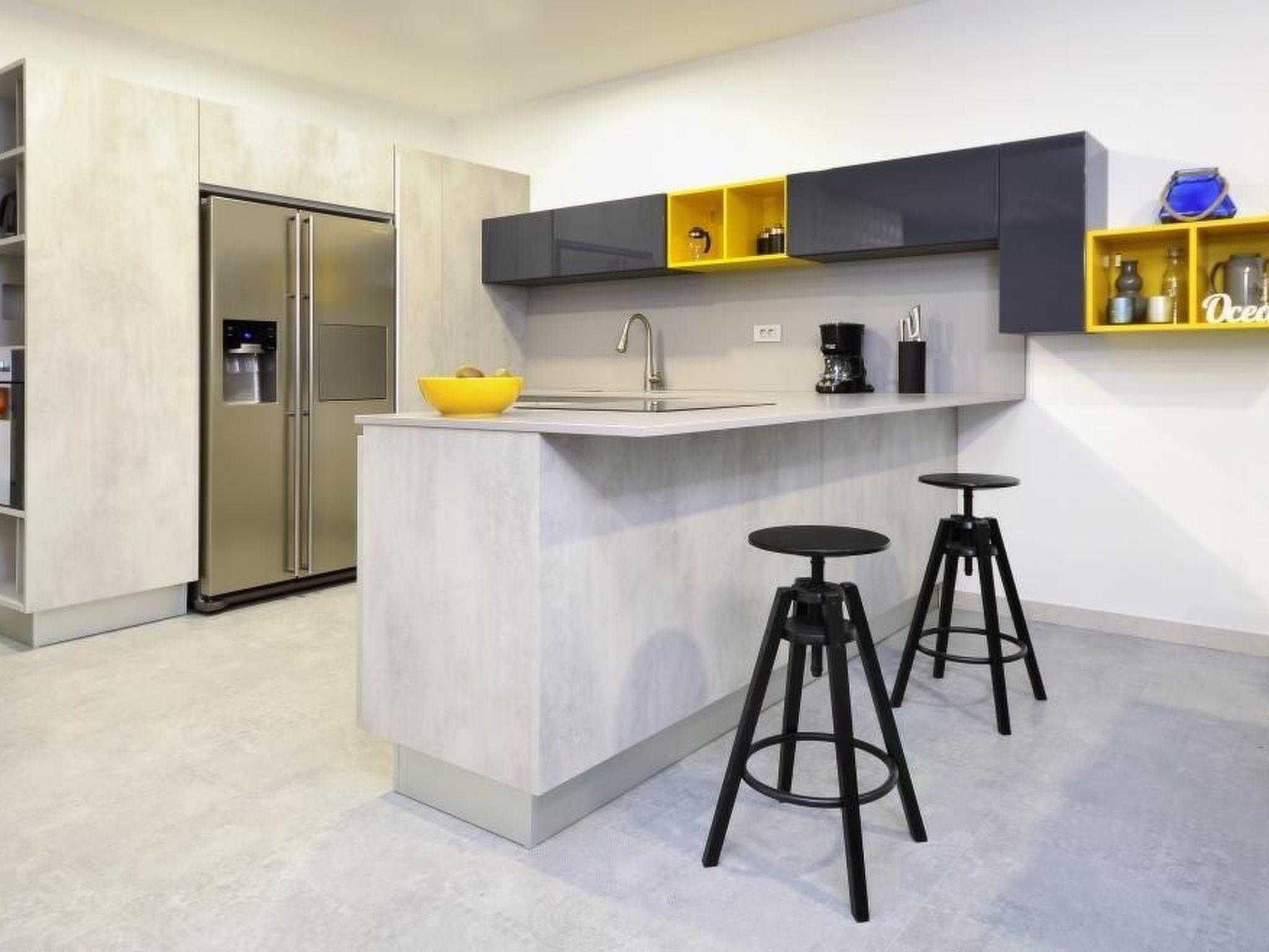 The main outdoor area leads to the impressive and heated infinity pool. The pool area also provides sun loungers and an outdoor shower. The kitchen opens onto the outdoor area with a grill and a dining space with comfortable outdoor furniture. The roof terrace with deckchairs and other comfortable outdoor furniture affords an open view of the sea. Three cars can be parked in front of the house.
