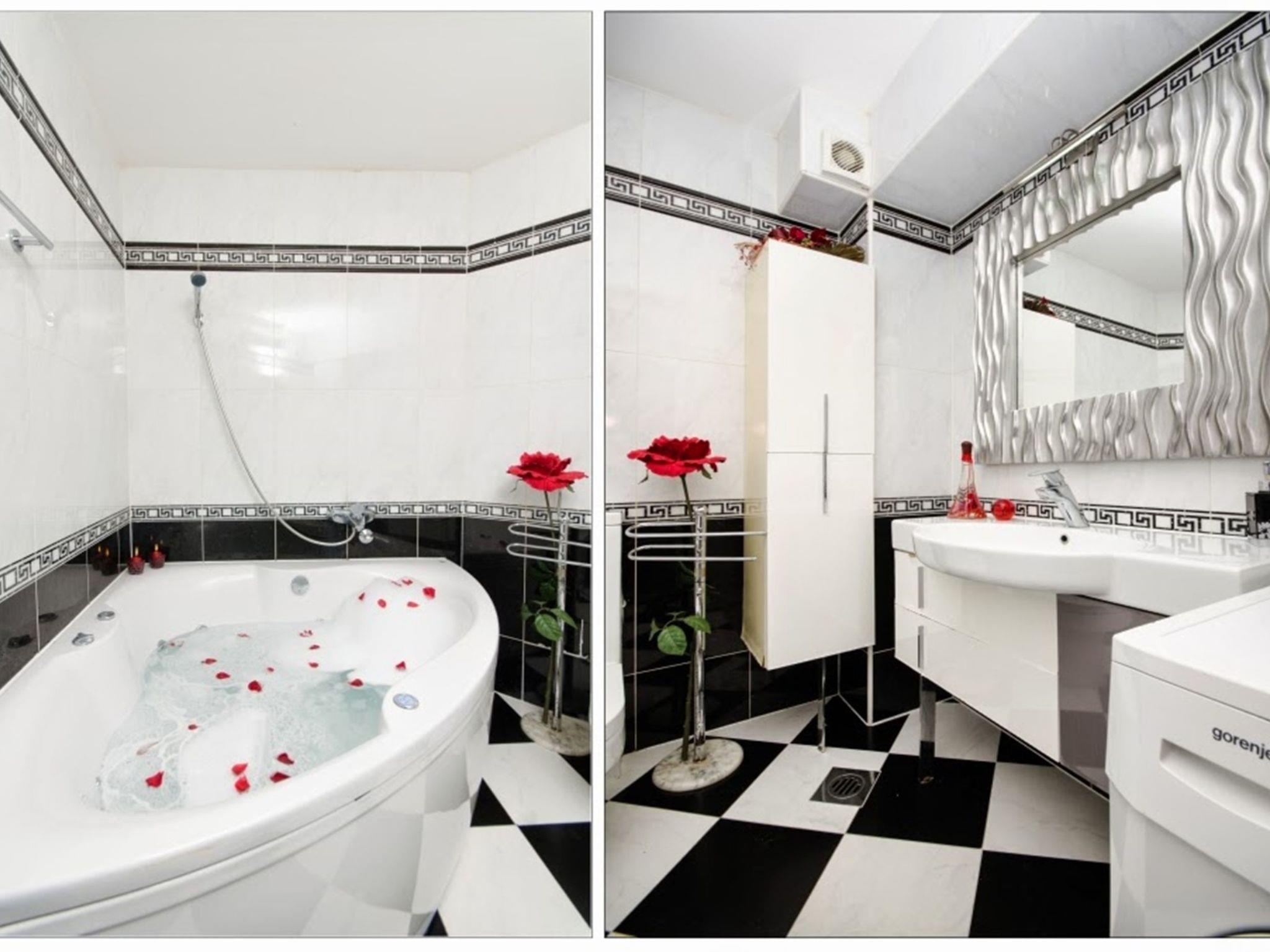 Inside, the apartment boasts two well-appointed bedrooms featuring comfortable bedding and efficient air conditioning, ensuring a restful sleep even on the warmest nights. Each room is meticulously designed to provide guests with the convenience and comfort they need. The living area is spacious and welcoming with a large corner and folding sofa, perfect for gathering and relaxing after a day of exploration. The inclusion of a Full HD TV adds an entertainment option for guests. The kitchen does not disappoint - equipped with a dishwasher, a 3-plate stove, an electric kettle, and a comprehensive set of kitchenware, it invites guests to prepare their meals with ease.