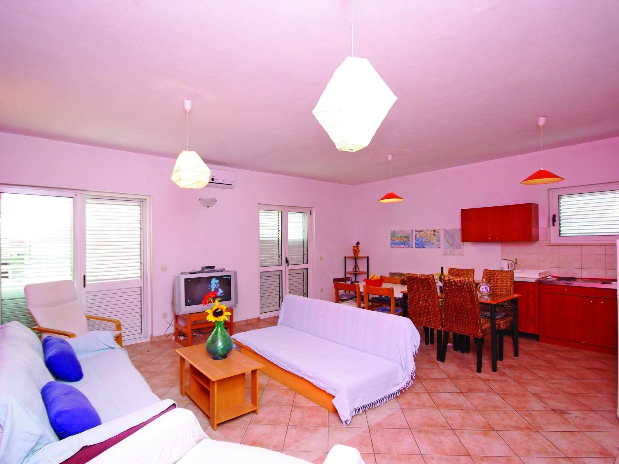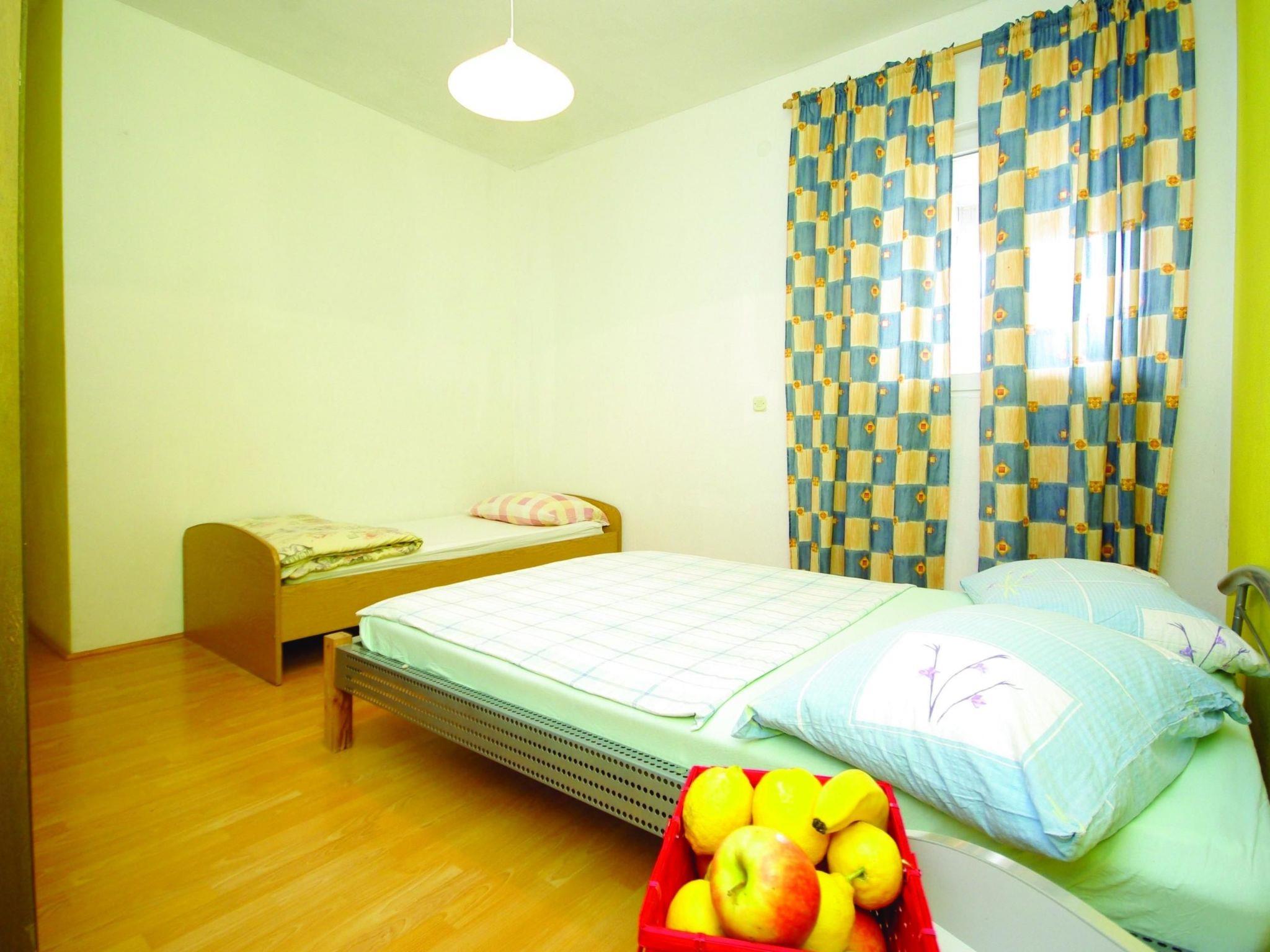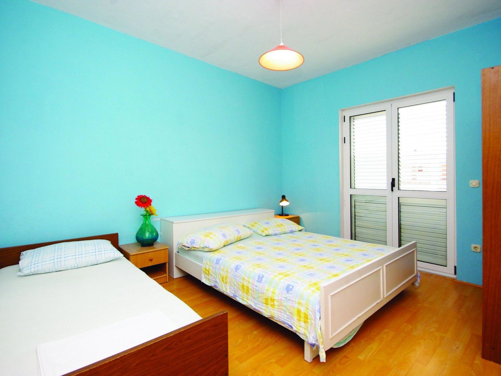 The 110m² apartment is on the first floor. It has three bathrooms with a shower and toilet, and three bedrooms. Each bedroom has a double bed and a single bed. There is also a sofa bed for two people in the living room. The kitchen is equipped with a hob, oven, coffee machine, microwave, kettle and fridge. House have pool and playground for children's.