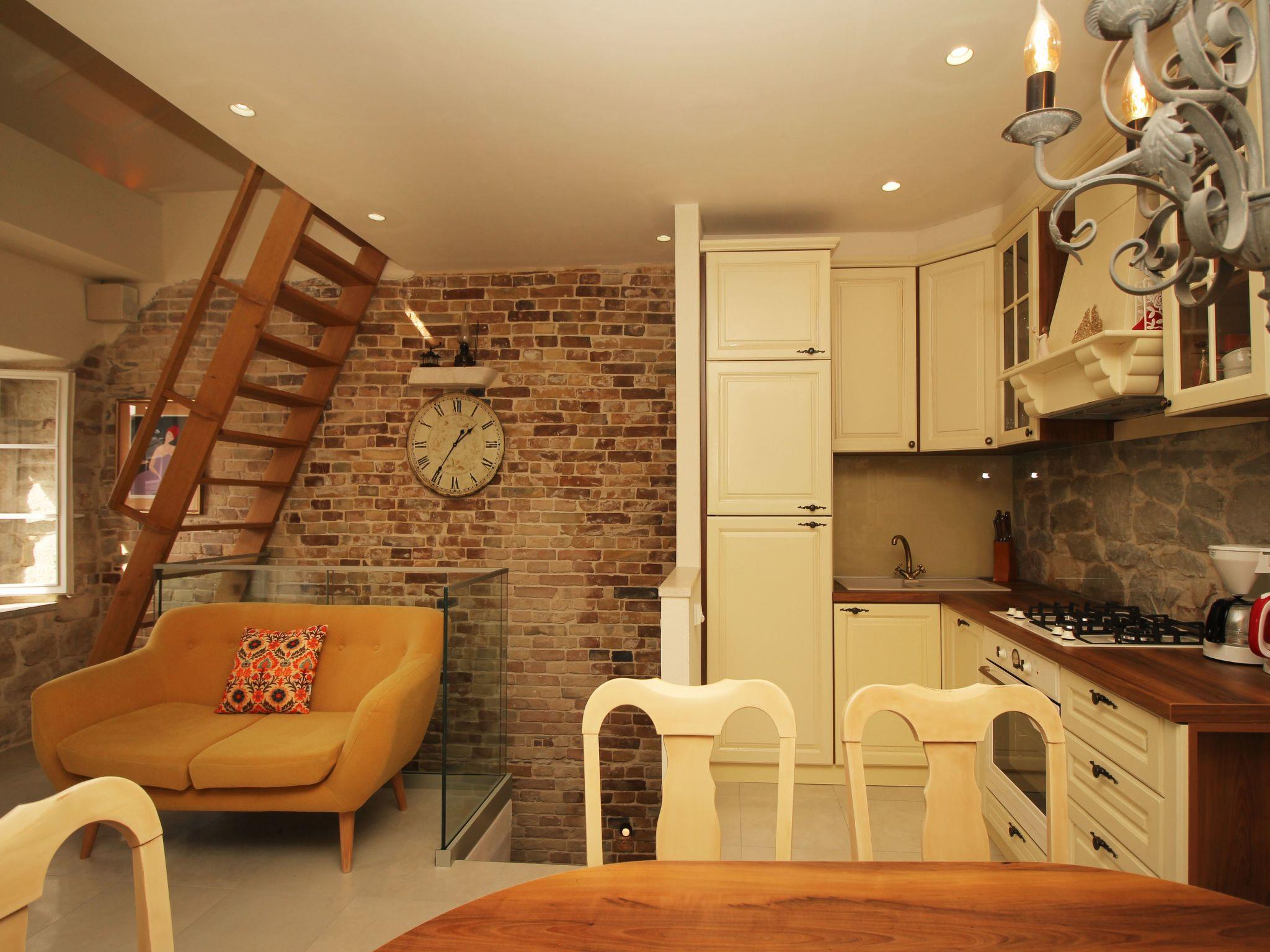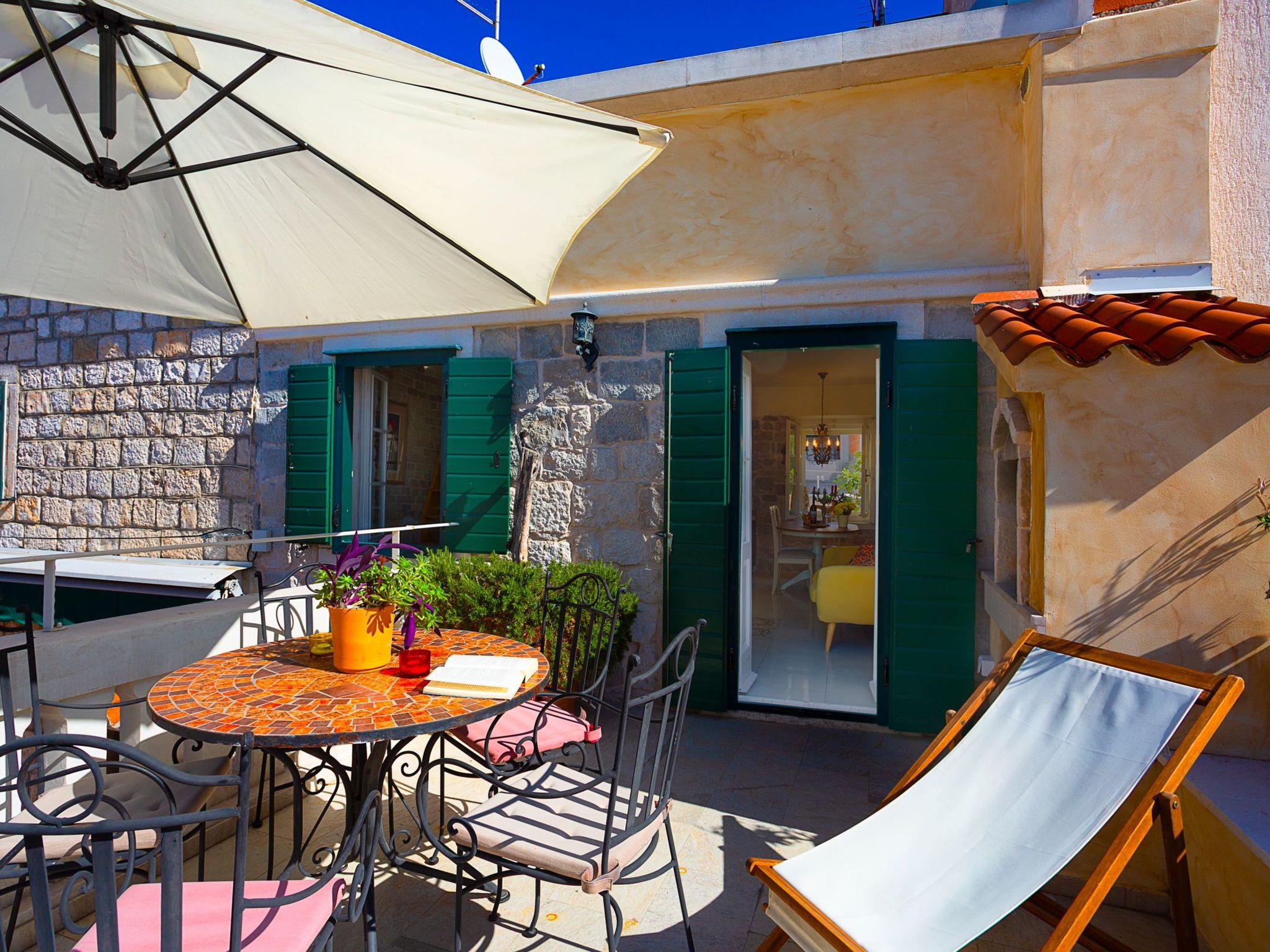 The house has a beautiful roof terrace from which you can enjoy the view of the most part of Kalalarga street - but it is also distant from the crowds and enjoys peace and quietness. Give yourself the opportunity to enjoy the sun and the sea, sights, gastronomic offer, shopping, evening walks along the shore, night life, all near your holiday house. There is an open fire place on the terrace, a table with armchairs for dining.