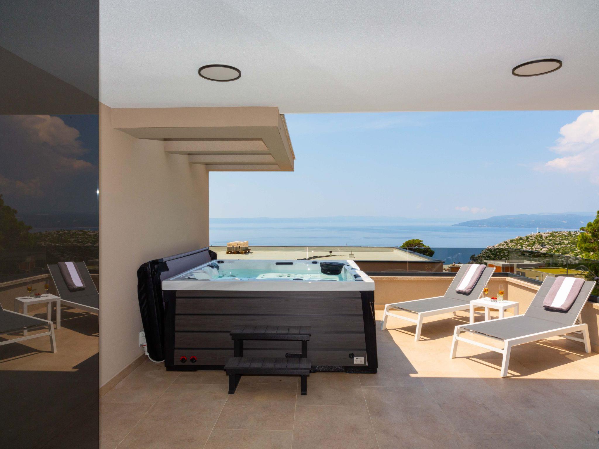 The private swimming pool is ideal to chill out and keep cool in the hot Croatian sun. There is also a dining area and BBQ, hot tub, and exterior shower at the guests’ disposal. The garden is surrounded by a fence for the children’s safety. In this beautiful villa, you can experience some unforgettable moments with family and friends.