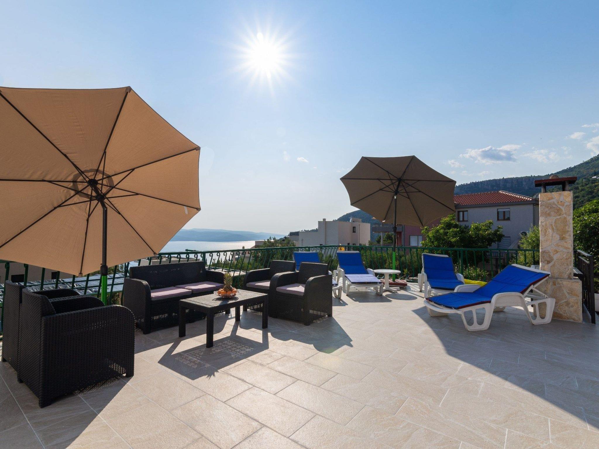 The 50 sqm large terrace is an oasis of well being and will provide you with relaxing atmosphere while you are laying on the sundecks or tasting local wine and food prepared on grill. Therefrom you can enjoy the breathtaking panorama of the sea, islands of Hvar, Brac valley and mountain Biokovo.